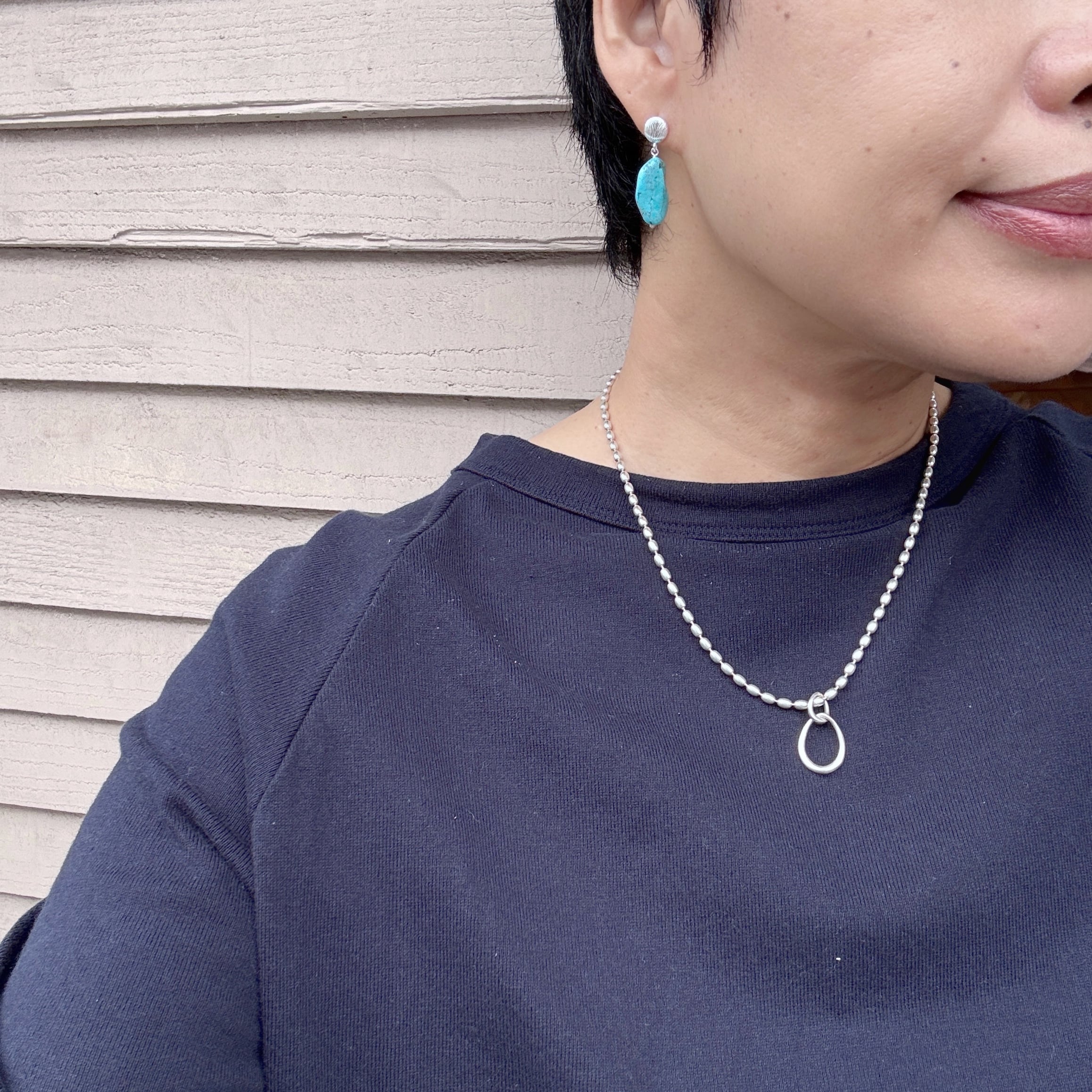 こちらはシルバー925だけで作られたネックレスなので、汗が気になる季節にも気兼ねなくお使いいただけます。汗をかいた日は石鹸で洗ってくださいね。
