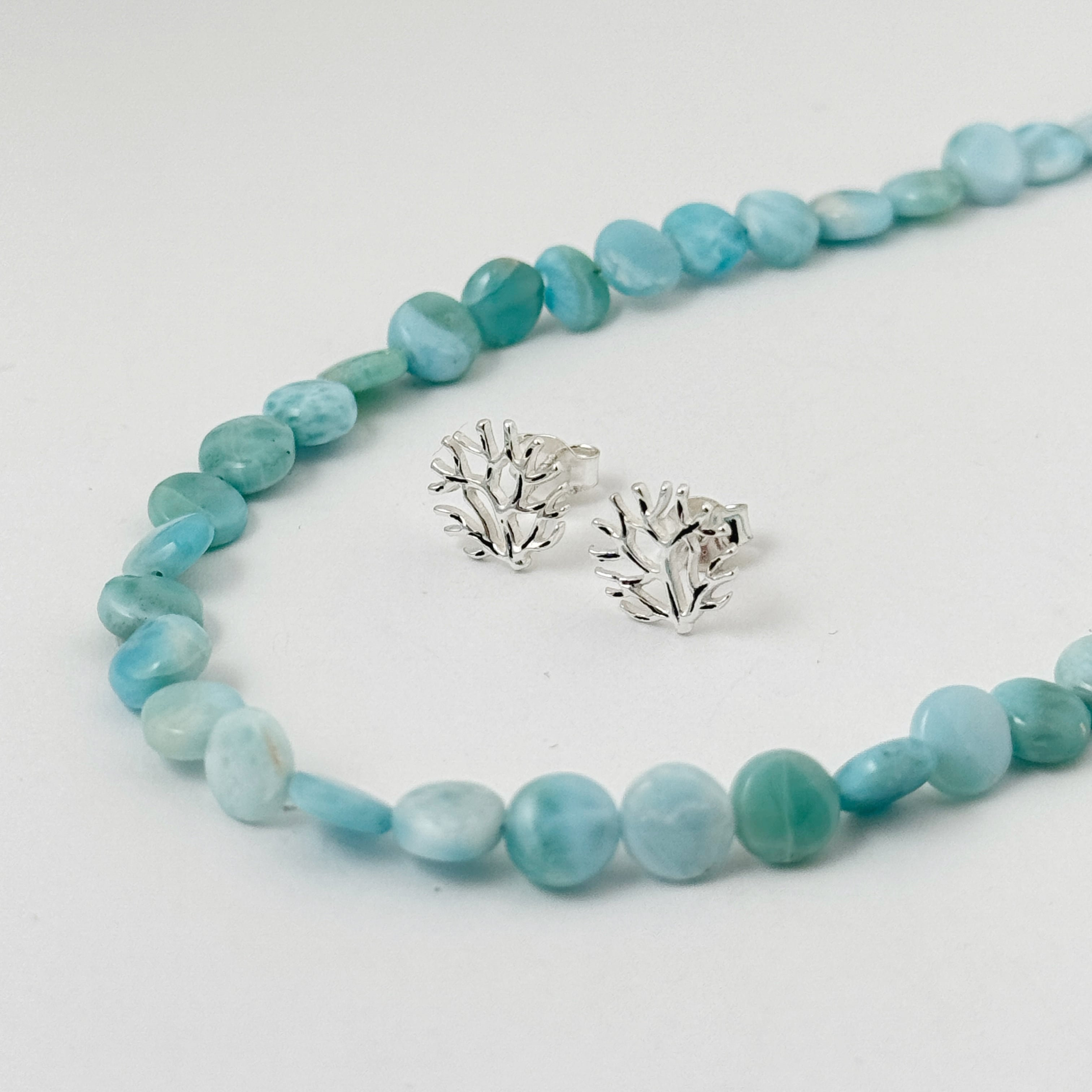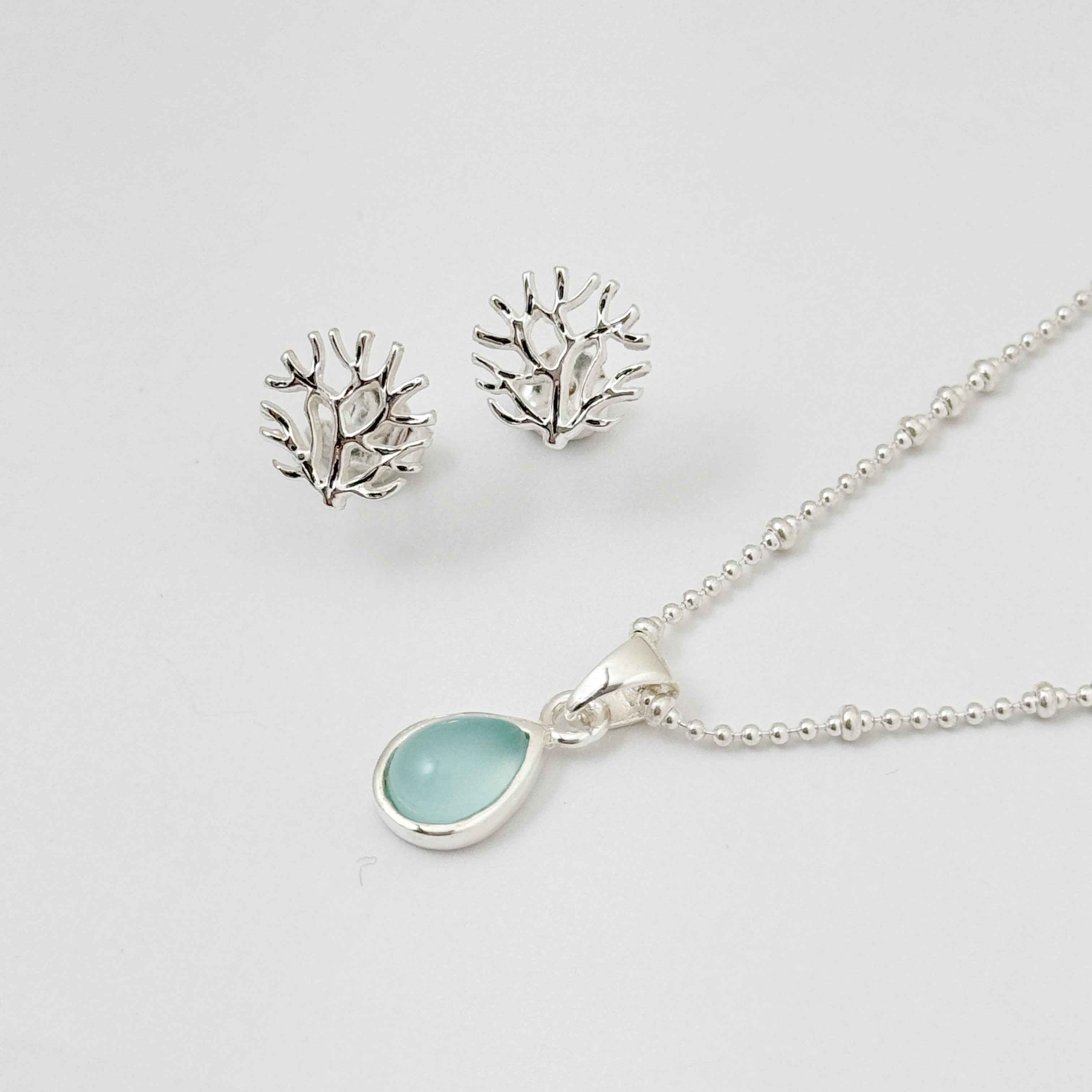 枝状に広がった珊瑚を細かく再現するのには、シルバーでは難しいことが多いのですが、細部にこだわって再現してデザインされたピアス。