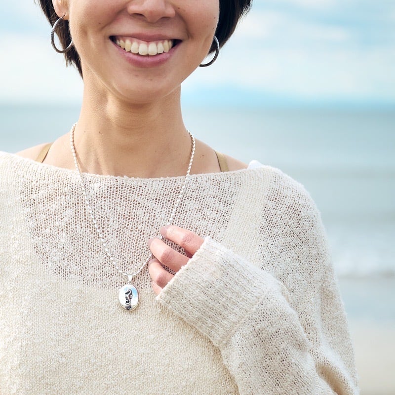 立体的なタツノオトシゴが目印になるロケットペンダント。男性でもお似合いになる オキシダイズ(燻加工)されたタツノオトシゴが、リッチで、アンティーク感も醸し出しているのがポイントです