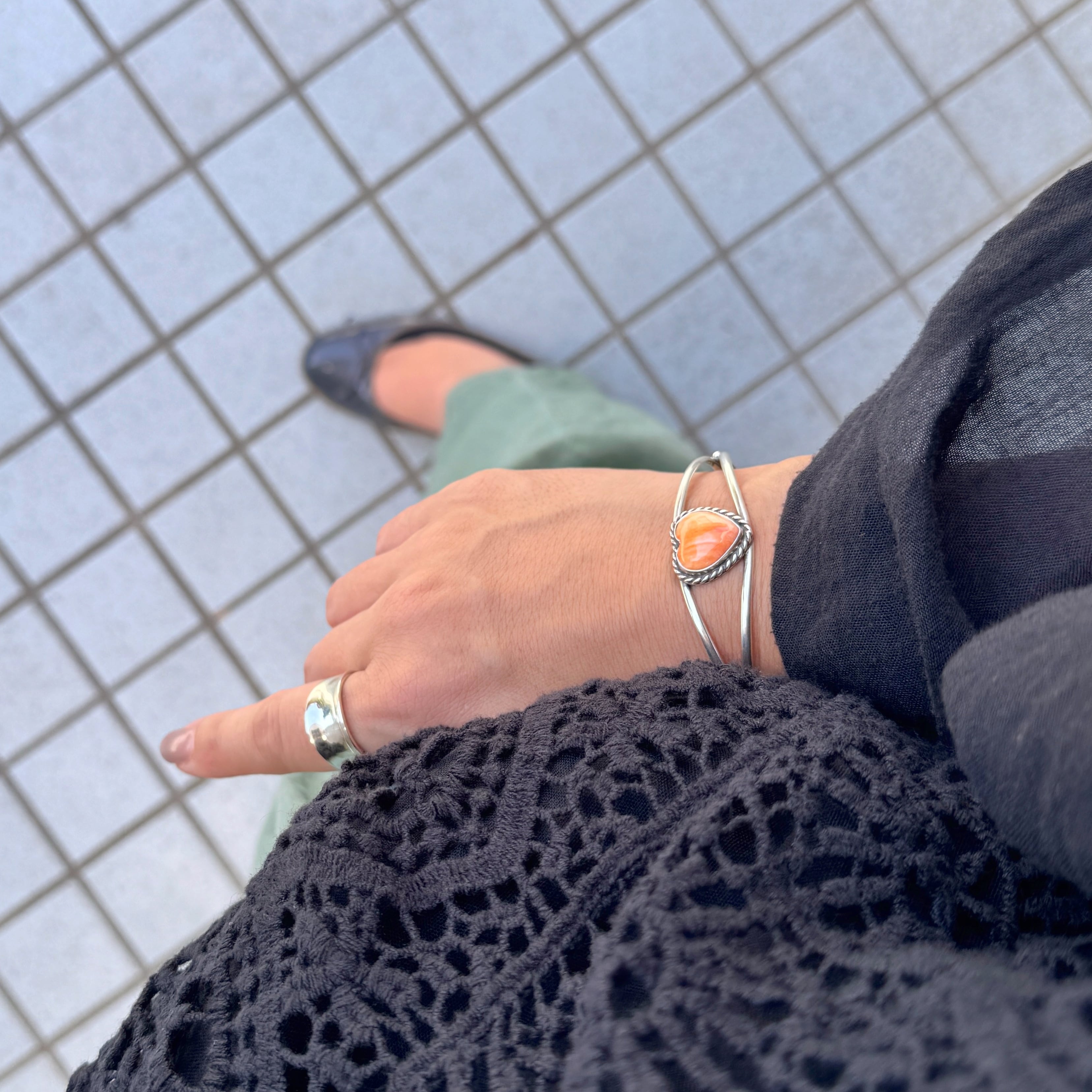 ナチュラル感のあるオレンジカラーのネイティブアメリカンジュエリーでカジュアルコーデにも