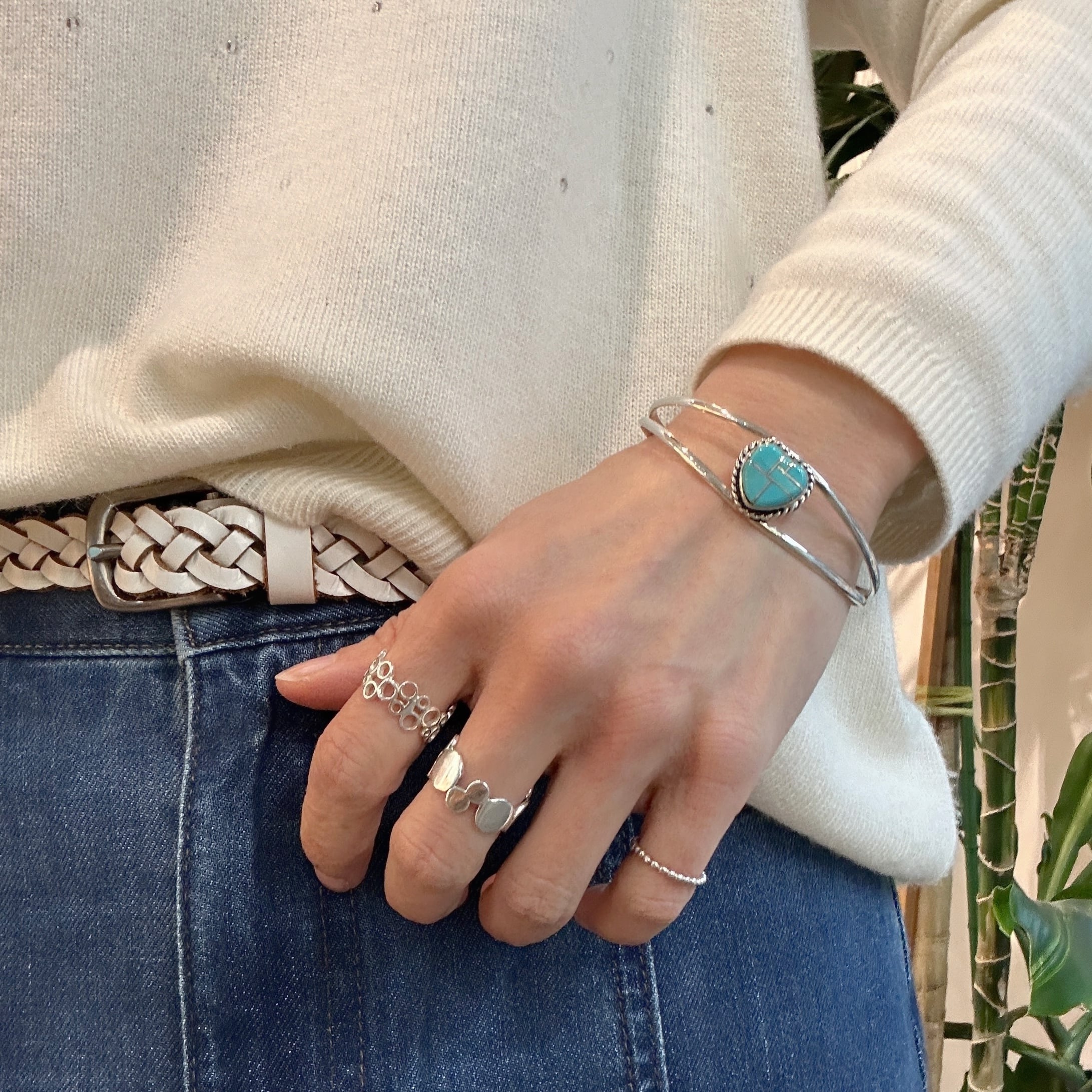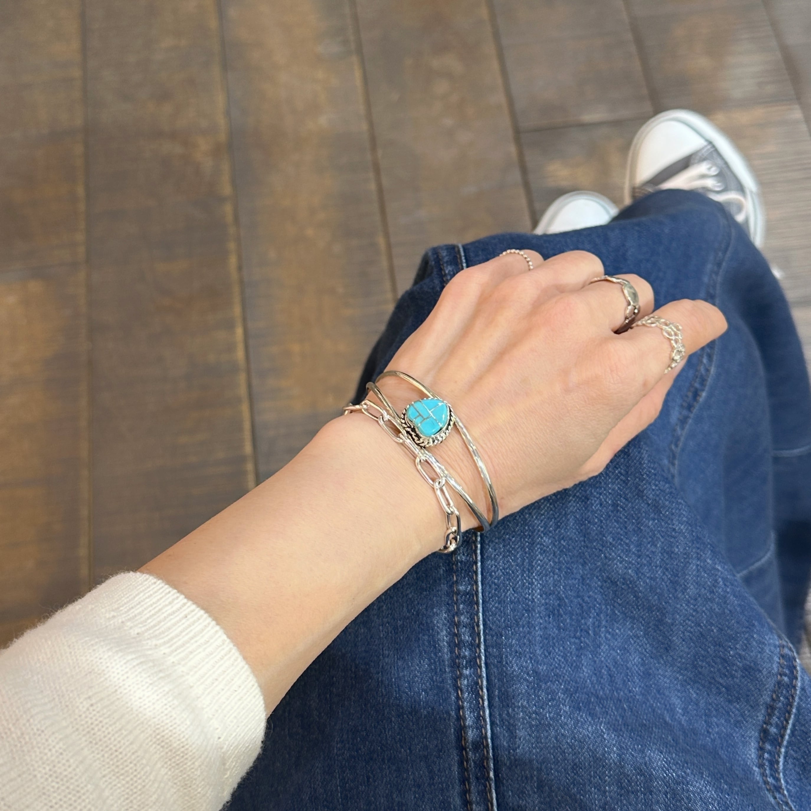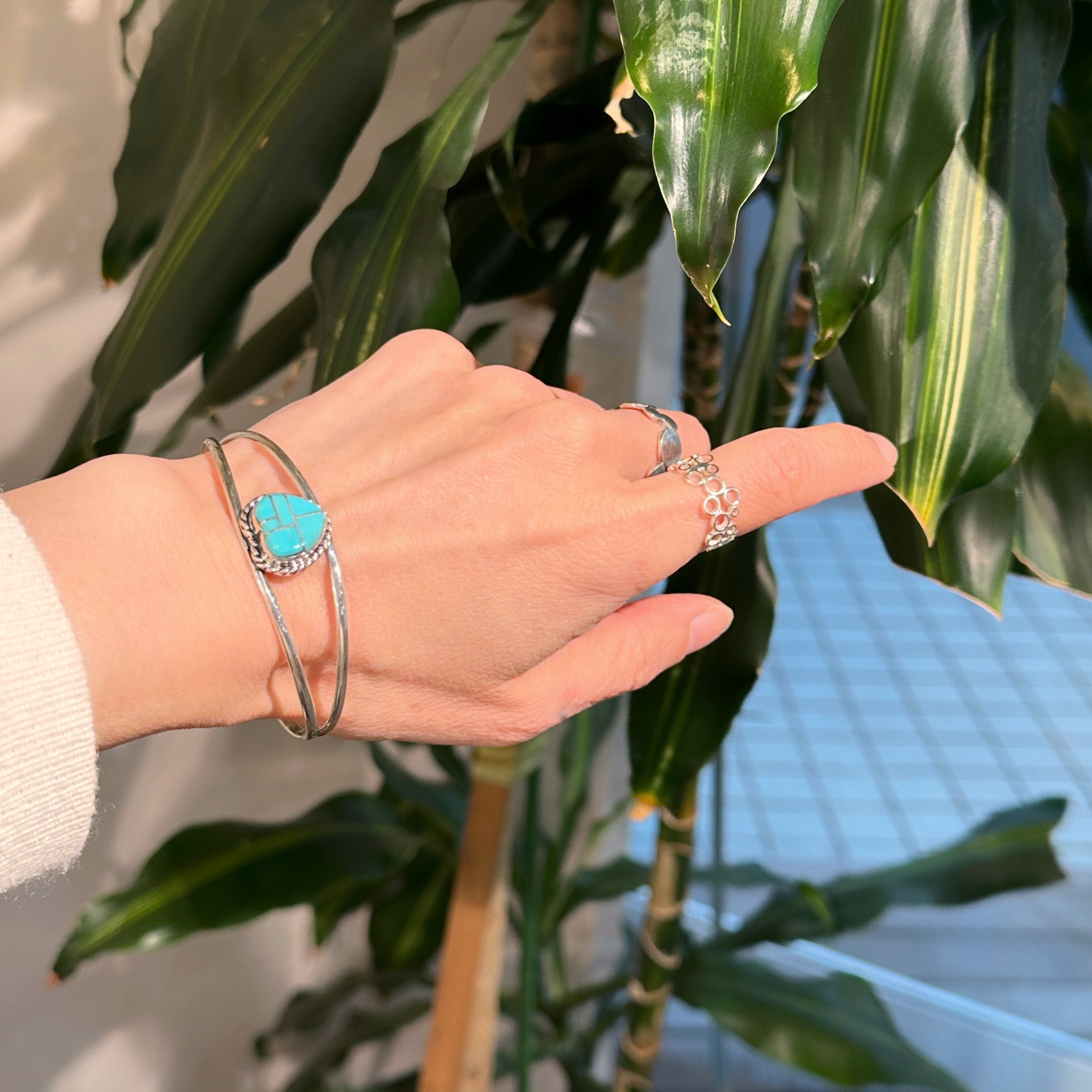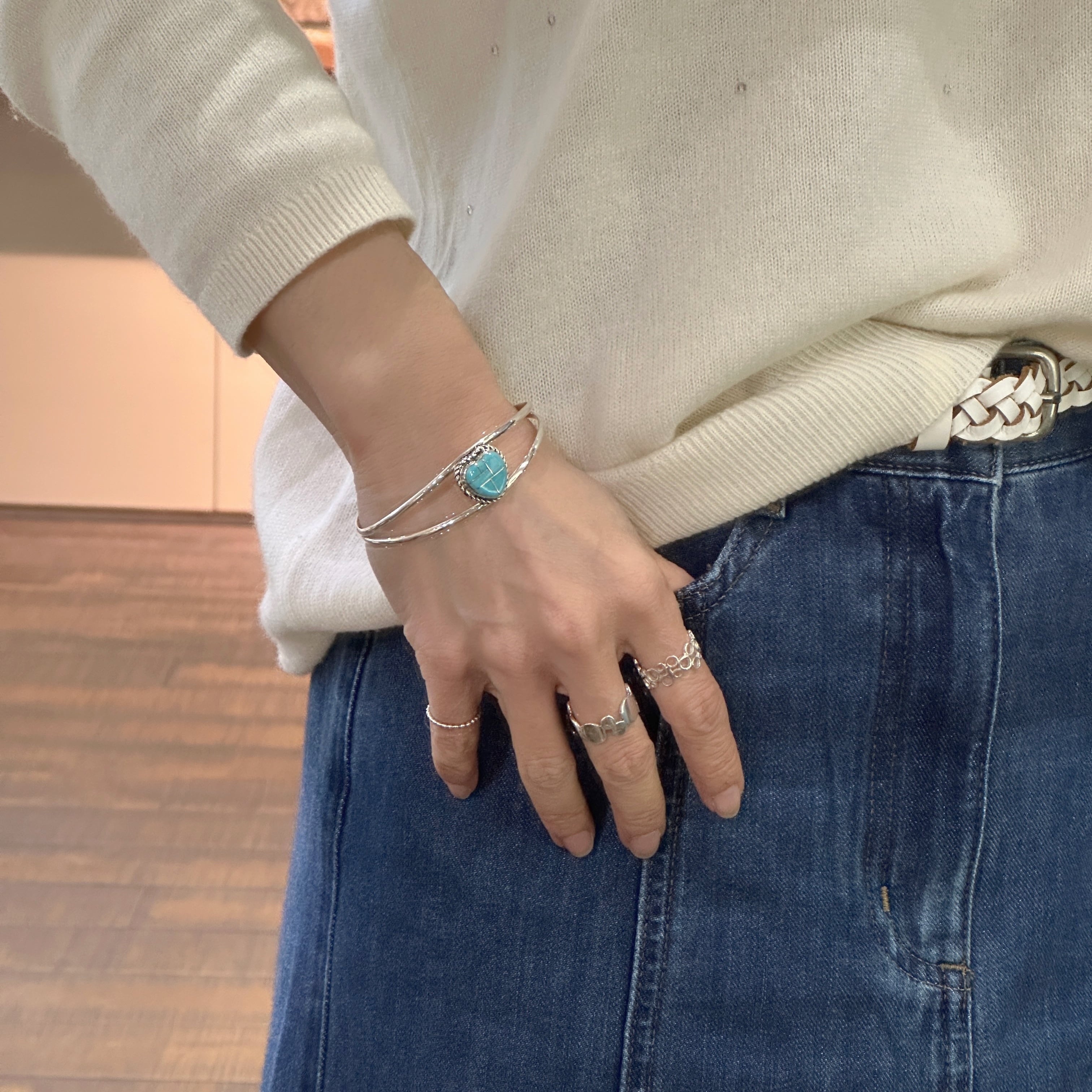 《Indian Jewelry 》一点物 ハート シルバーインレイ ターコイズ バングル