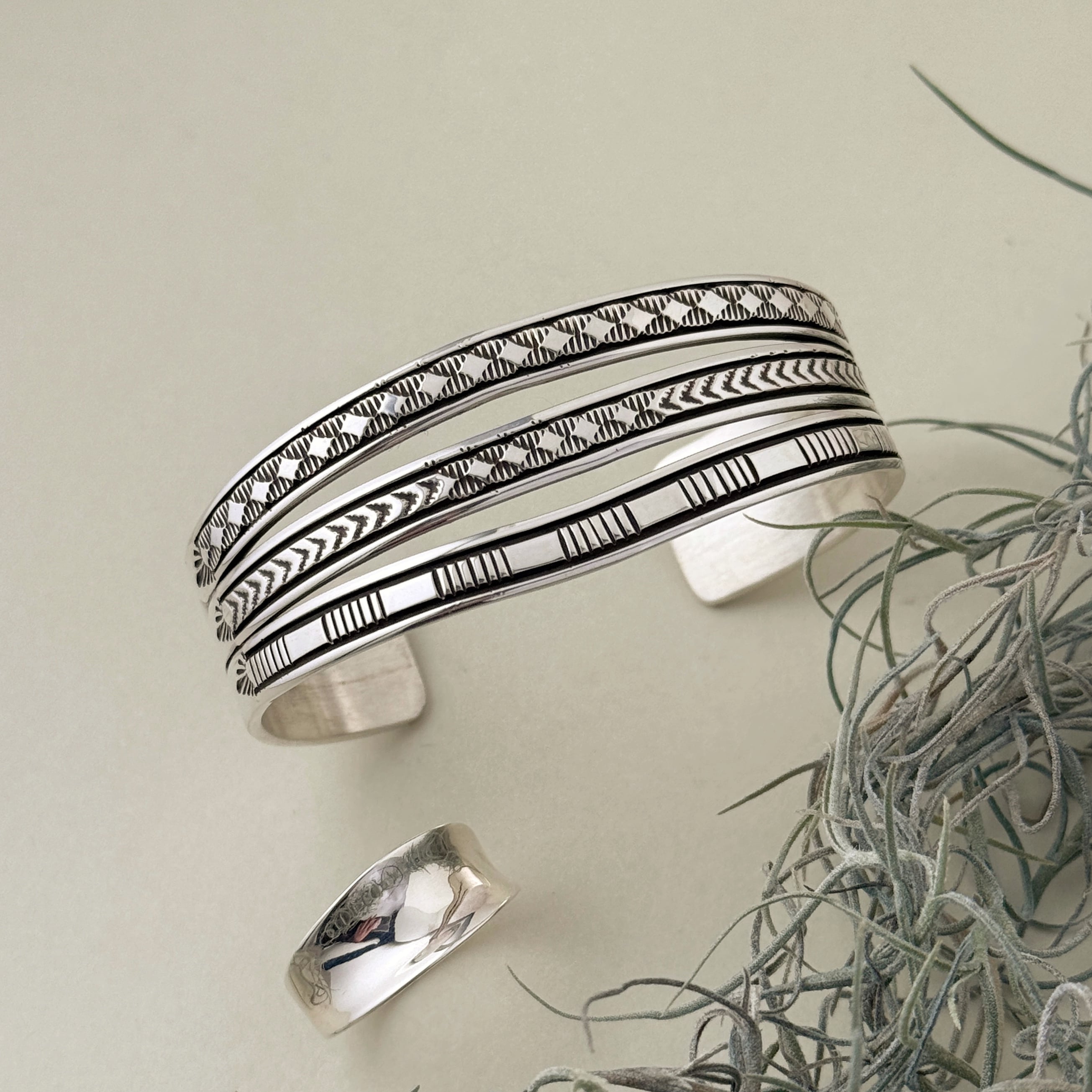 《Indian Jewelry 》3アーム デザイン スタンプワーク バングル