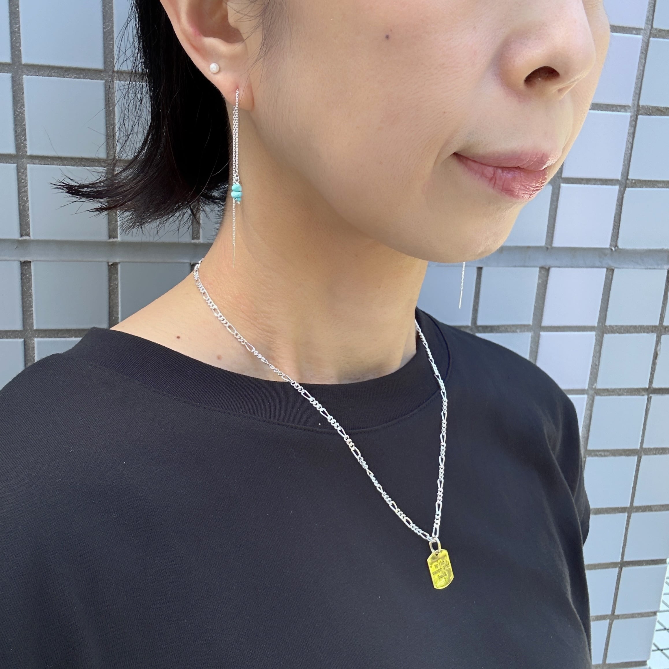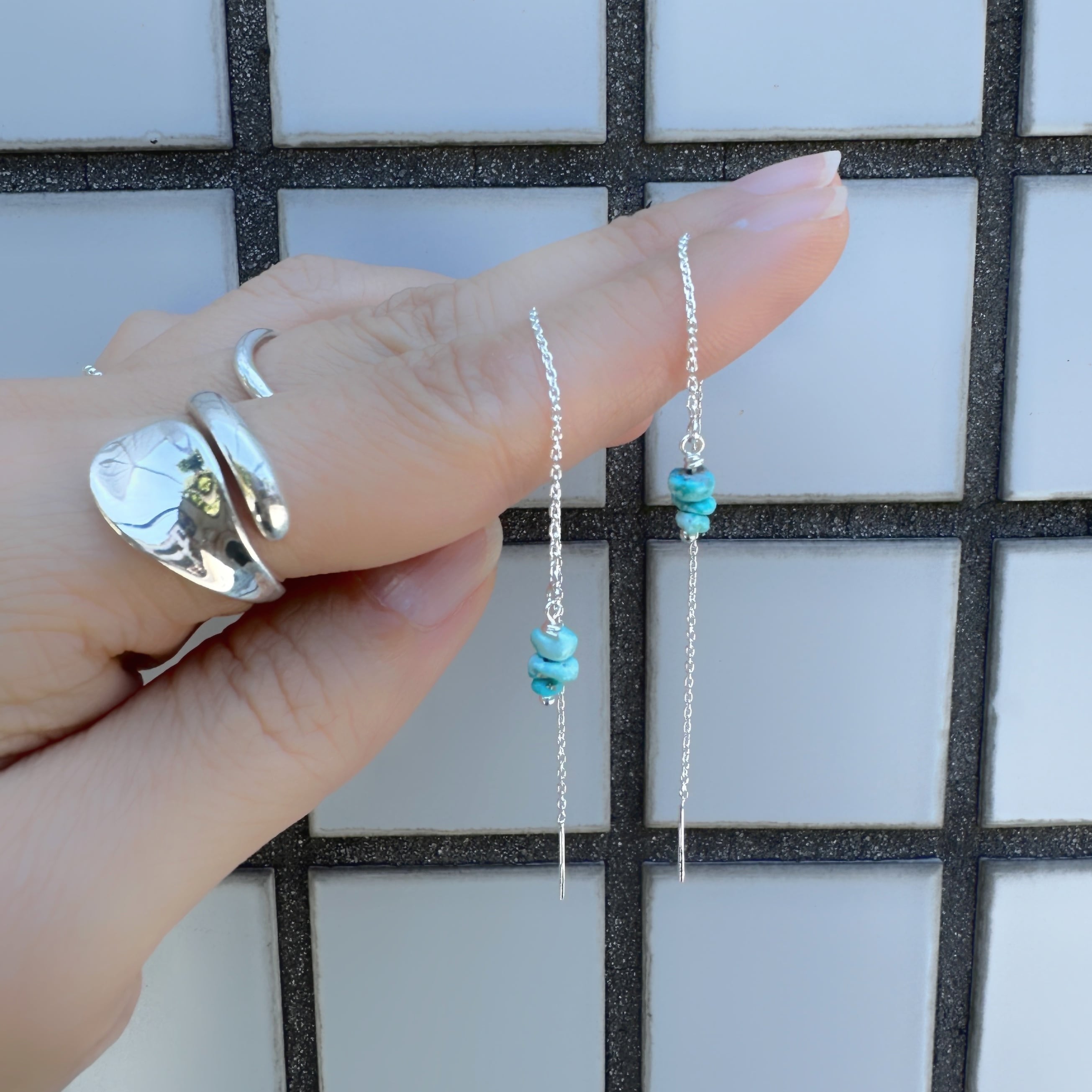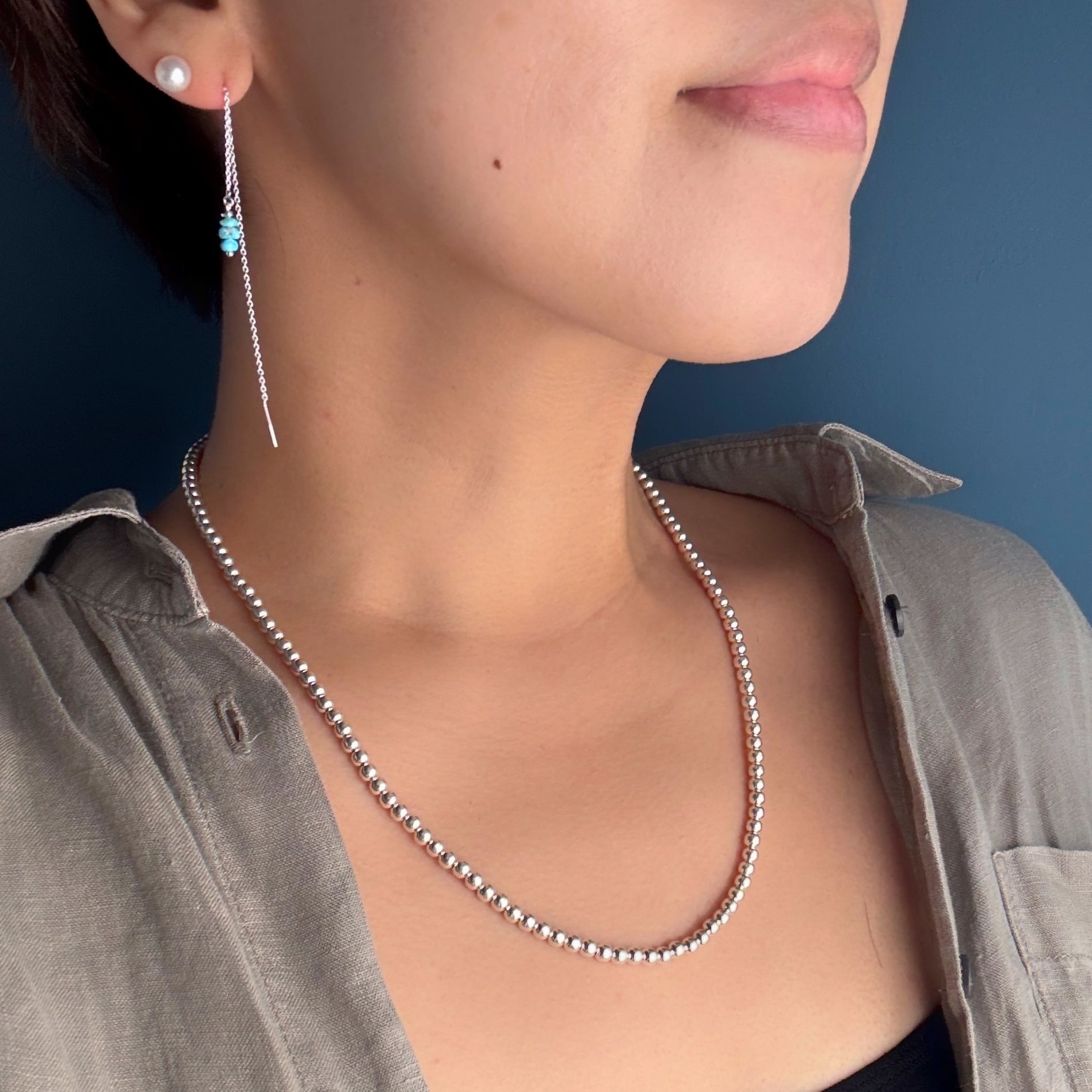 3粒のターコイズが控えめに品良く耳元で揺れます。