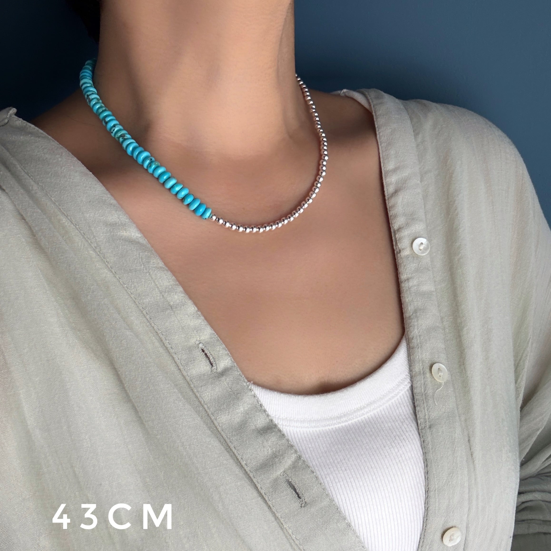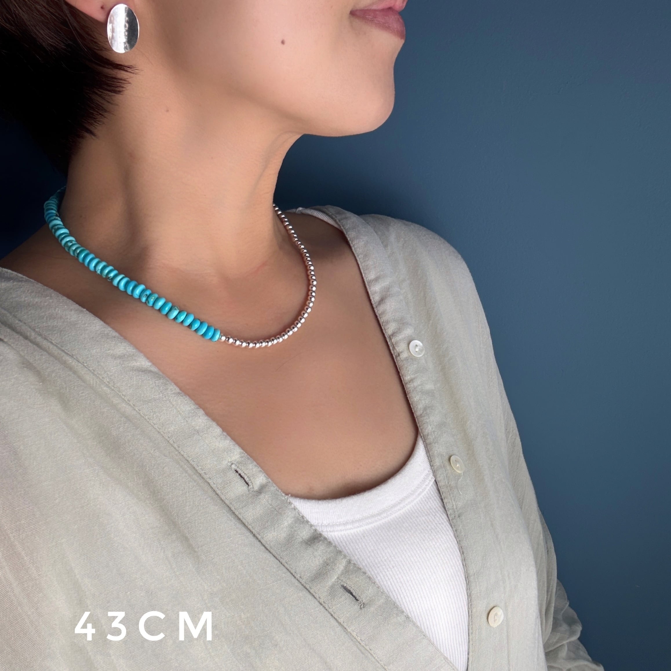 Lagoon Original ボタン型 ターコイズ and ナバホパール アシンメトリーネックレス 40cm