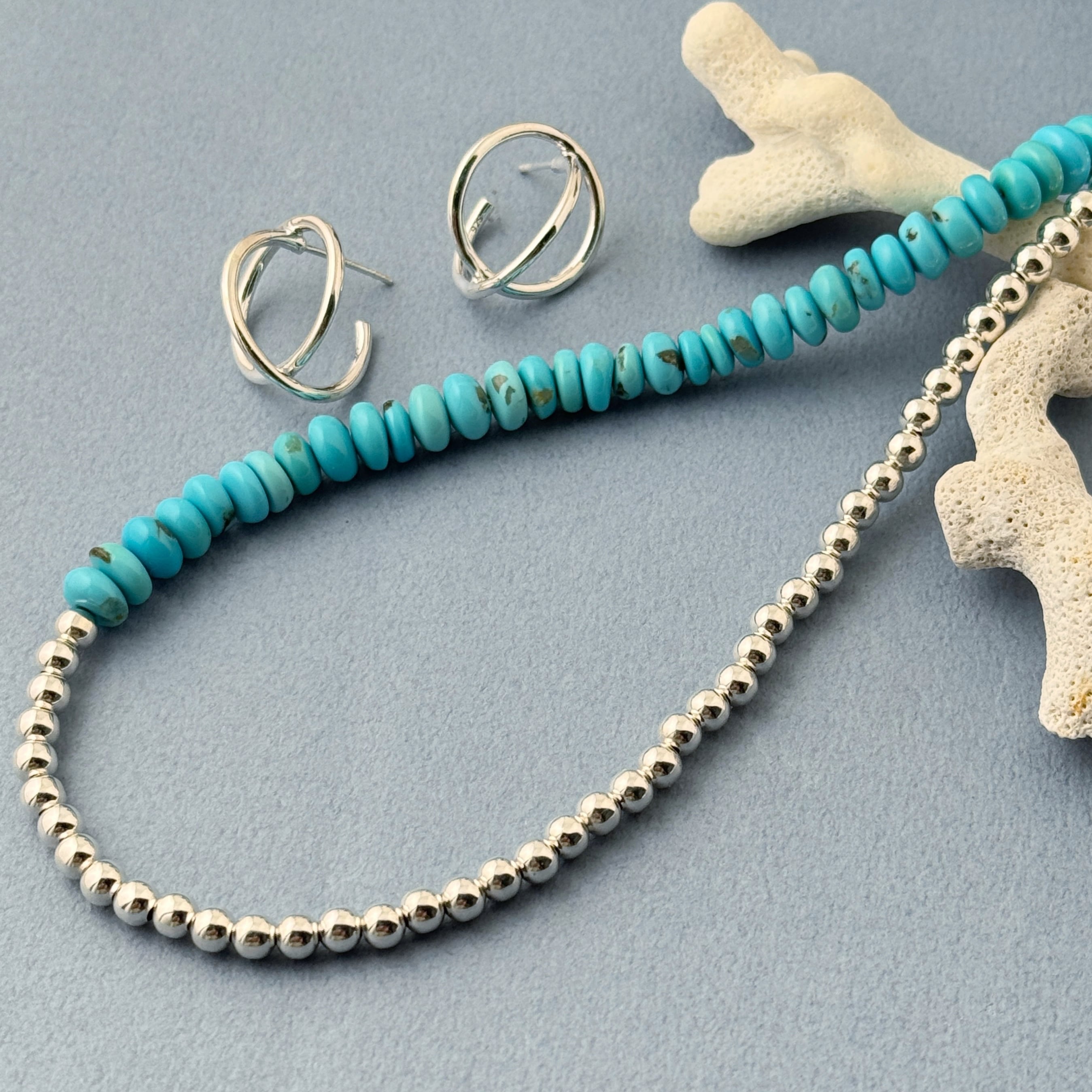 ナチュラル感のあるターコイズと4mm玉のナバホパールになります。