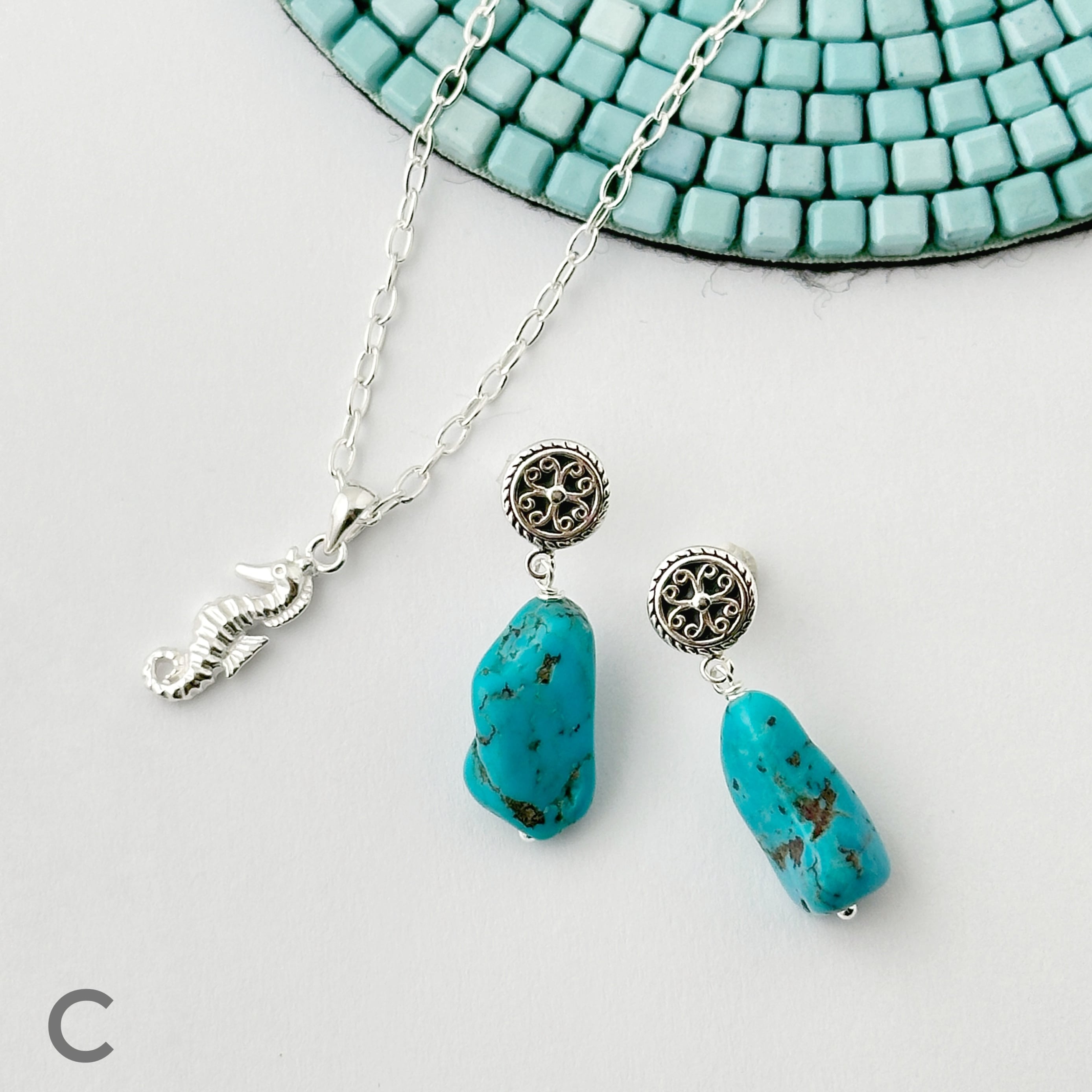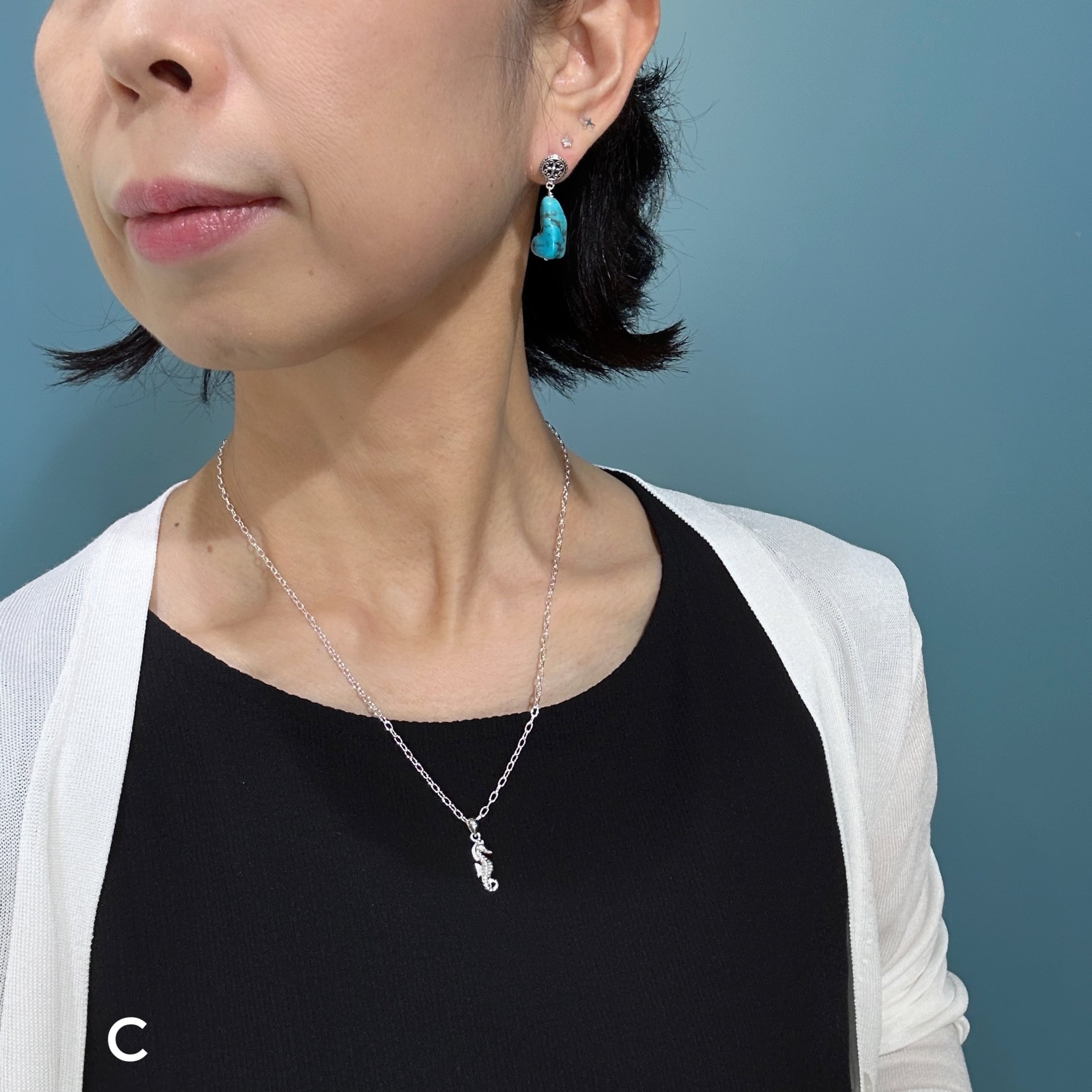 天然石ならではのエクボなど、ありのままのターコイズがお好きな方にはたまらないピアスになっています。