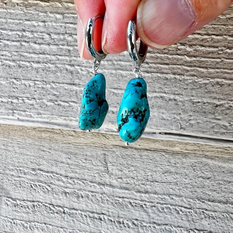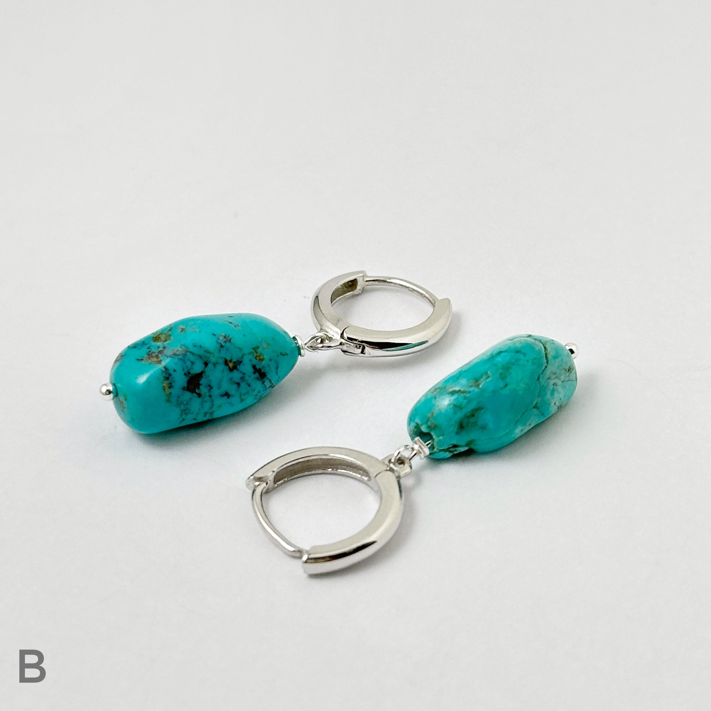天然石ならではのエクボなど、ありのままのターコイズがお好きな方にはたまらないピアスになっています。
