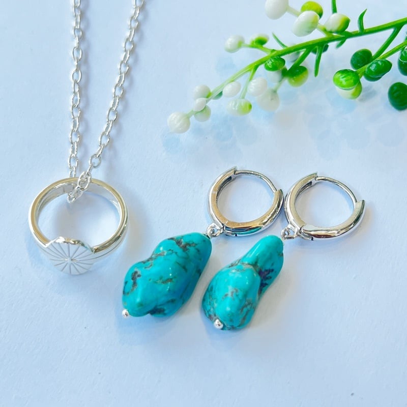 天然石のターコイズを使用したラグーンオリジナルのピアスの登場です。