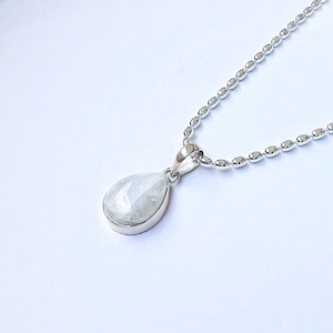 【一点物】レインボームーンストー シルバーフレーム ドロップ 型 ペンダント 2.2×1.6cm