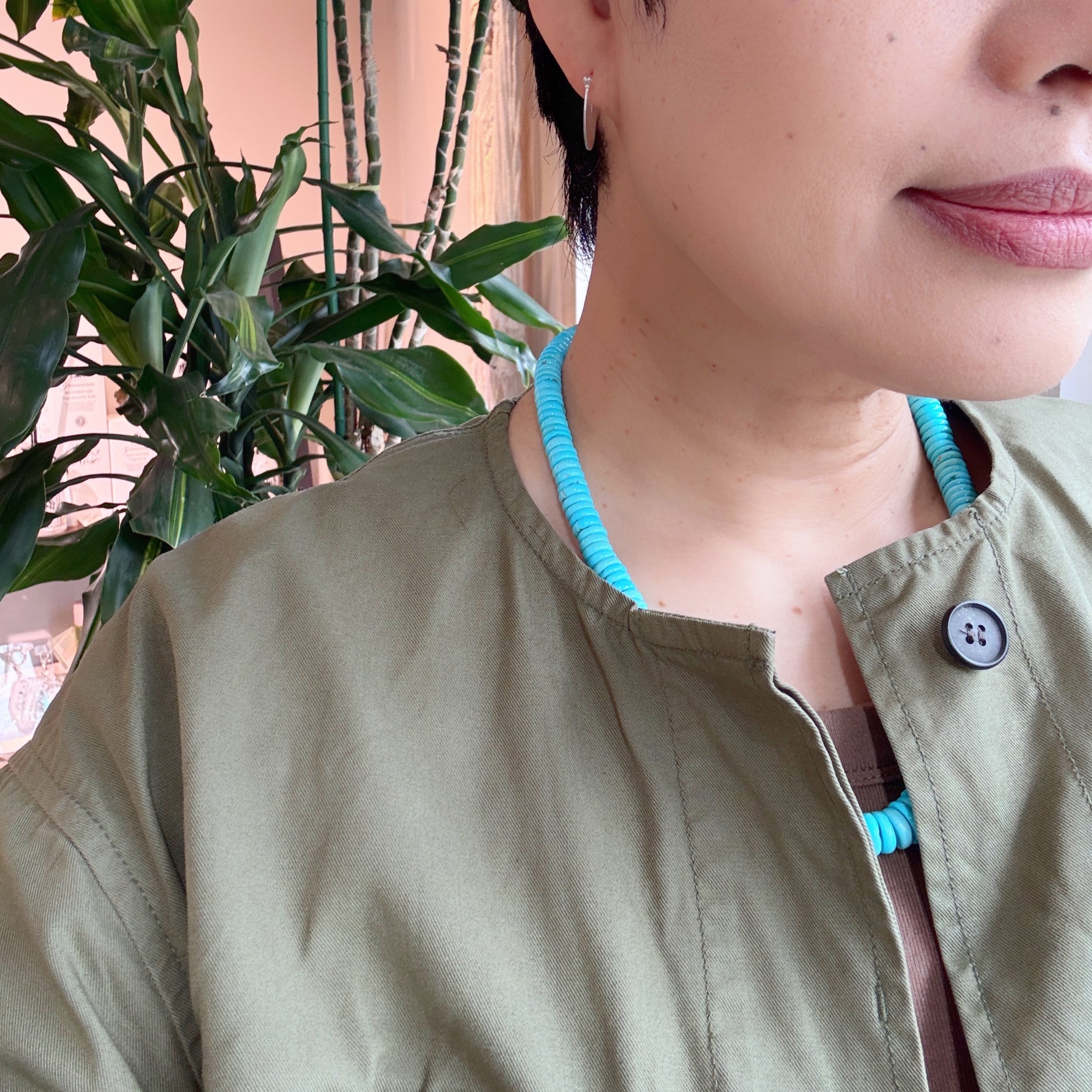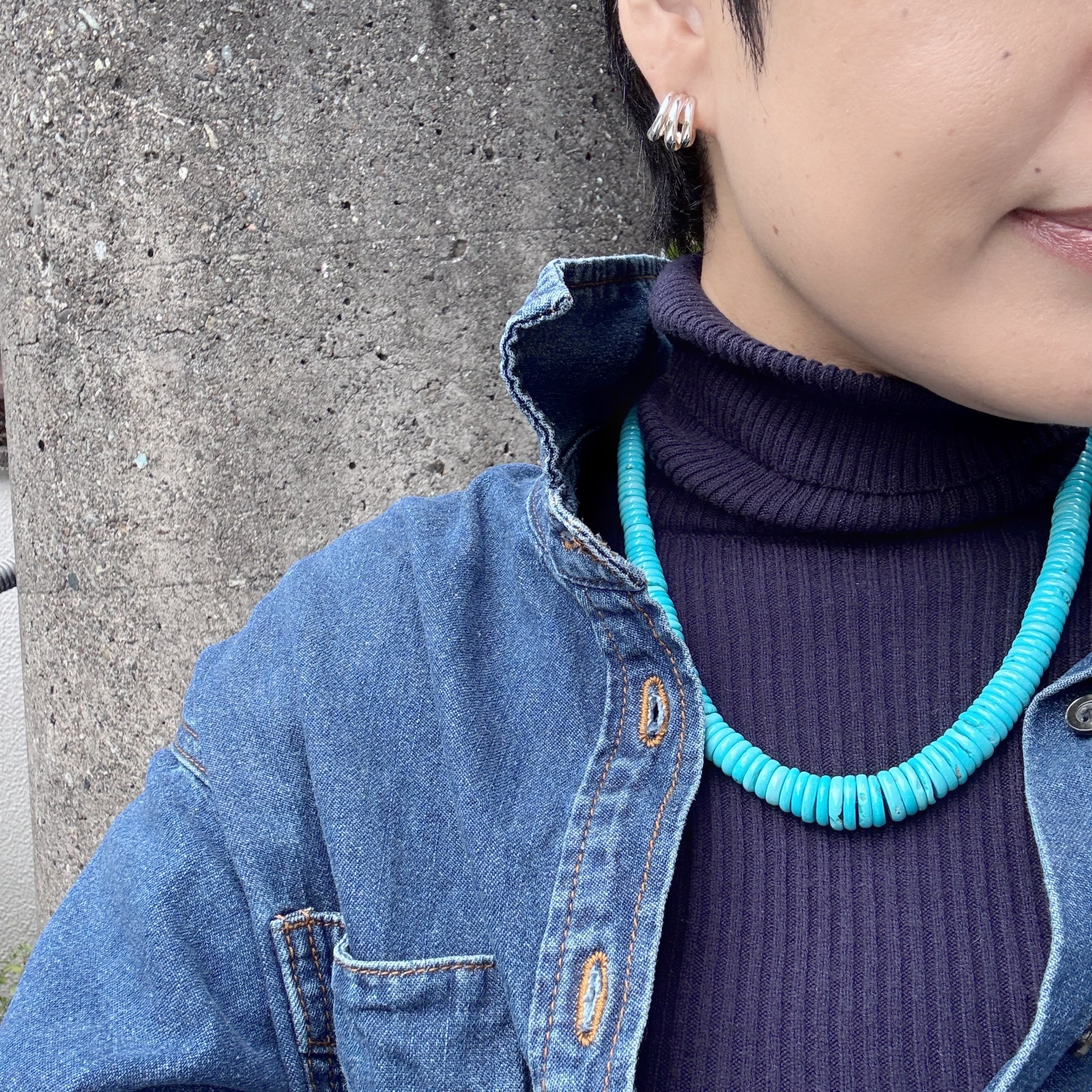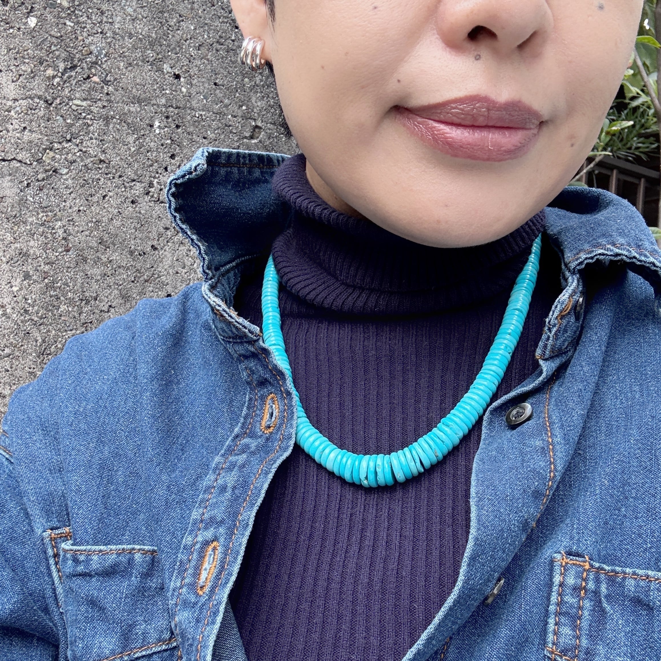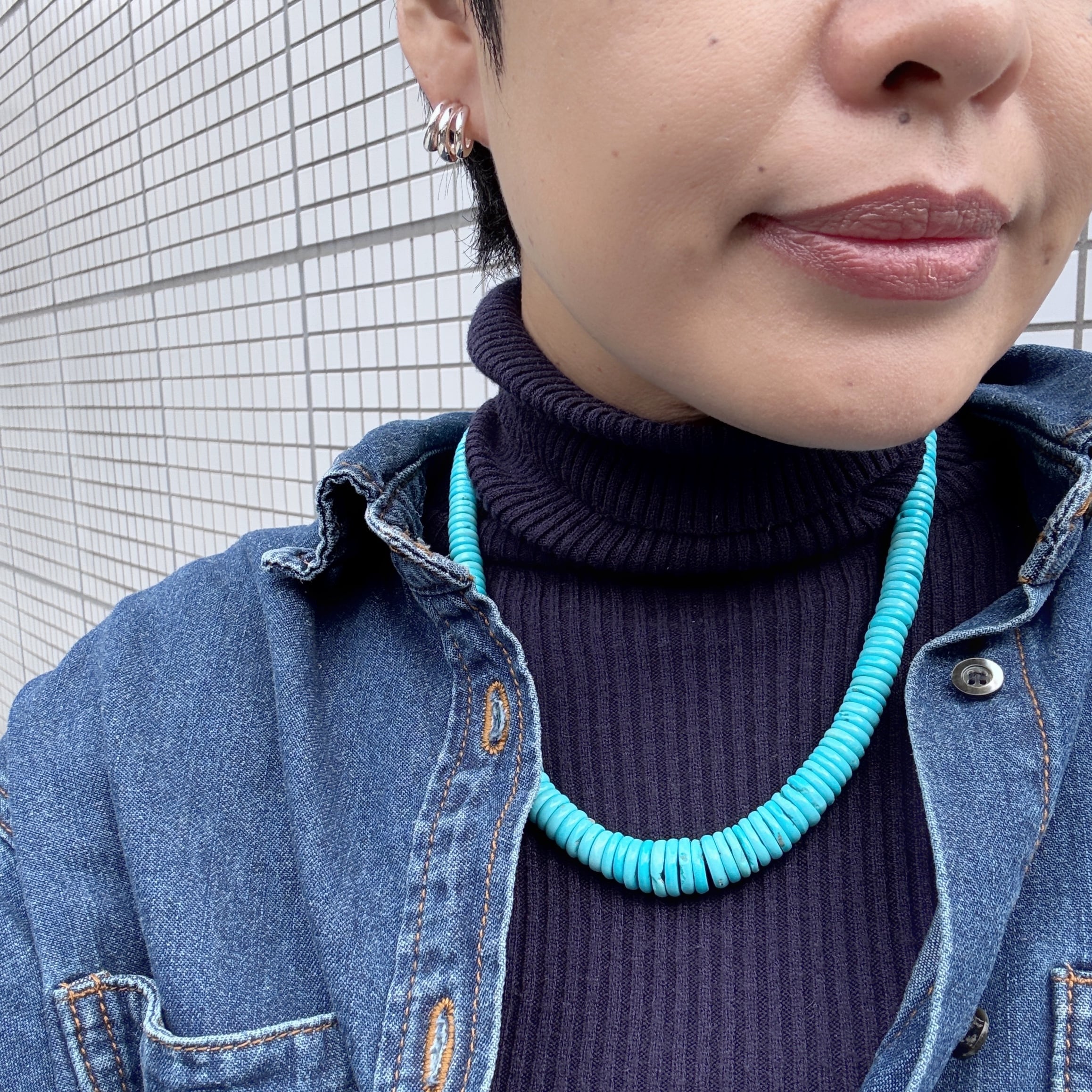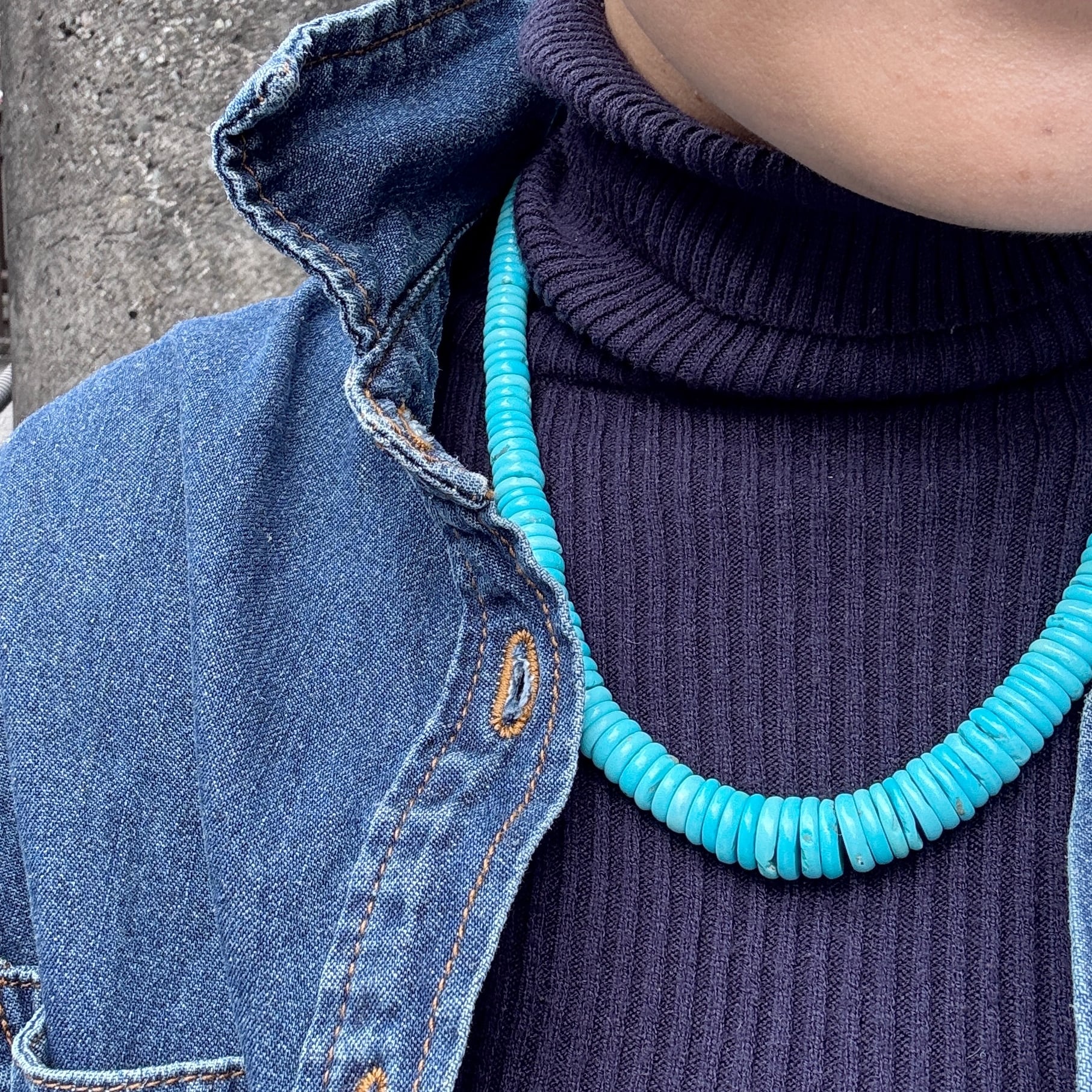 ロンデル型のターコイズを繋ぎ合わせたネックレスです。