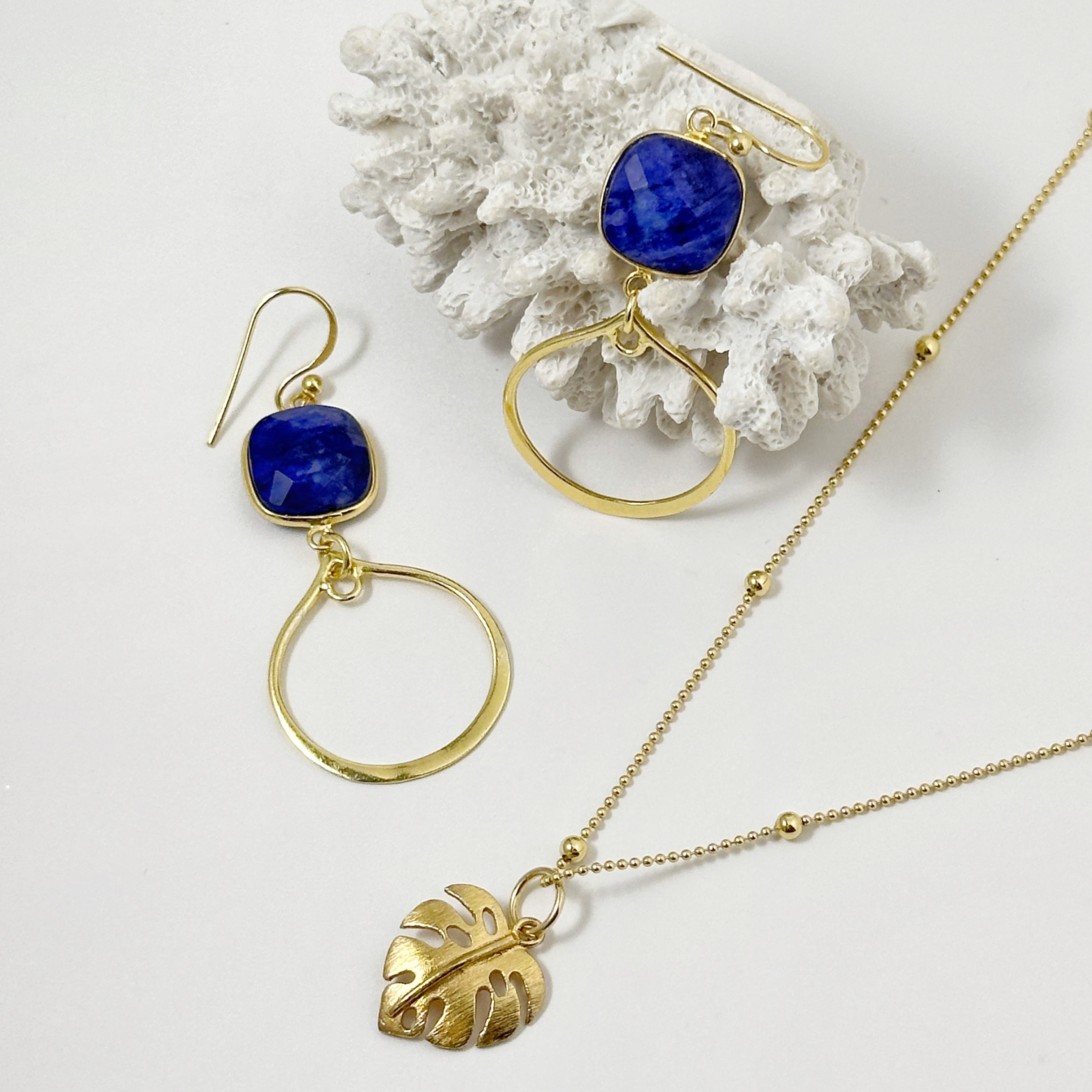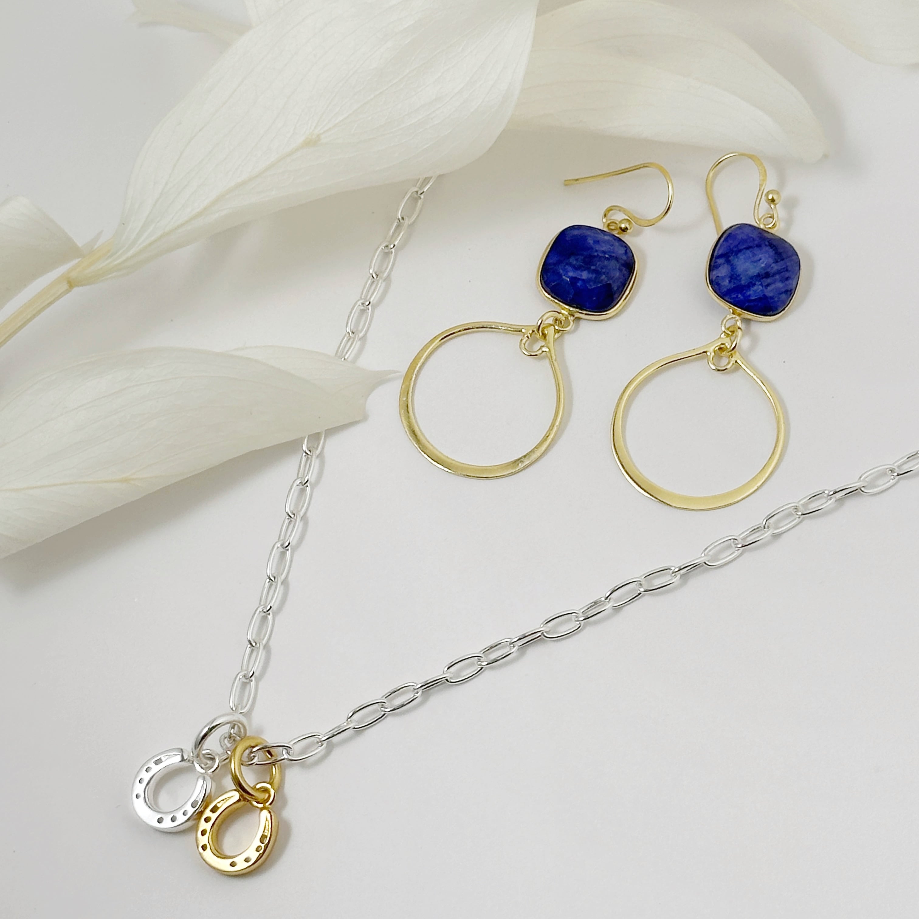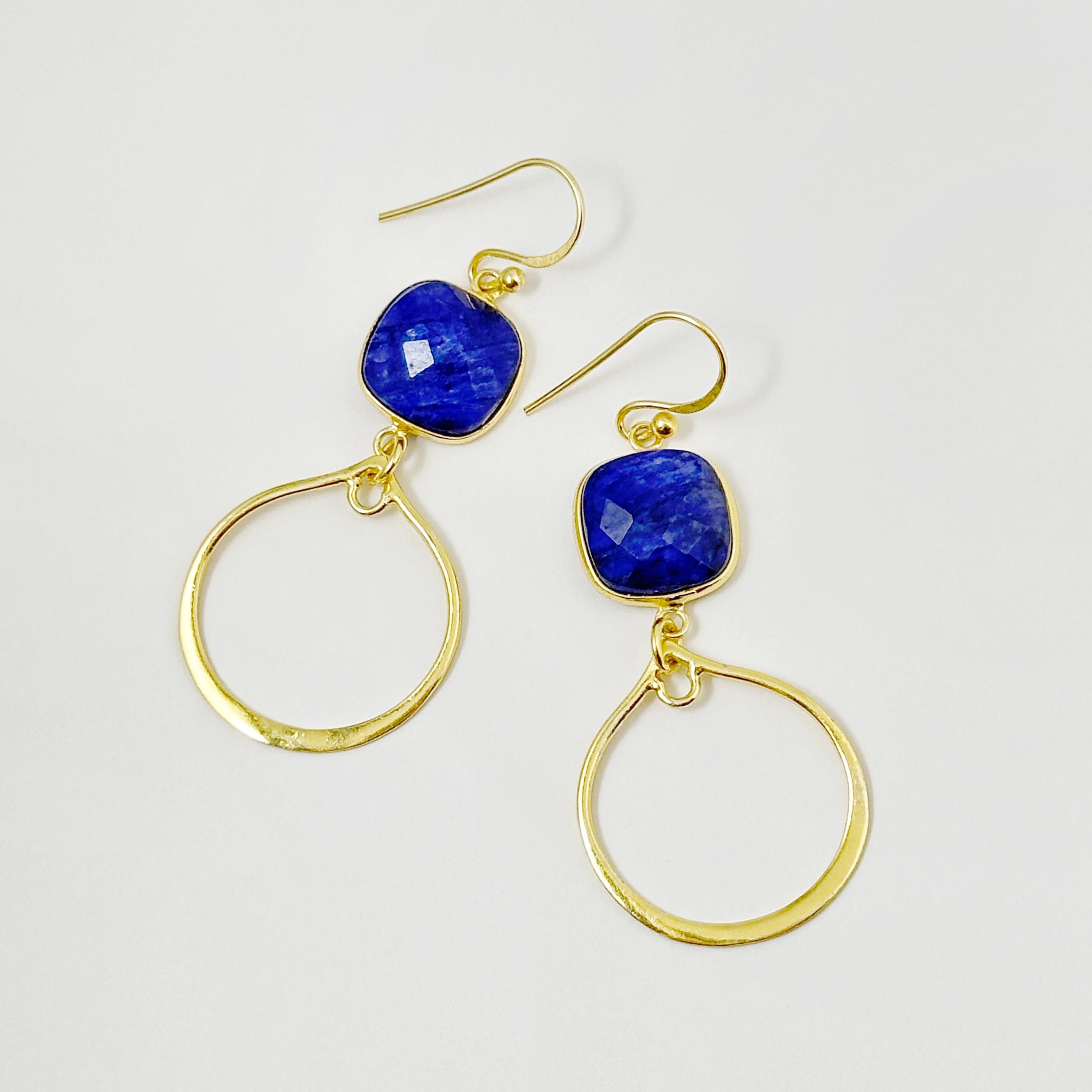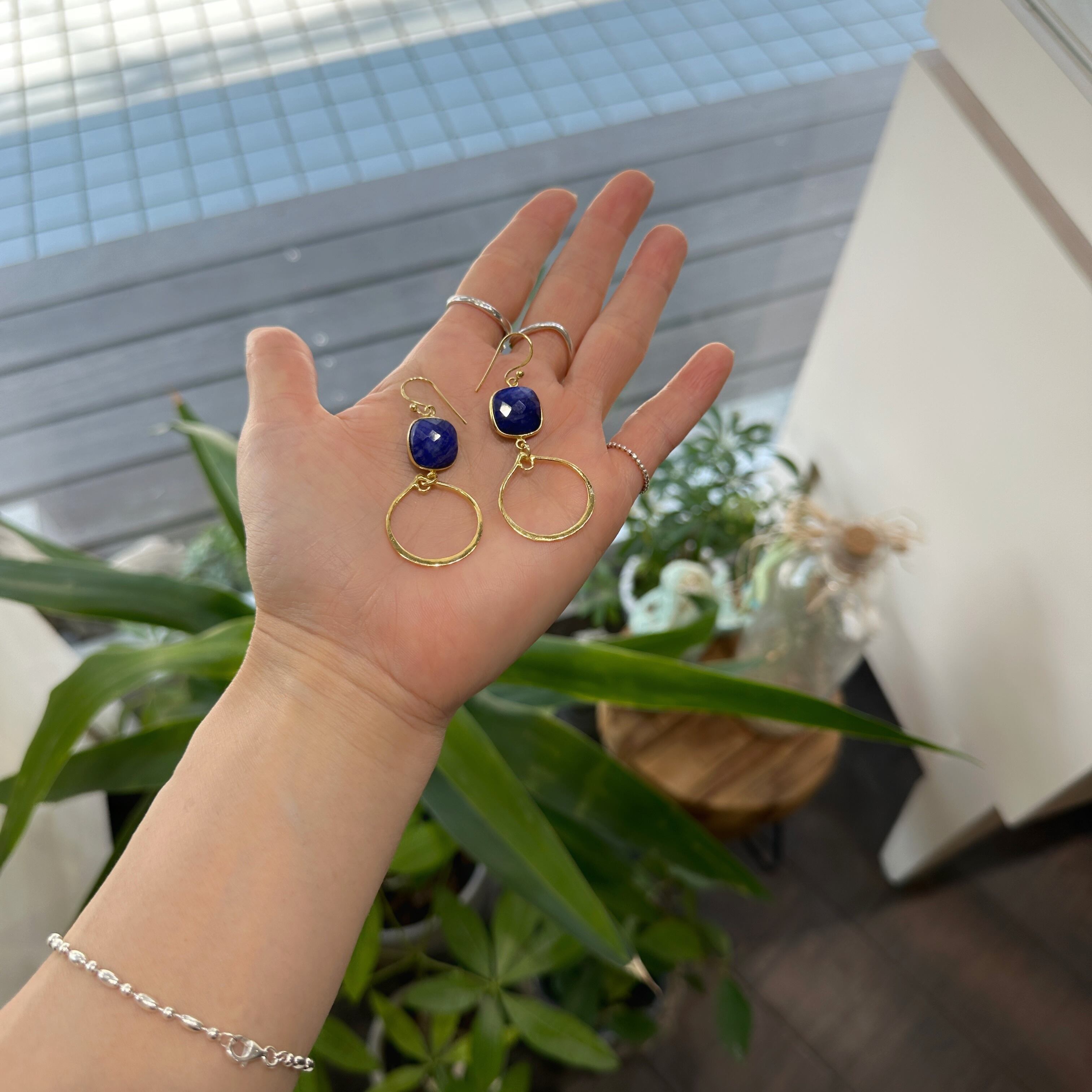 神秘的なサファイアは白いシャツに合わせてもパリッと見え、同系色のニットと合わせても