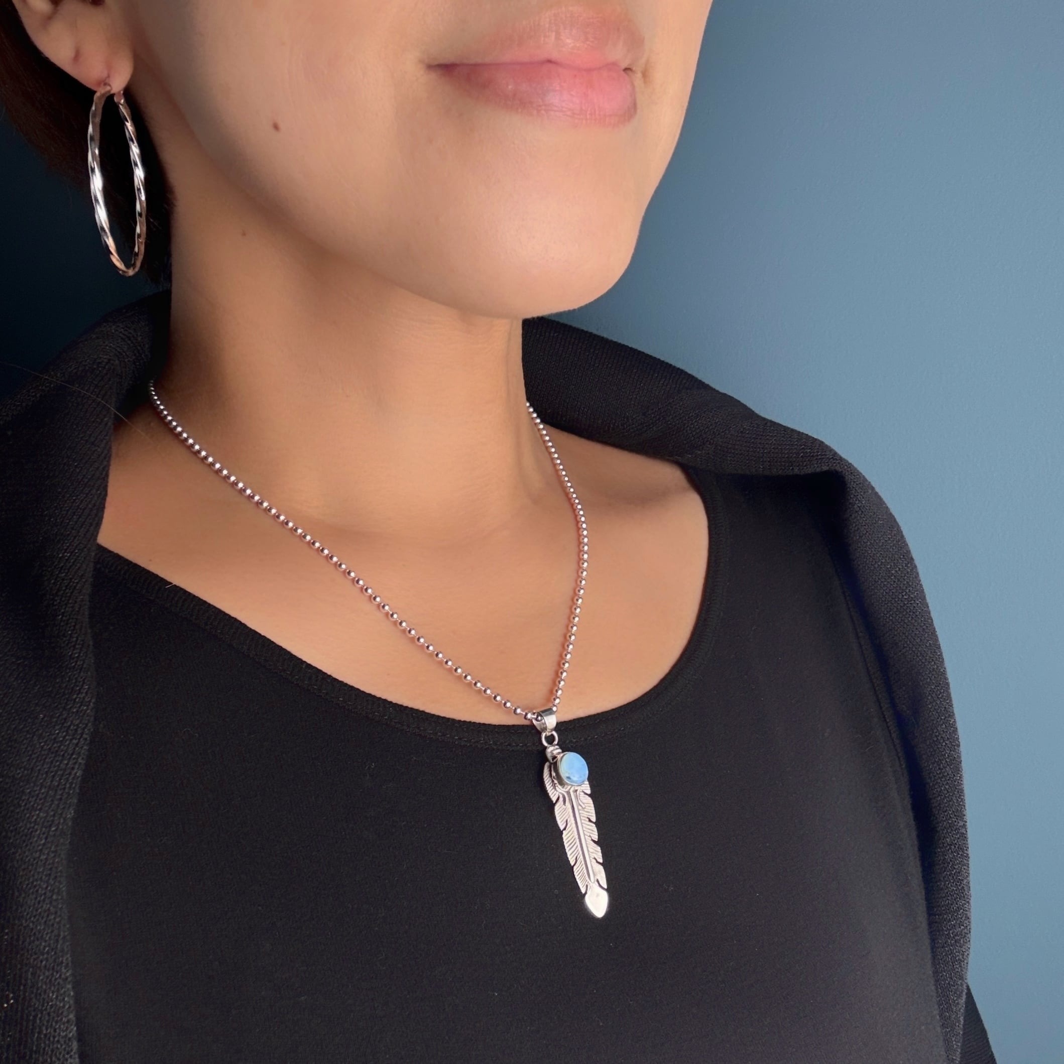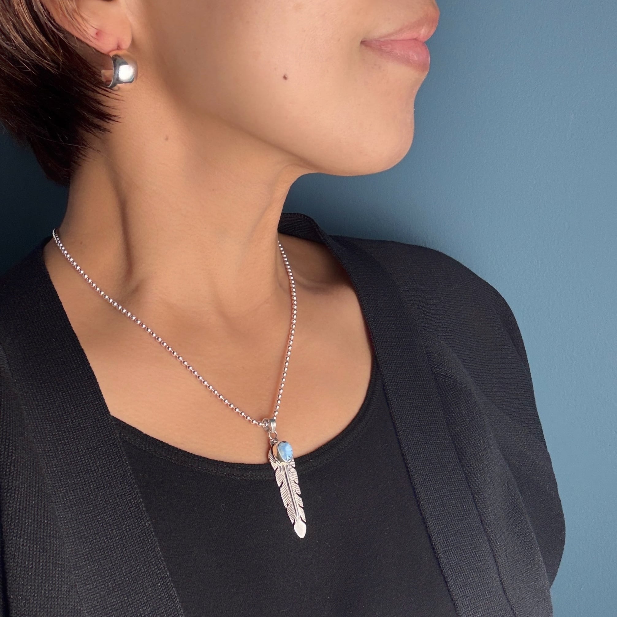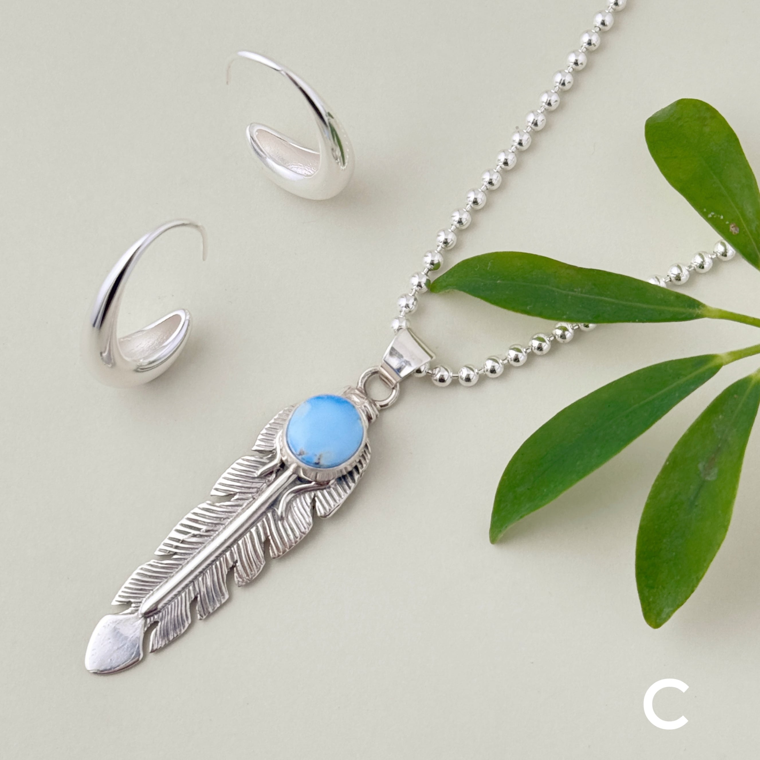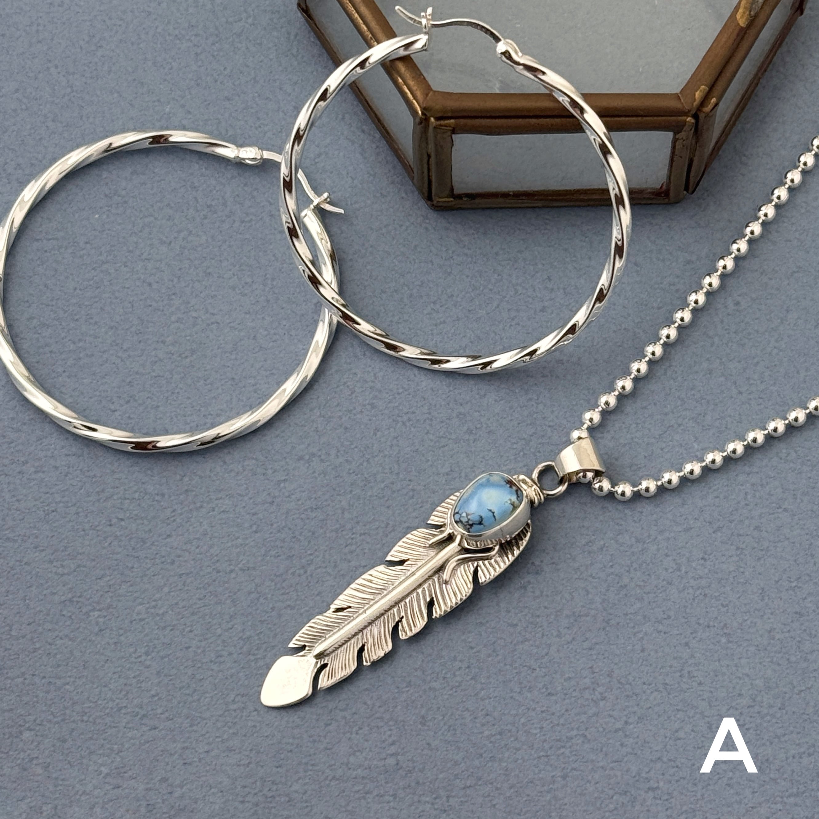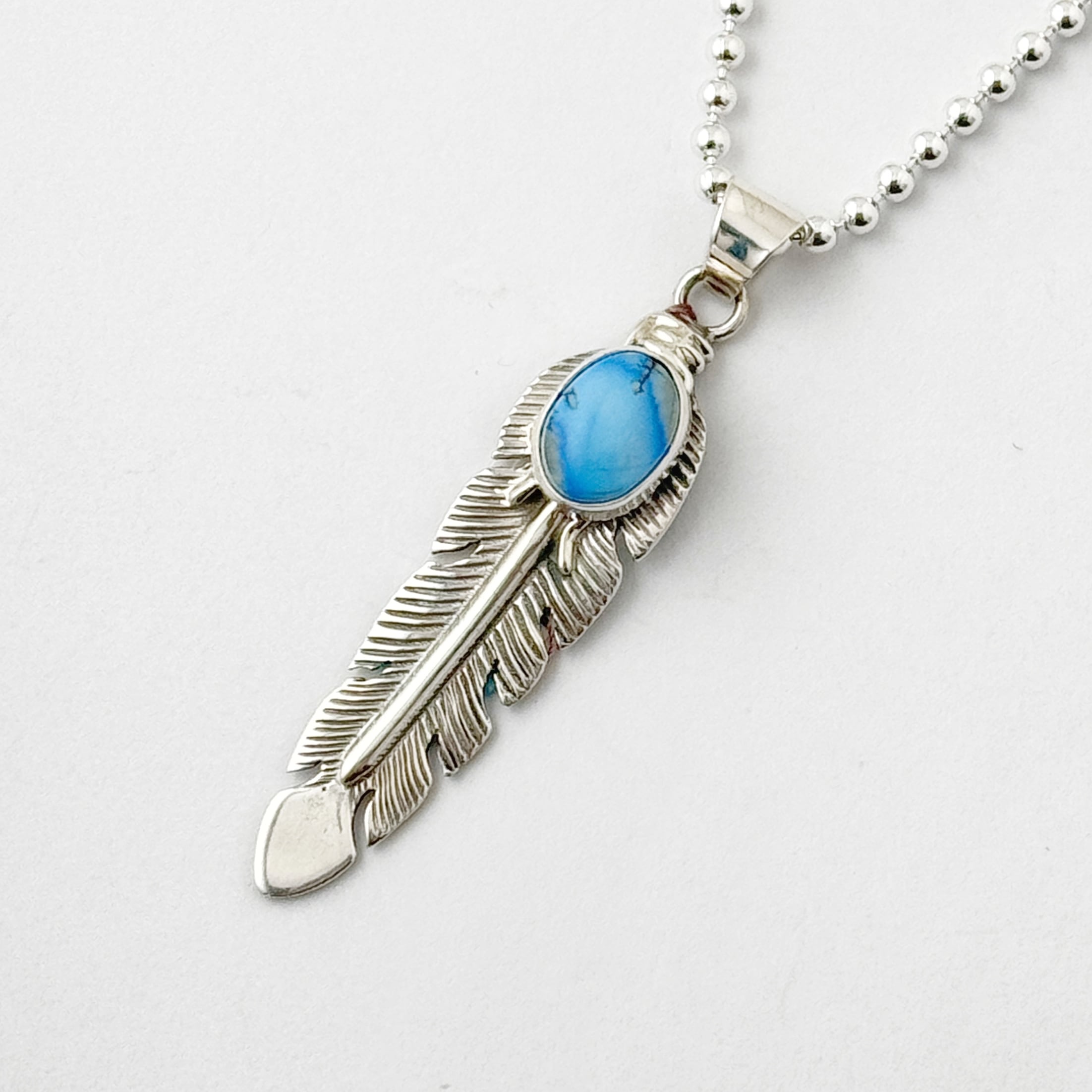 《Indian Jewelry 》ゴールデンヒル ターコイズ フェザー ペンダント