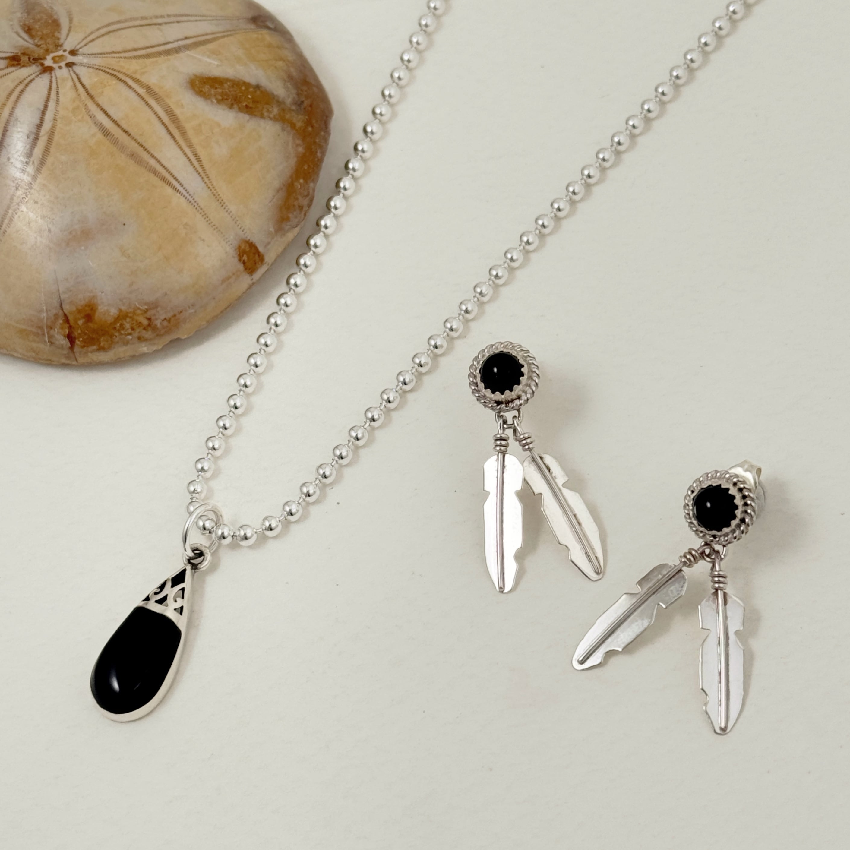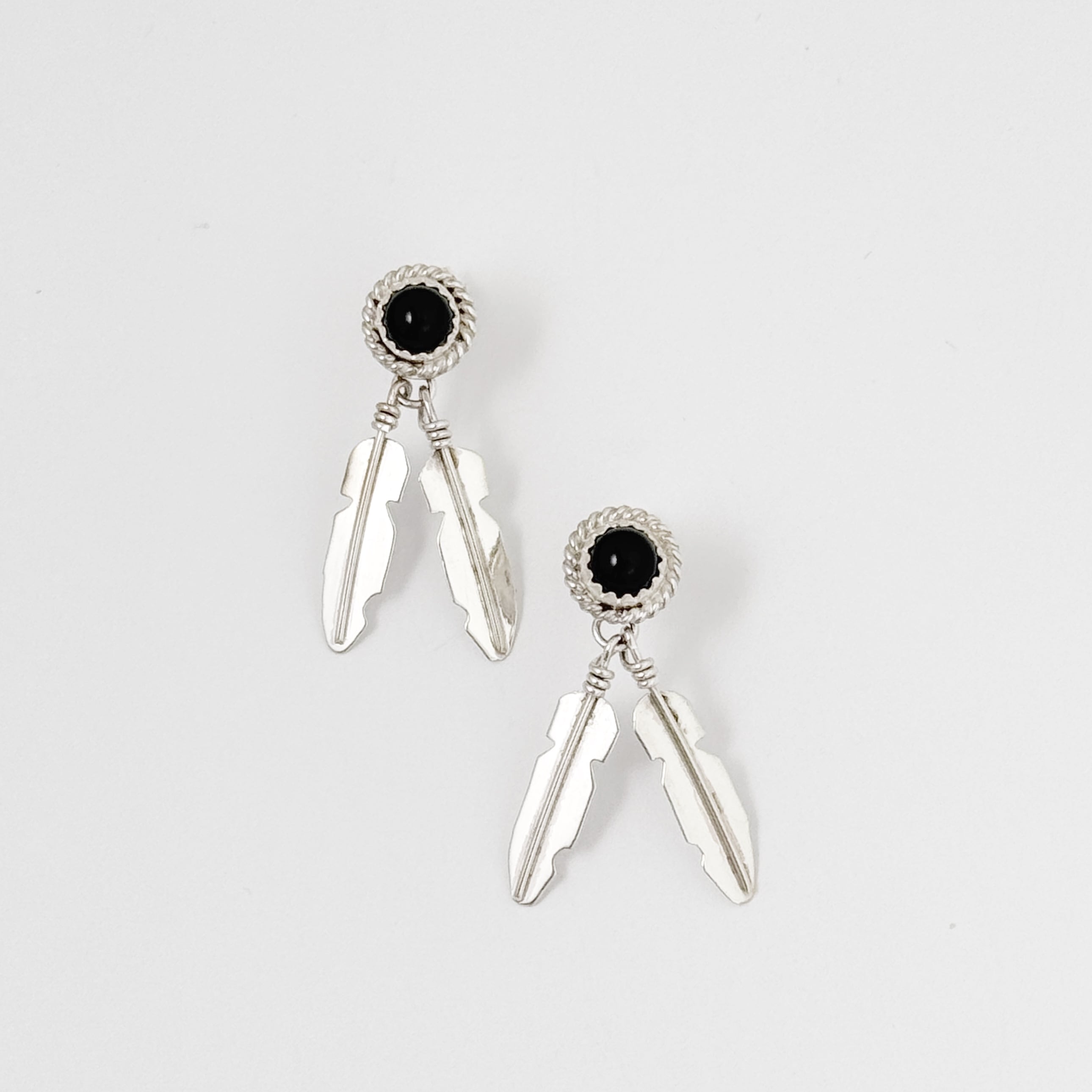 《Indian Jewelry》 ダブルフェザー と ターコイズ / オニキス/ ラピスラズリ スタッドピアス