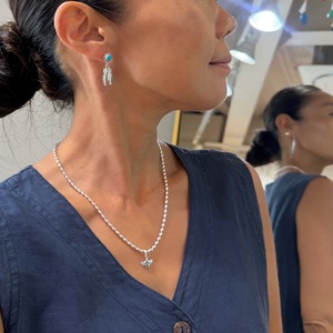 縁取りがロープワークされたラウンドにストーンが嵌め込まれ、そこからダブルフェザーがゆらゆらっと揺れるスタッドピアス。
