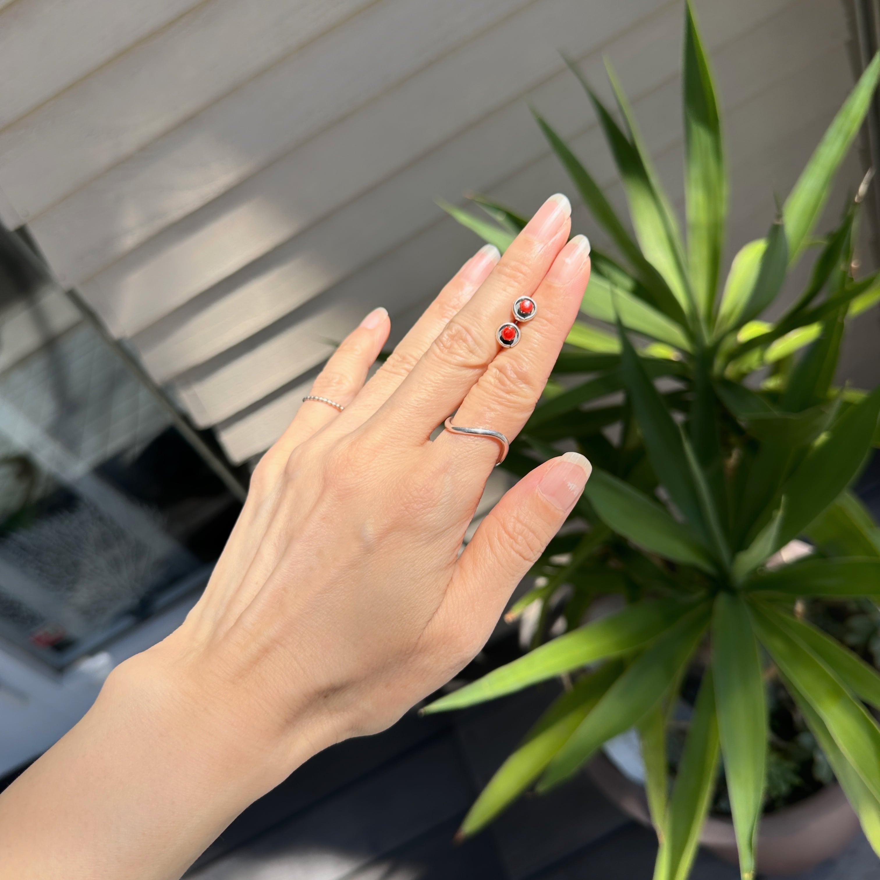 サンゴの周りをぐるっとシルバーフレームが施され