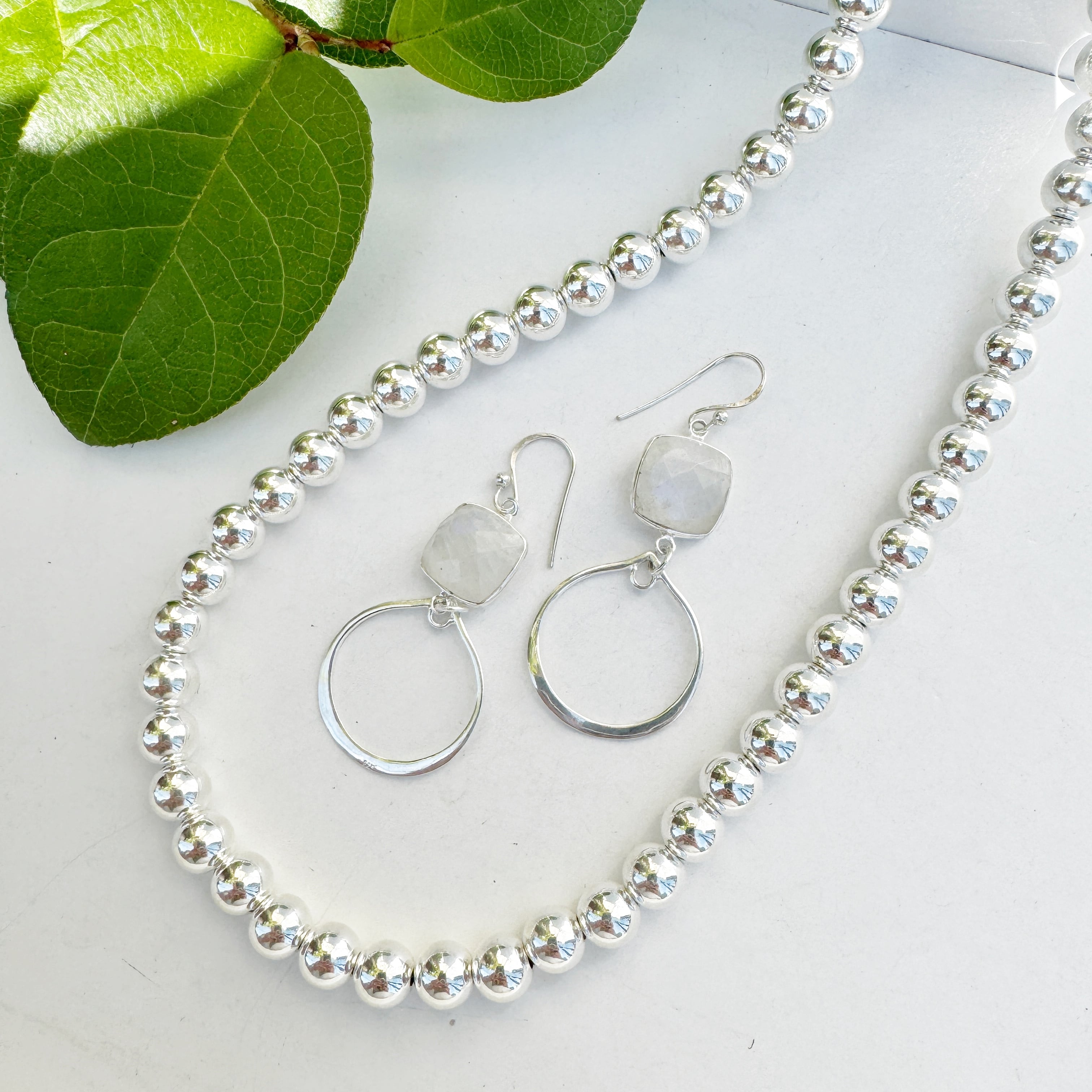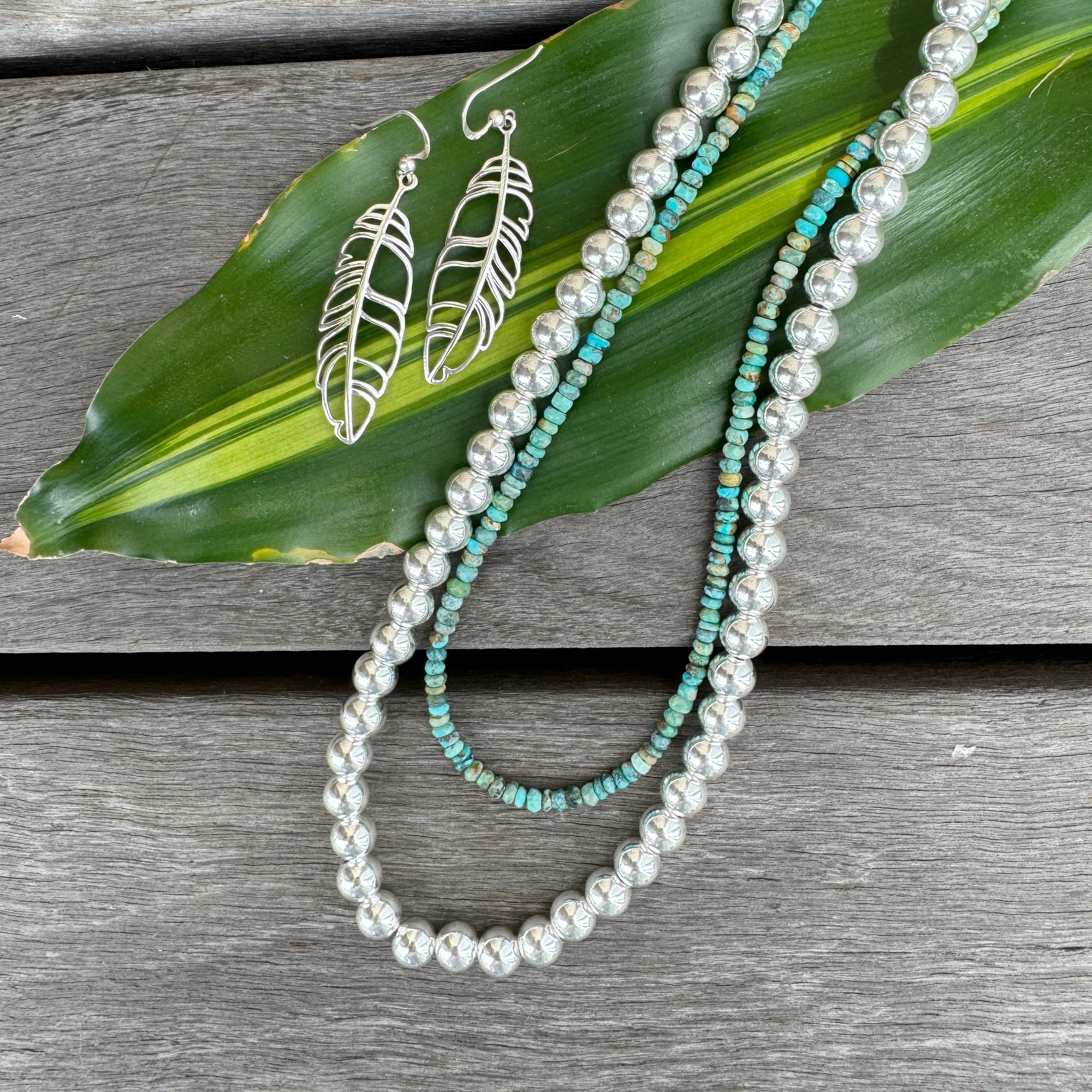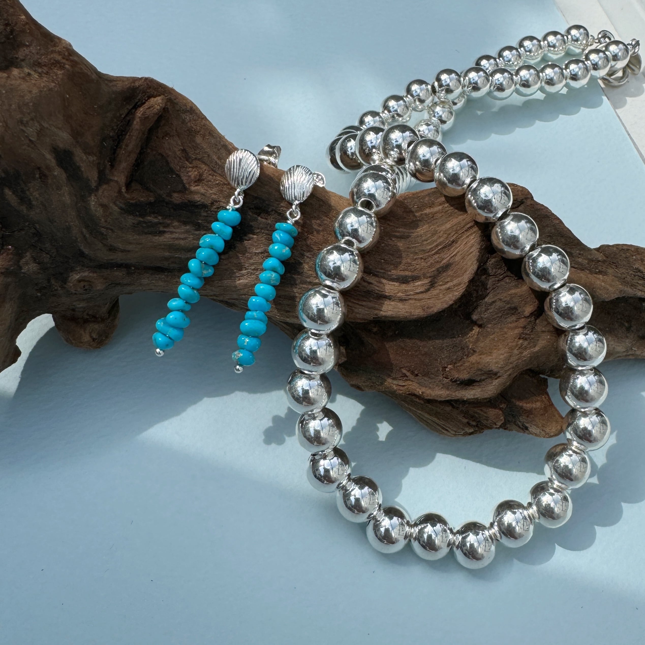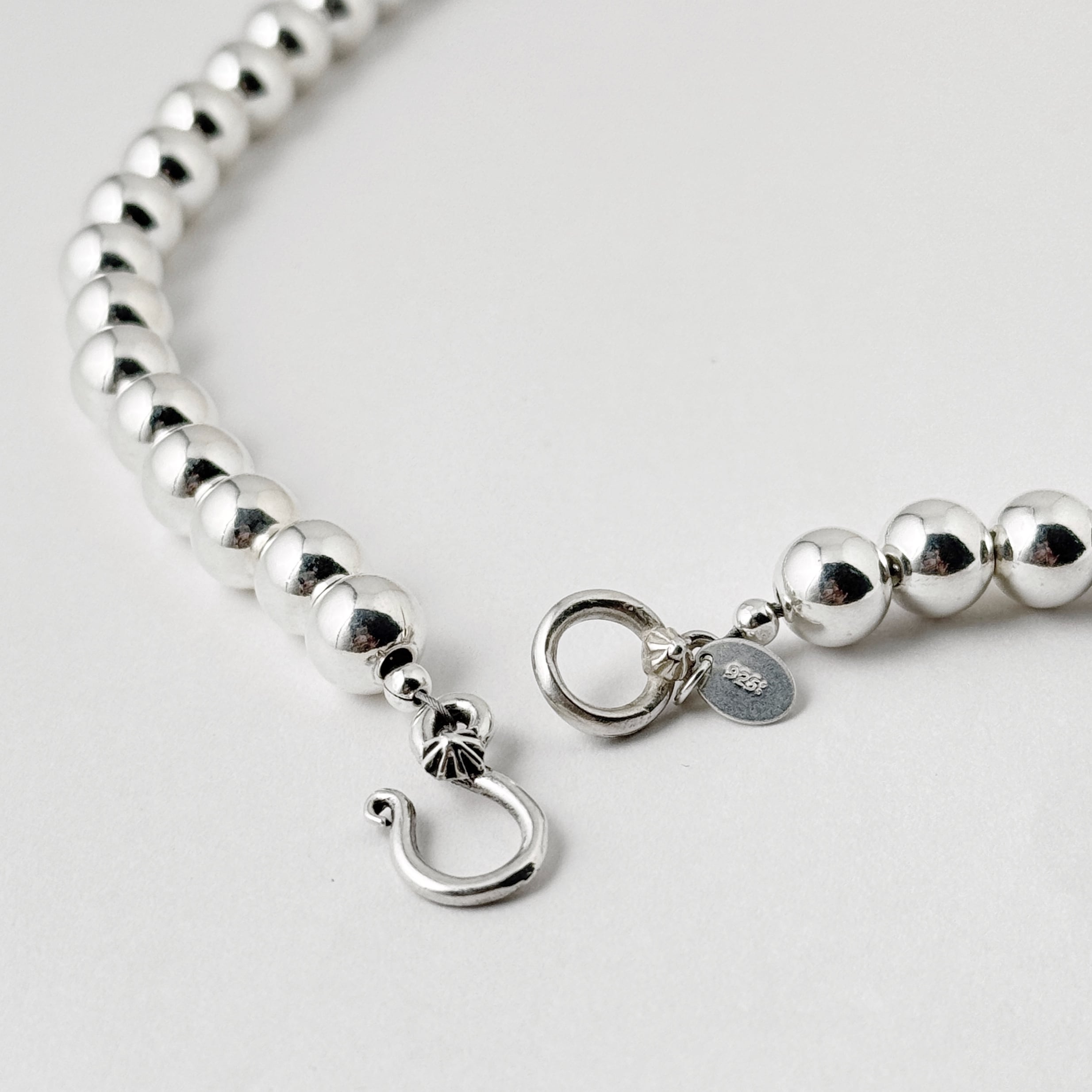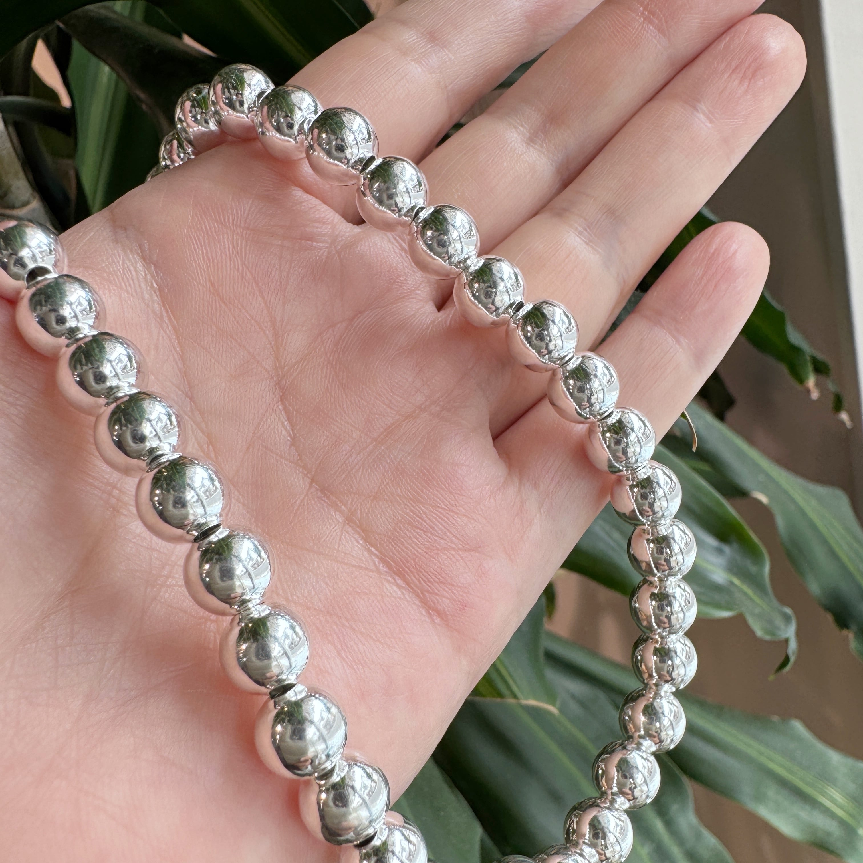 (真珠ではなく、とっても綺麗に輝くハンドメイドのシルバーボールを連ねたネックレスです。)