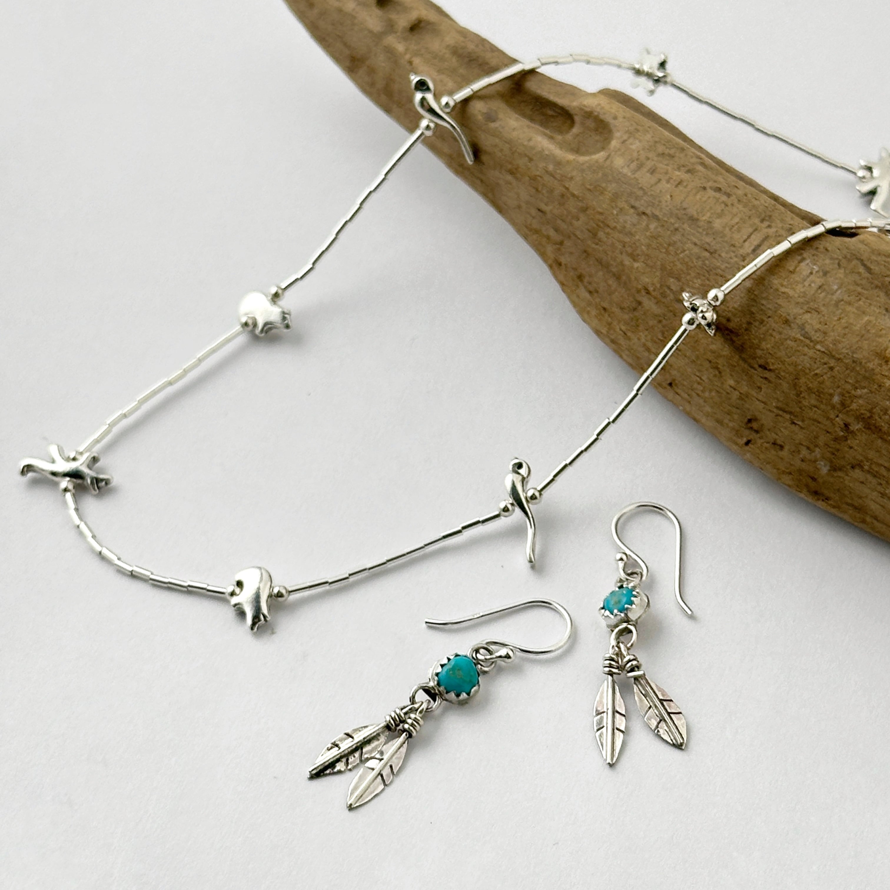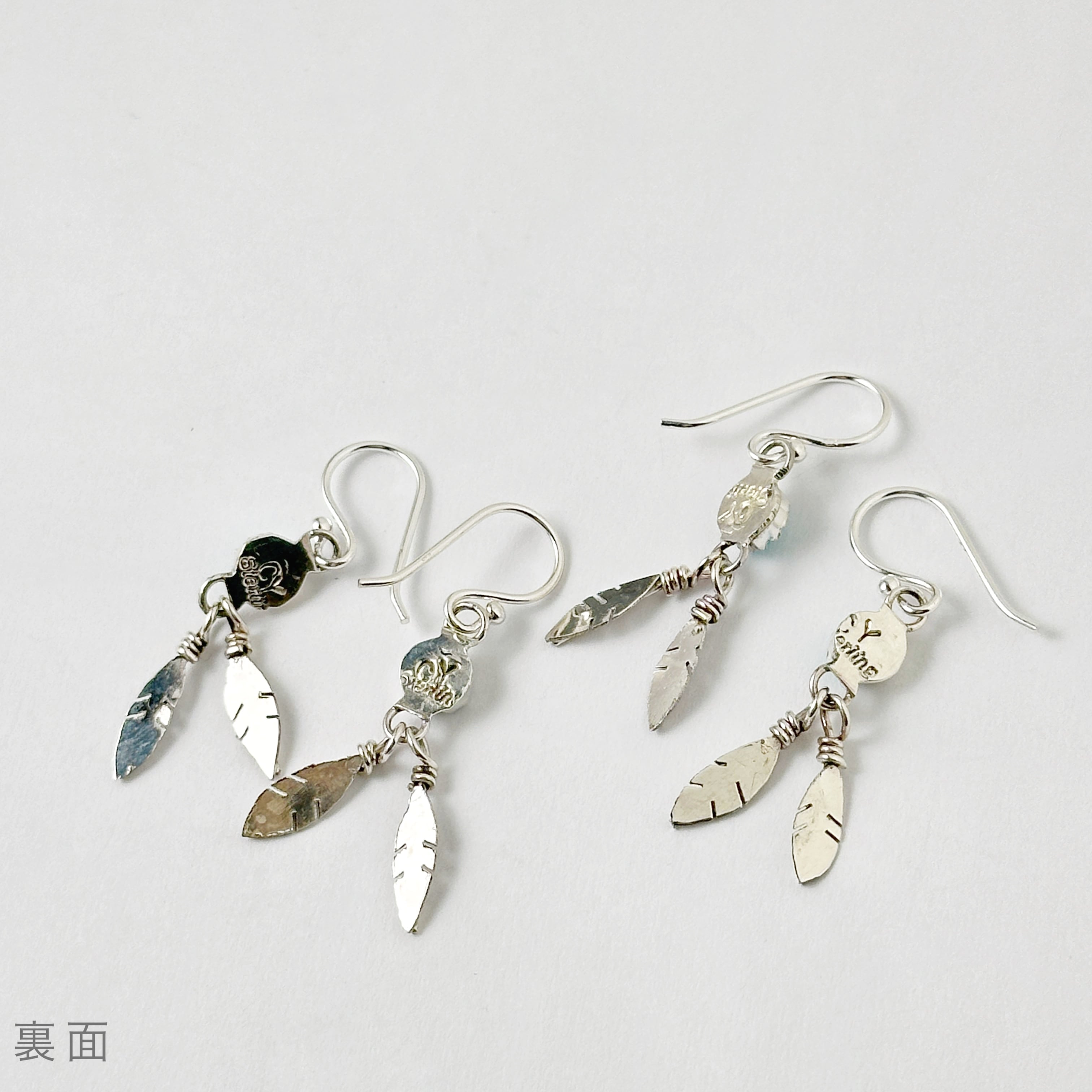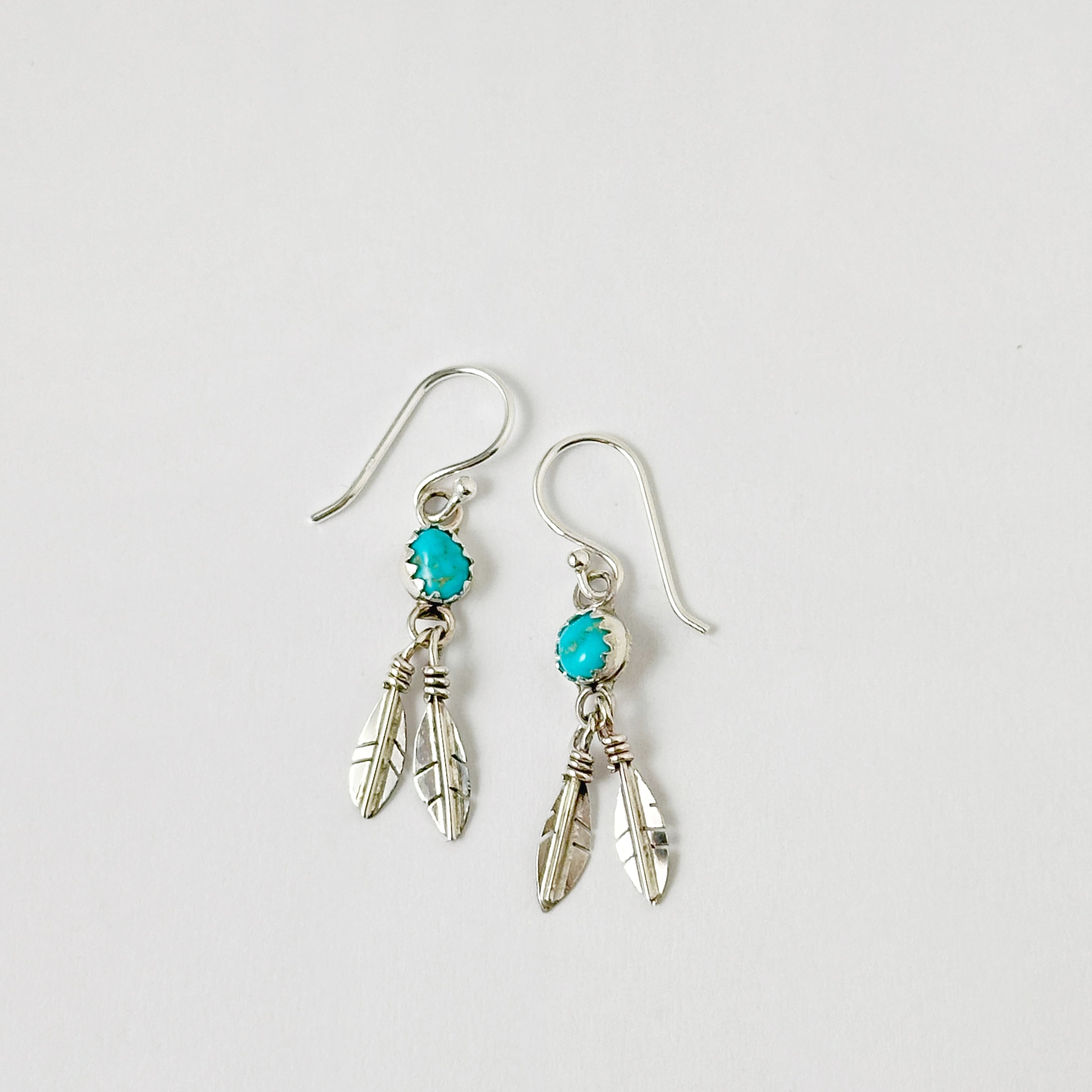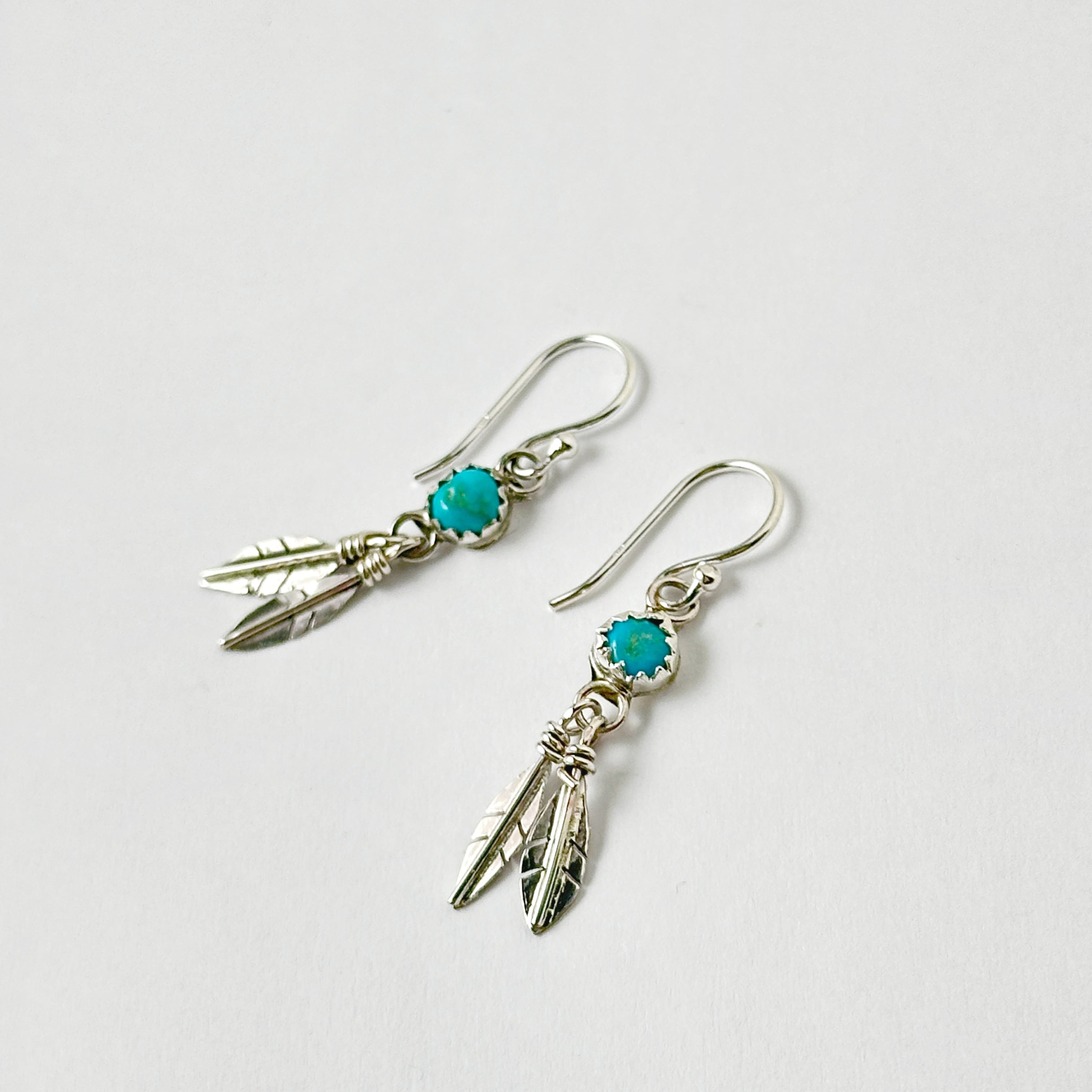 Indian Jewelry のダブル フェザーと小さなターコイズがついたフックピアス。