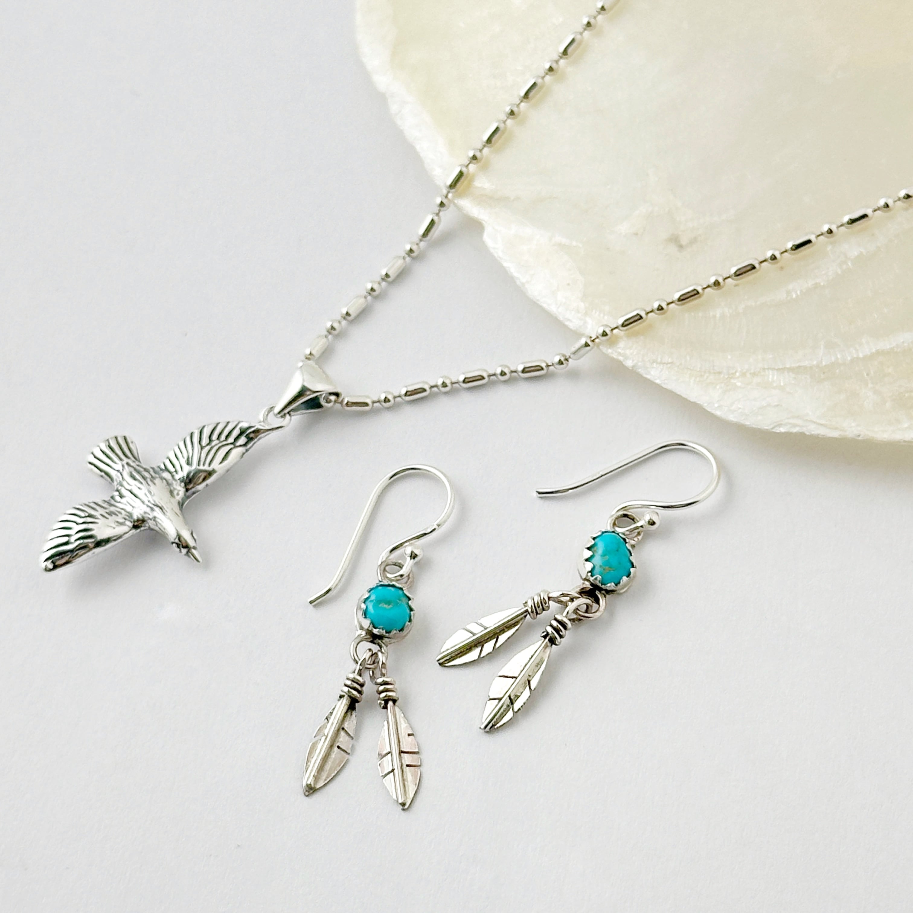 《Indian Jewelry》 ターコイズ と ダブルフェザー フック ピアス 羽 鳥 イーグル