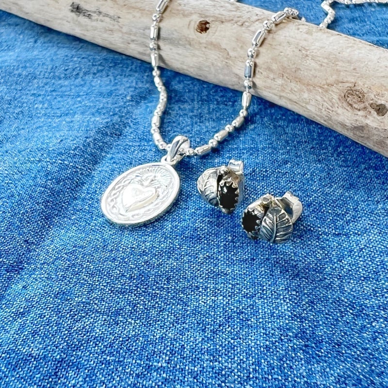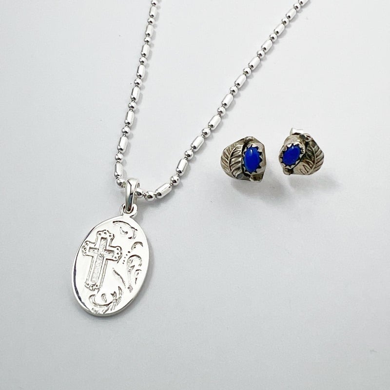 オキシダイズされたシルバーがキラキラジュエリーとは違い、アンティークな雰囲気を出してくれています。