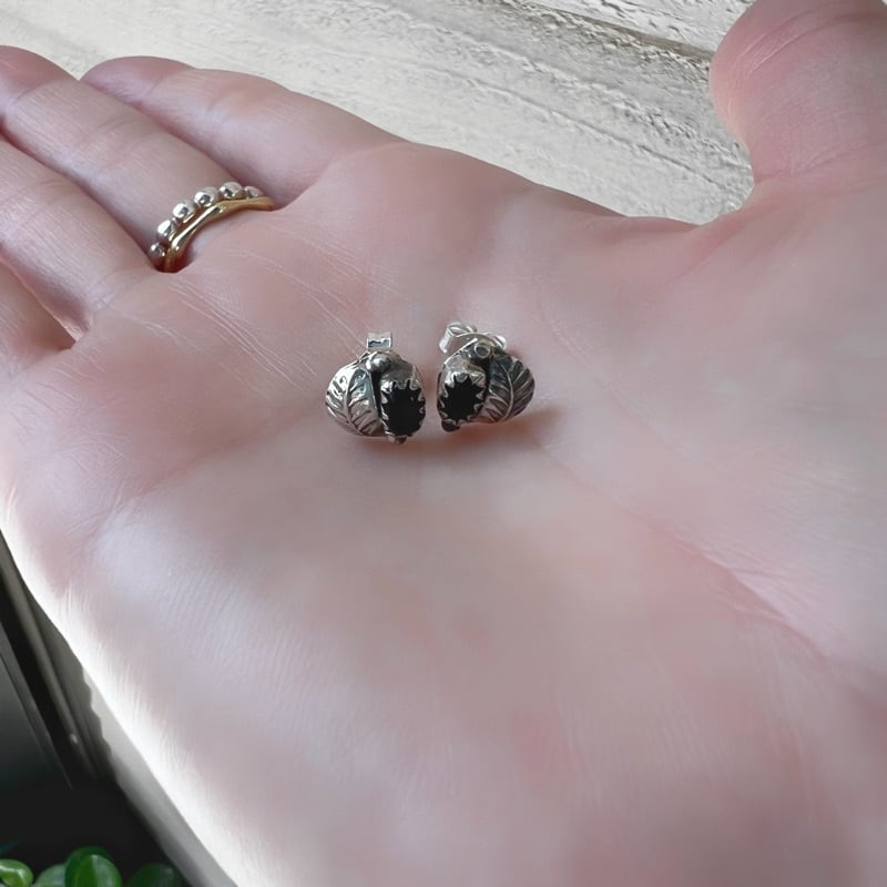 《Indian Jewelry》 リーフ と ターコイズ / オニキス/ ラピスラズリ スタッドピアス