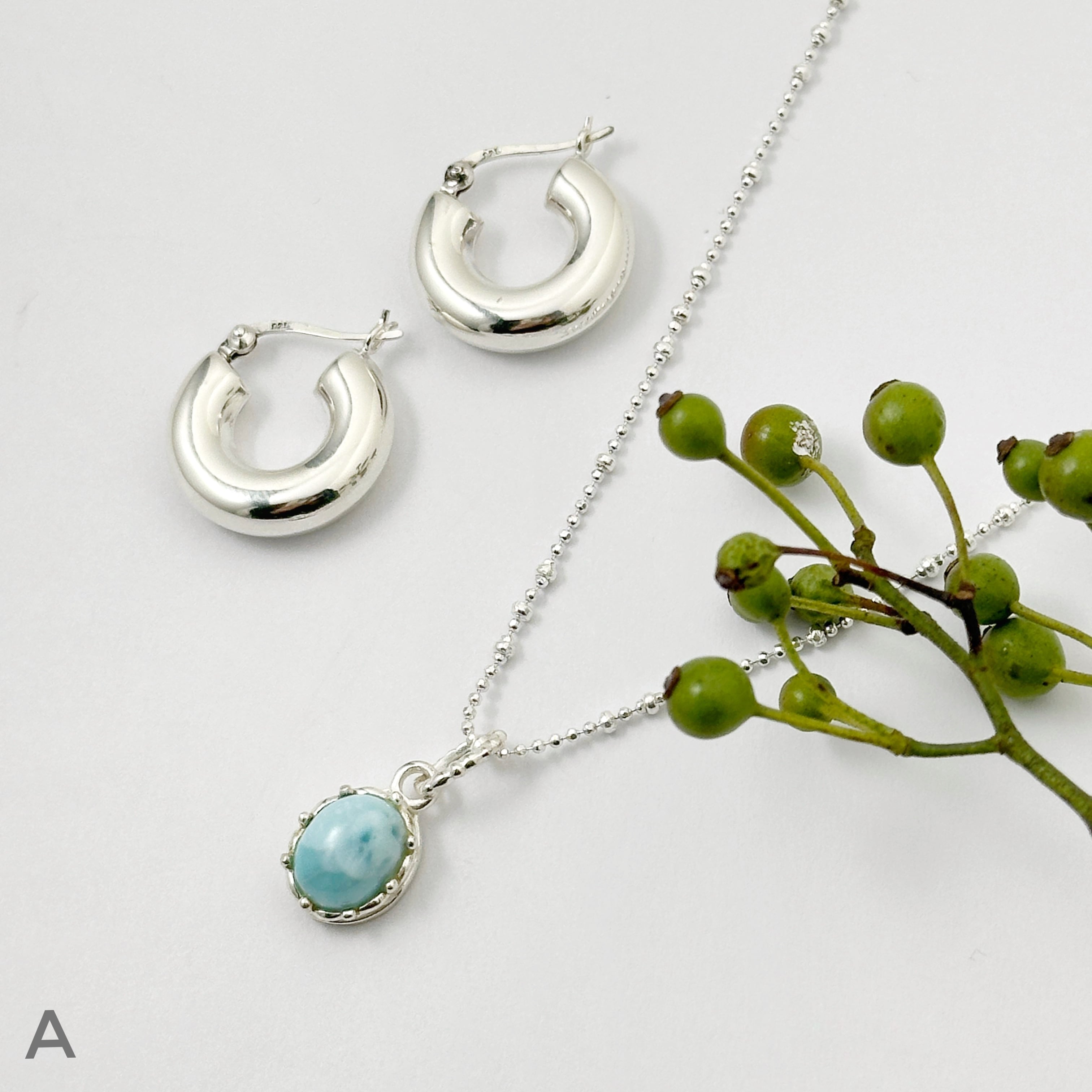 ラリマーの存在感を十分に感じられる贅沢なジュエリーです。