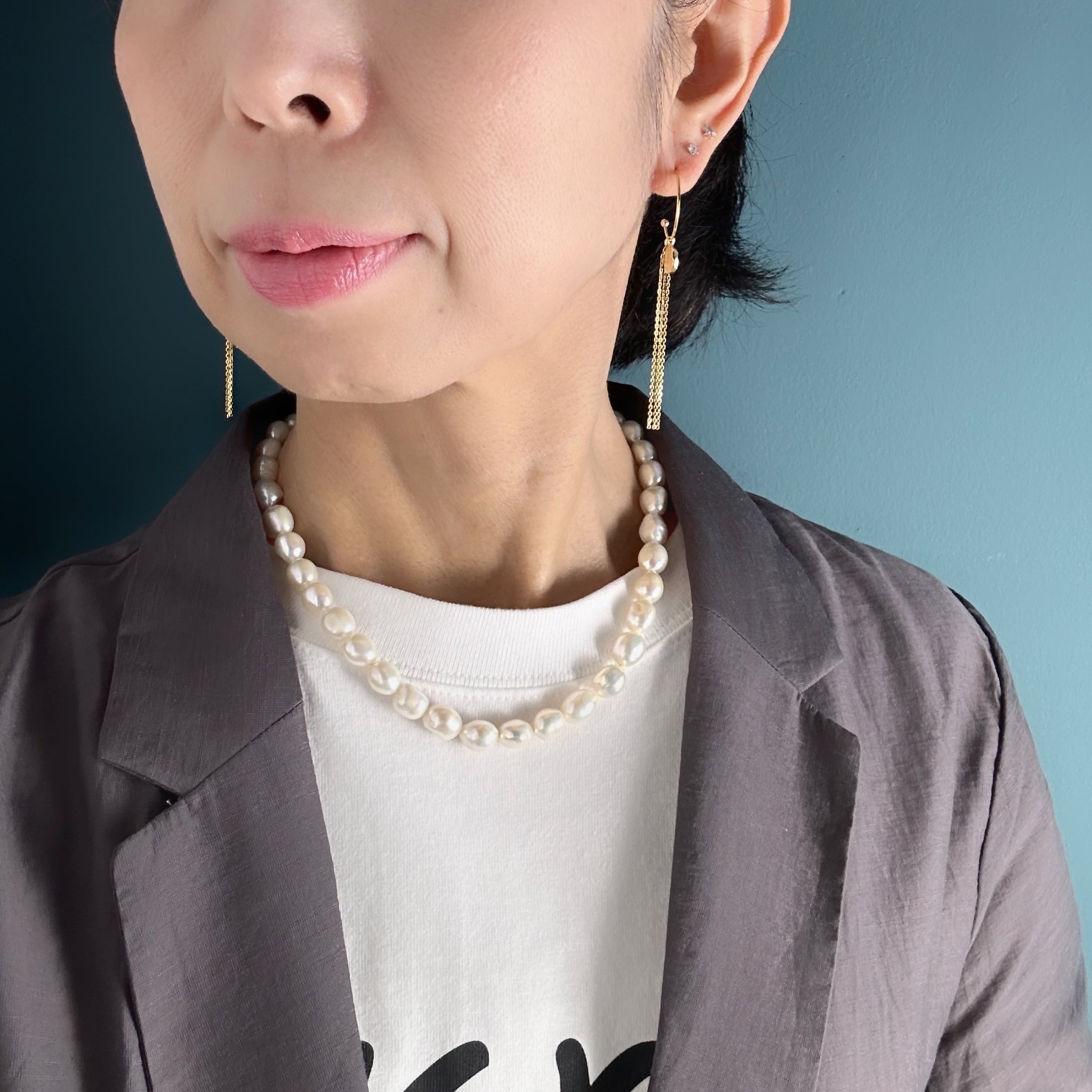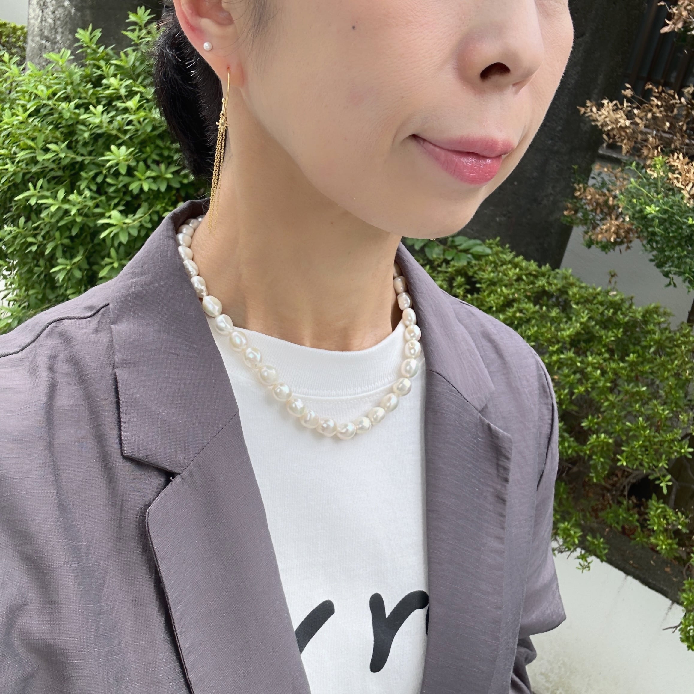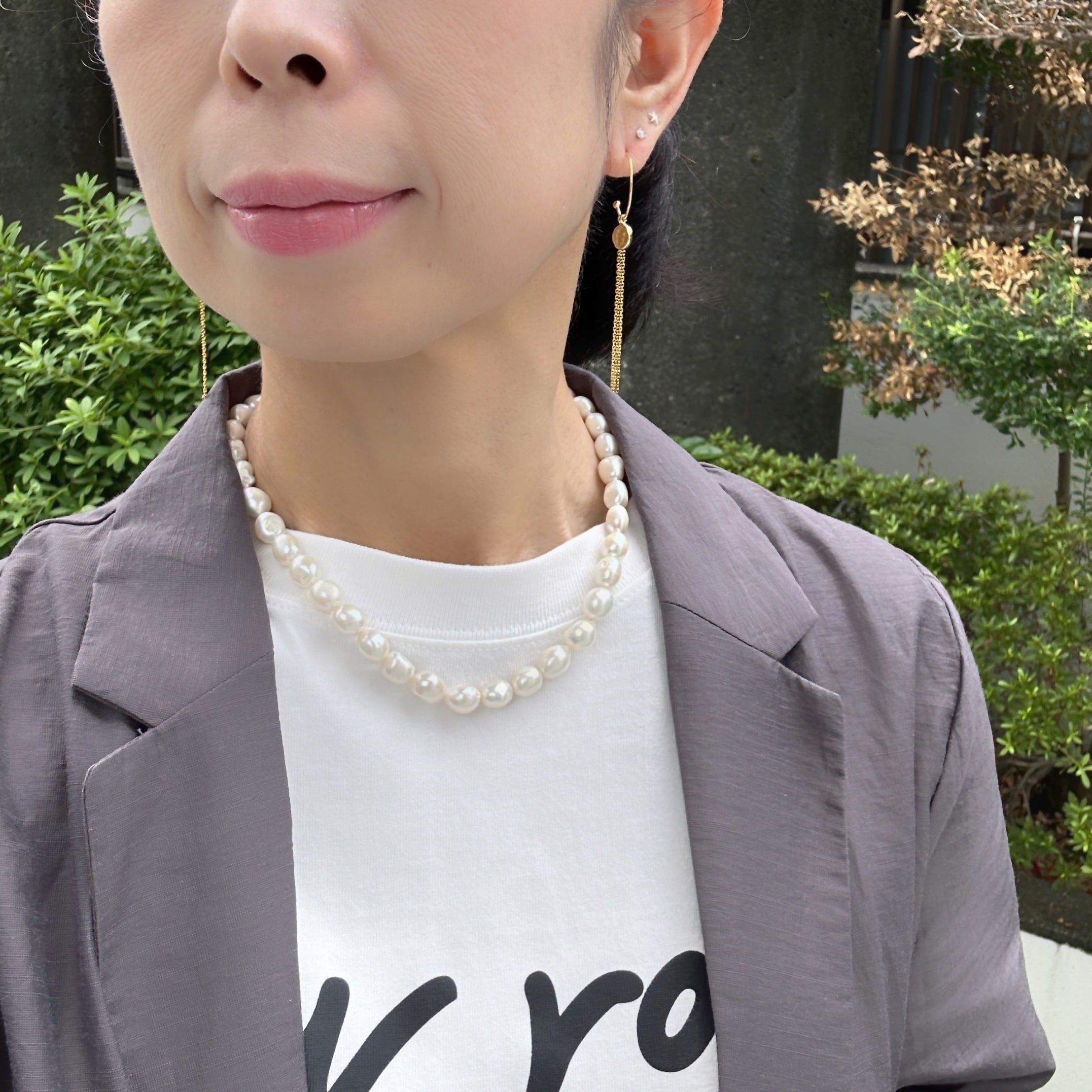 ラグジュアリーな雰囲気のピアスとなりますがカジュアルコーデに合わせていただいても素敵になります。