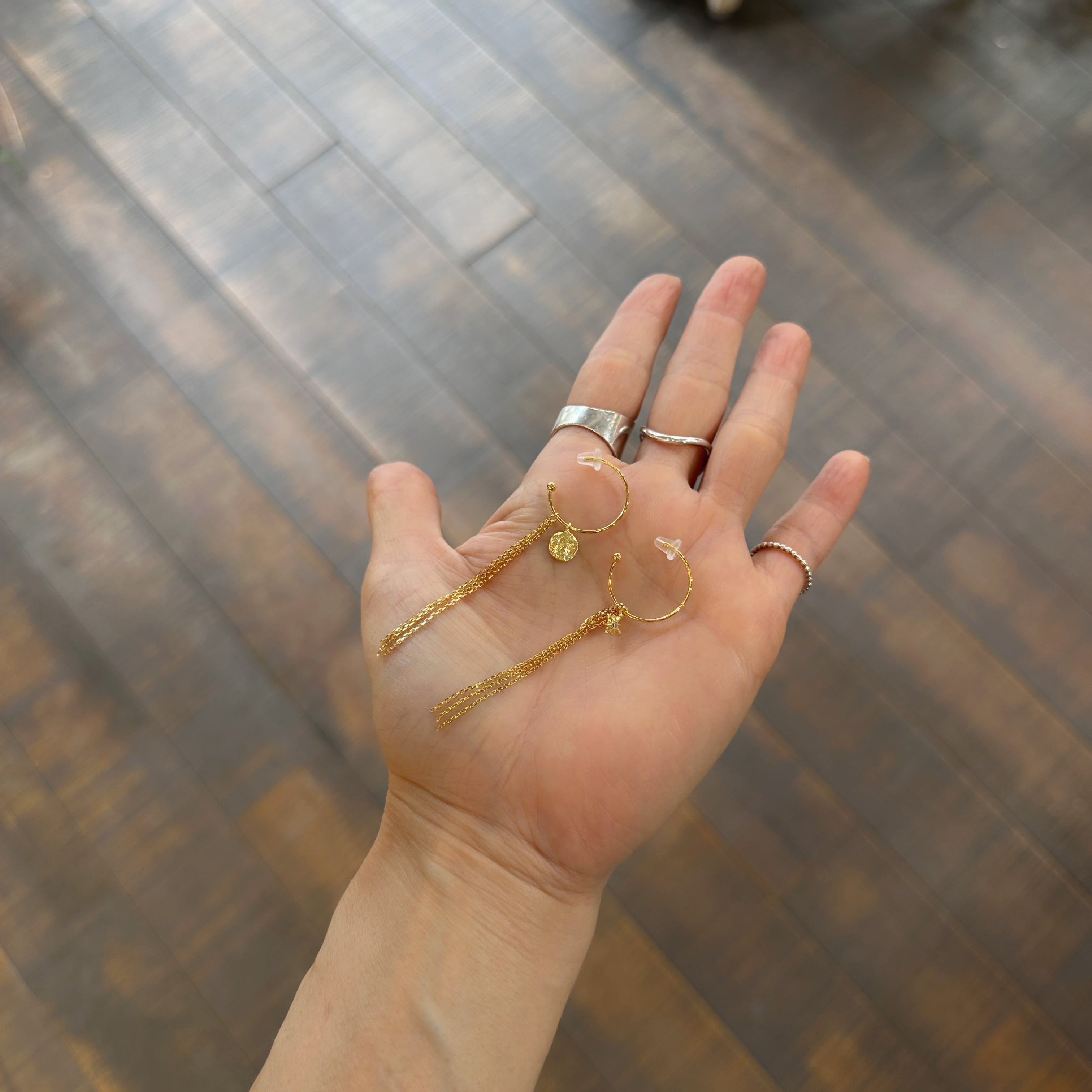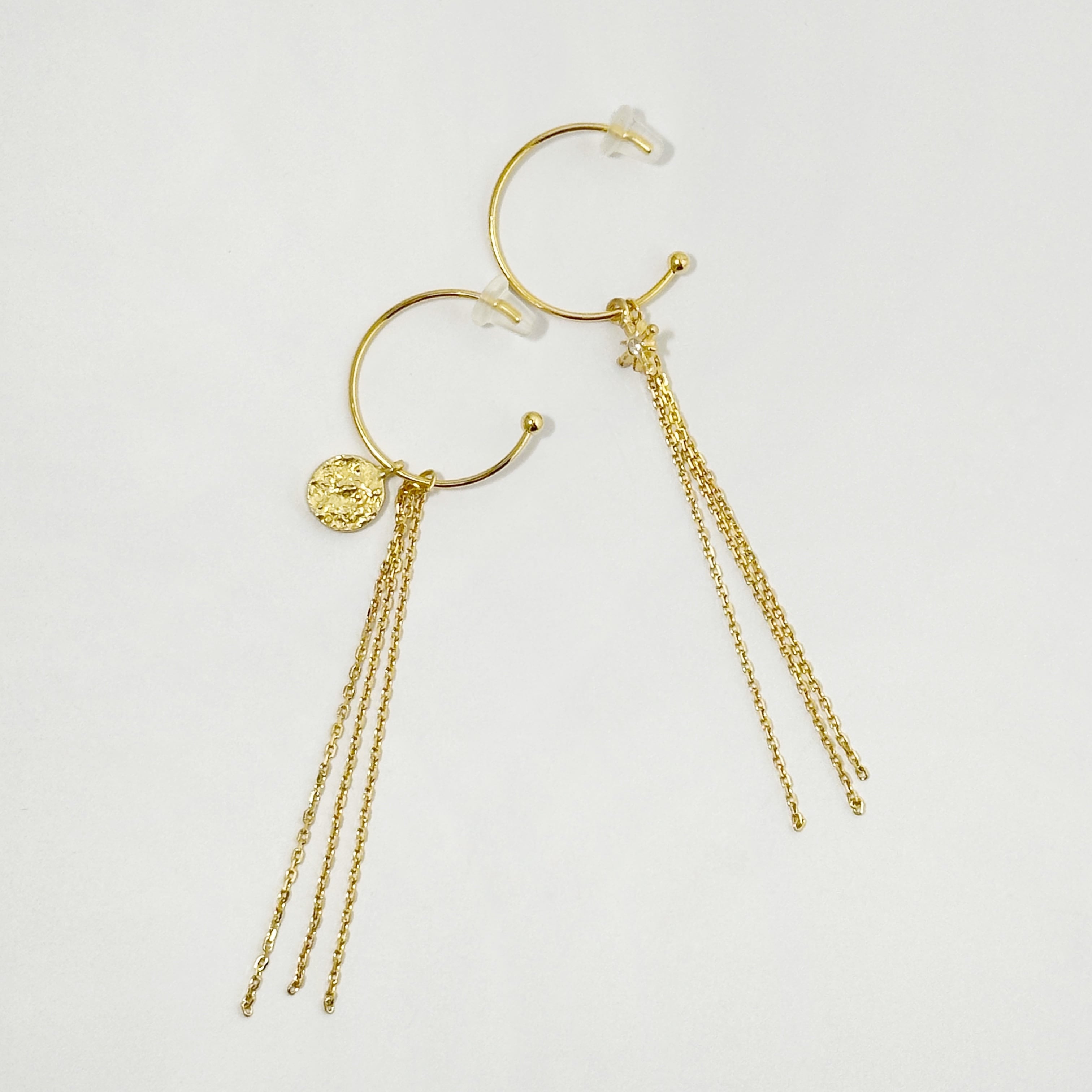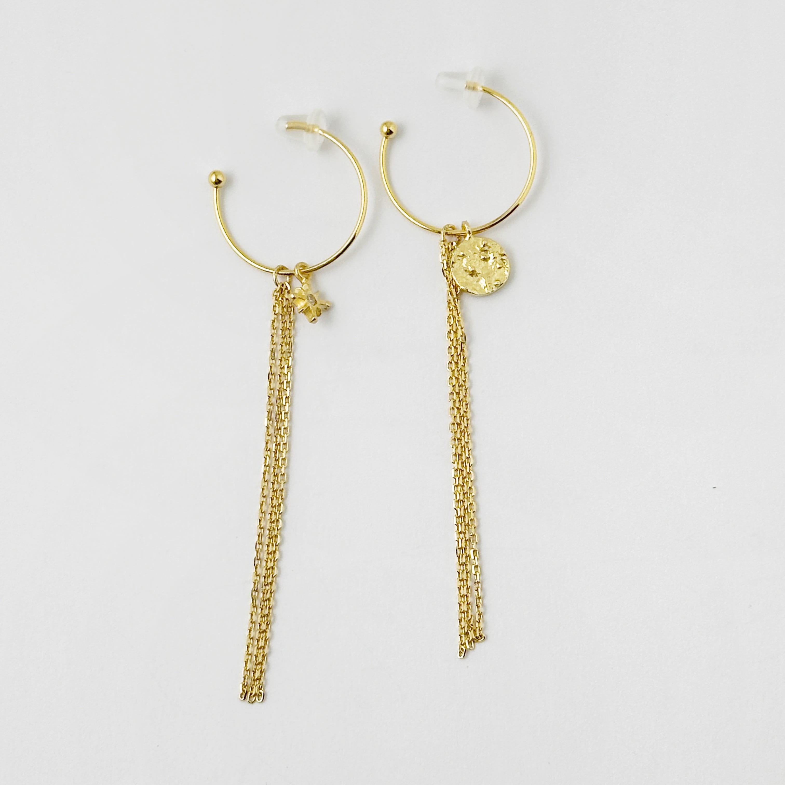 Lagoon Original Gold Coating 満月と一番星の フリンジ フープ ピアス