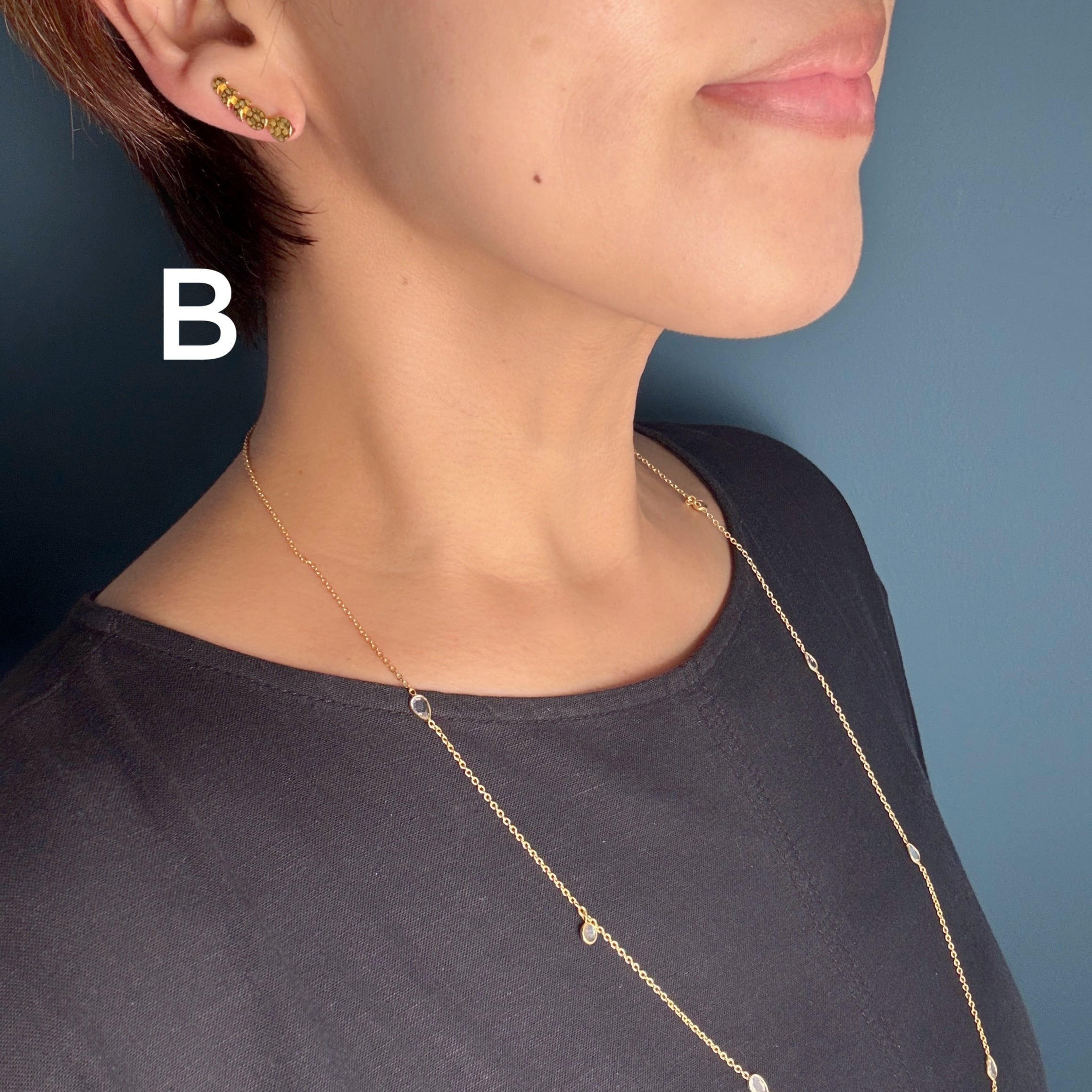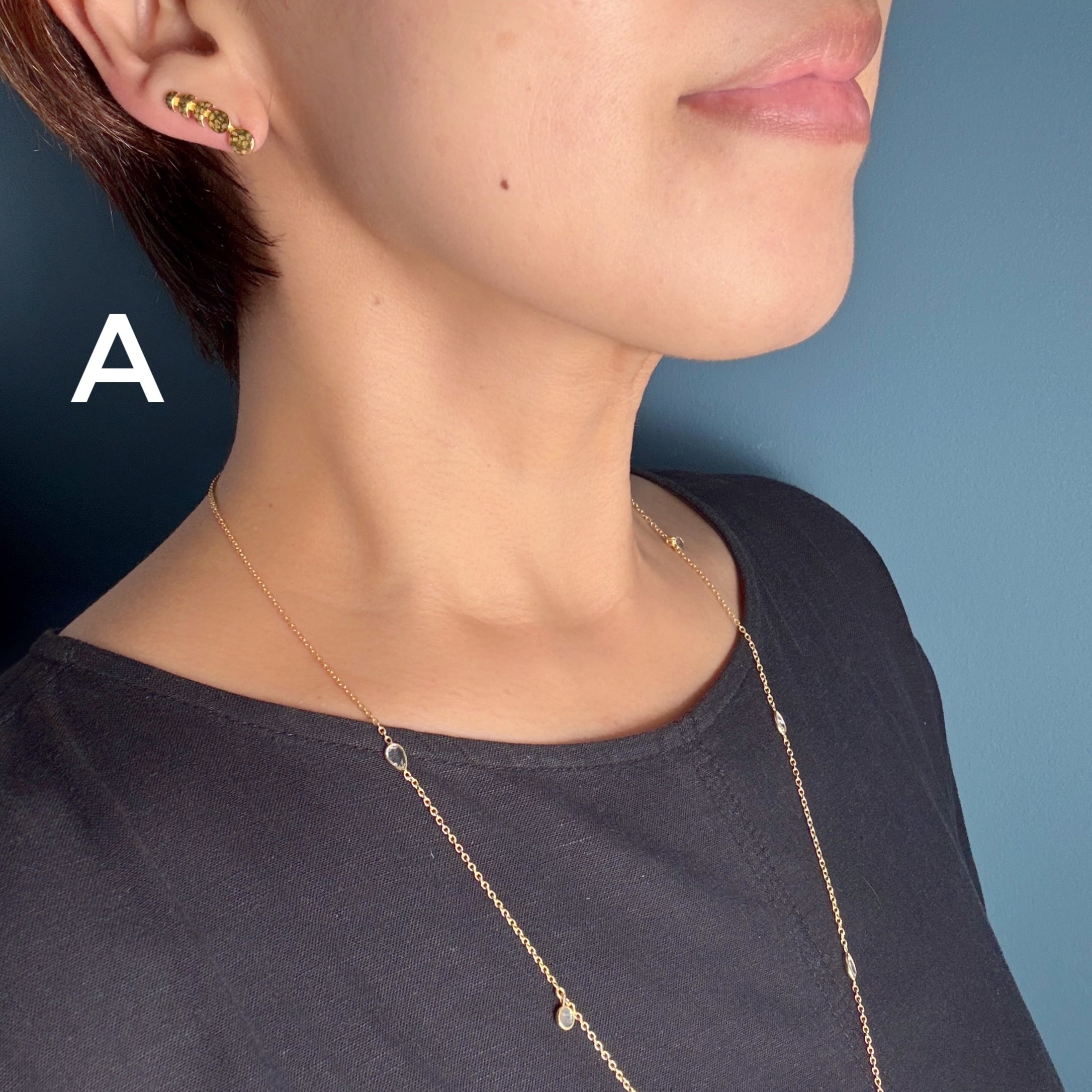 そのピアスを耳たぶに沿うようにスライドさせて使用します。新しい使い方ですよね!