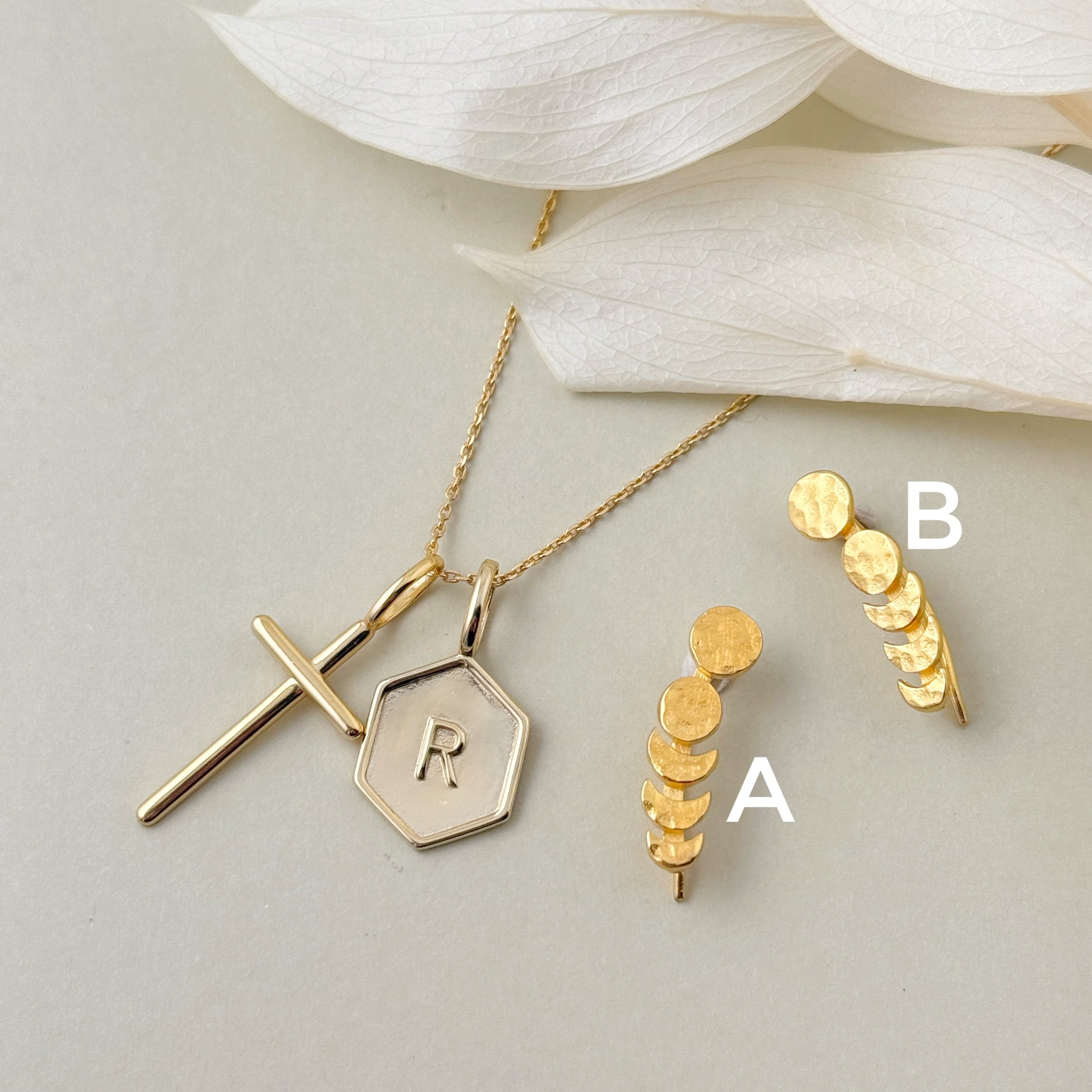 Gold Coatingされたお月さまの満ち欠けがデザインされてたピアスです。