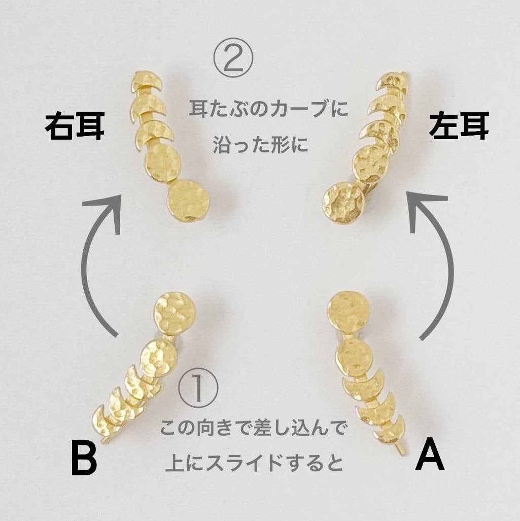 【片方販売】Gold Coating 月のみちかけ ピアス