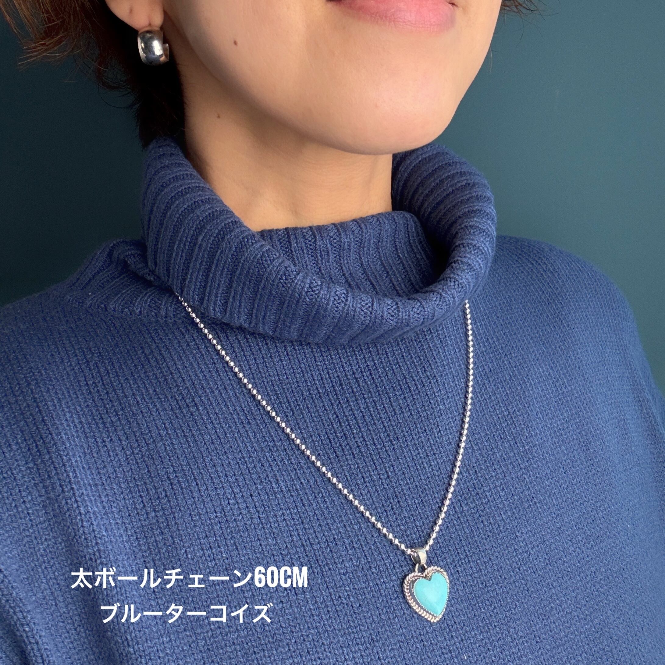 存在感のある太ボールチェーンにセットしました。チェーンだけでもサマになるネックレスです。