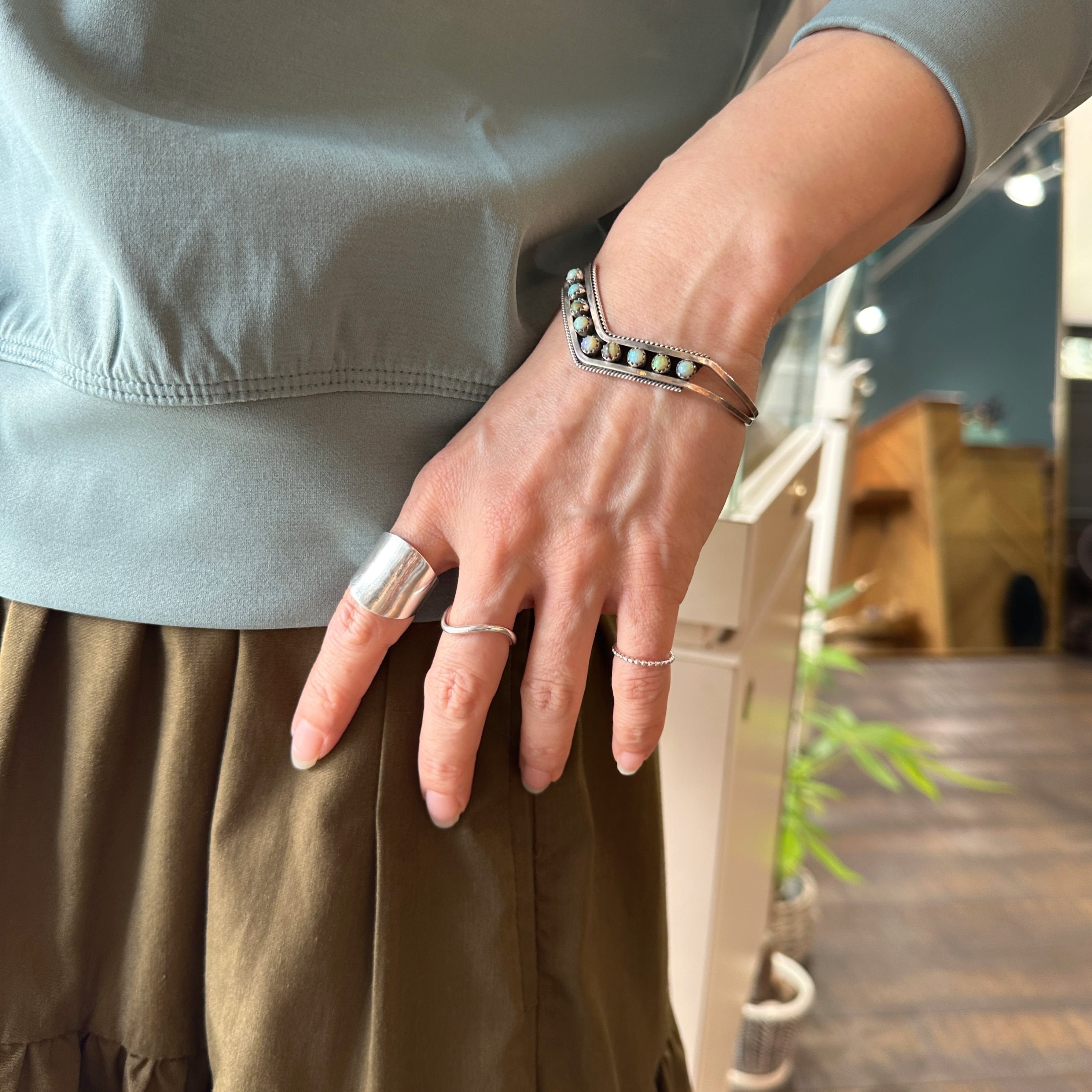 インディアンジュエリーでも、とても女性らしくも楽しめるデザインです。
