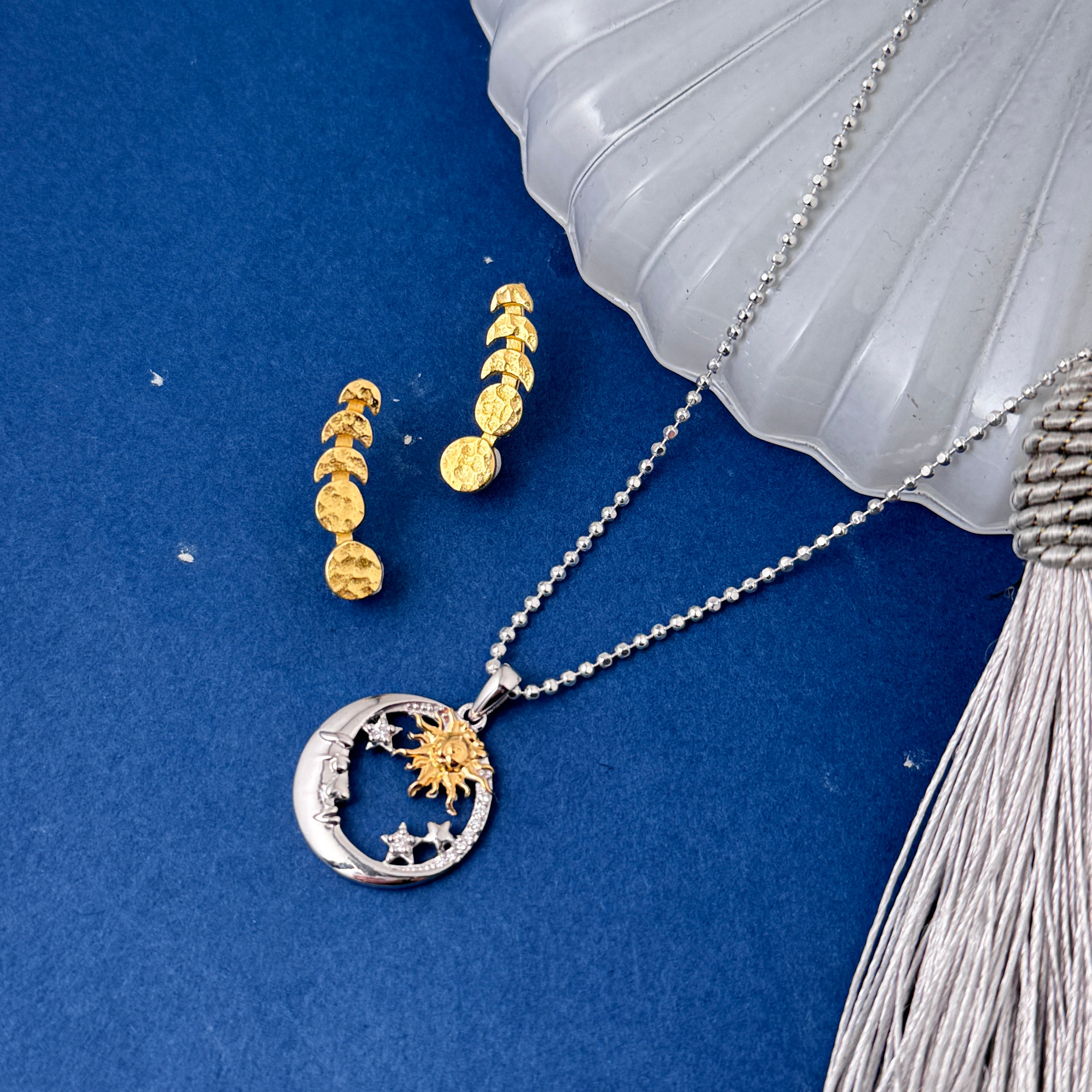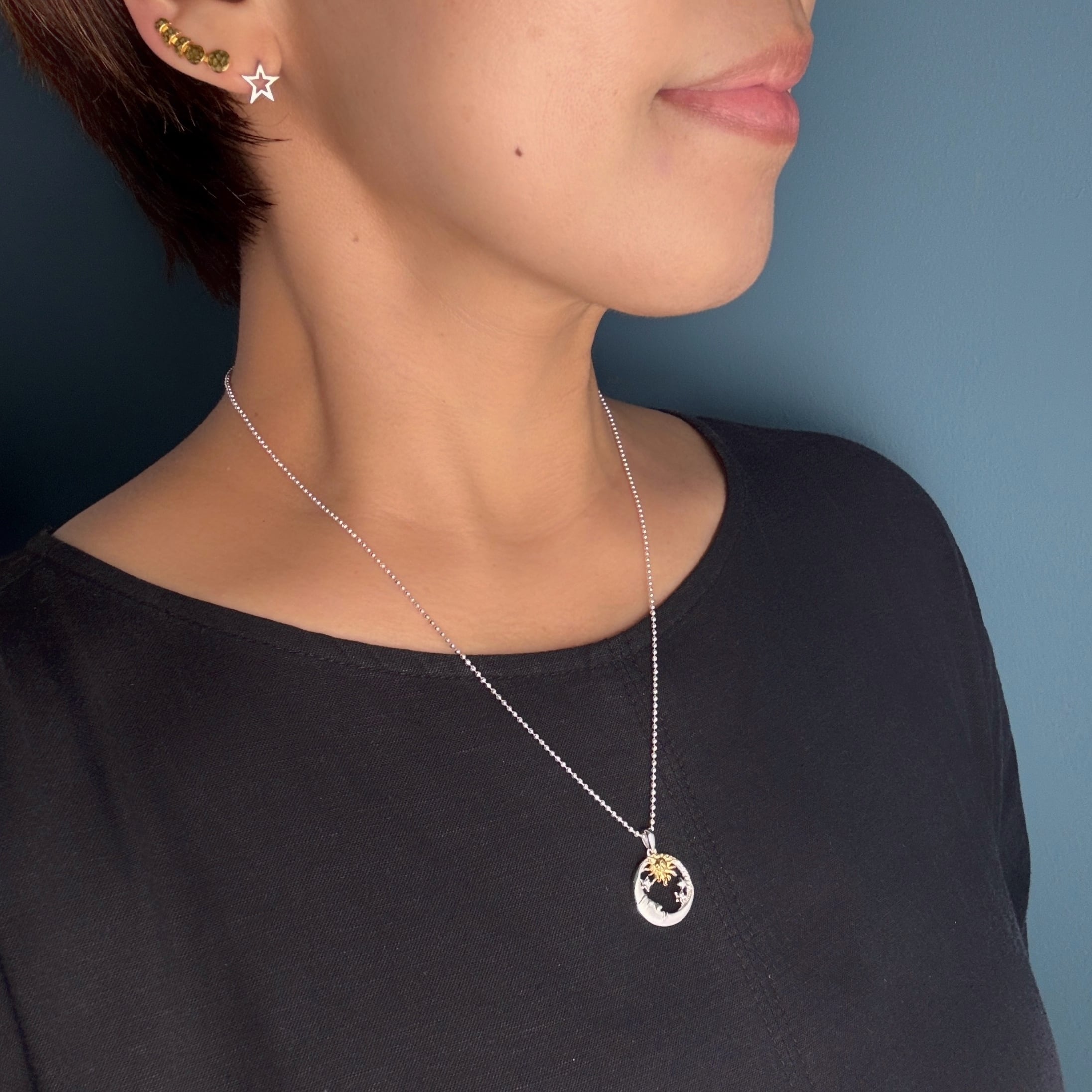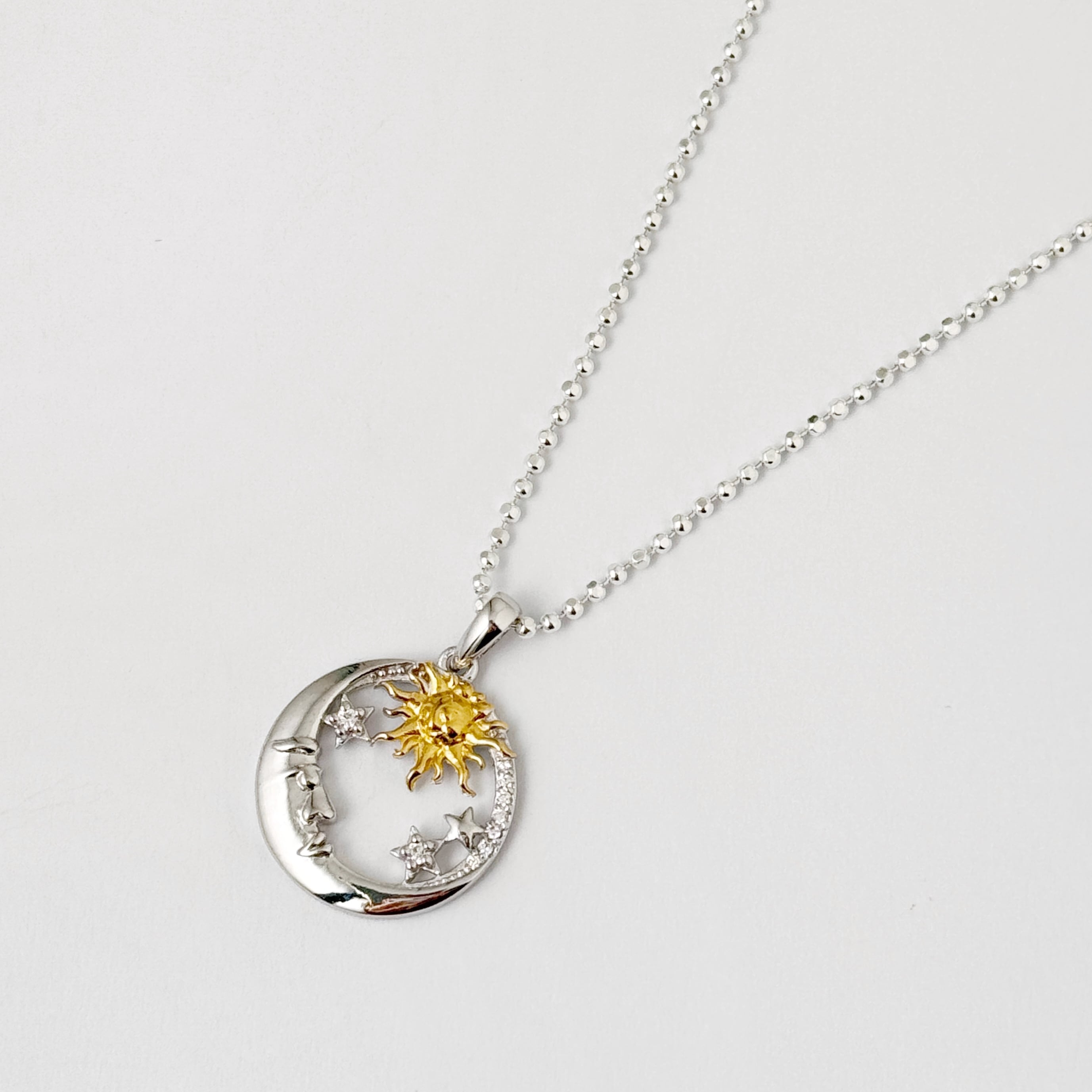New Sun and Moon ゴールド & シルバー mix ペンダント ネックレス 月星