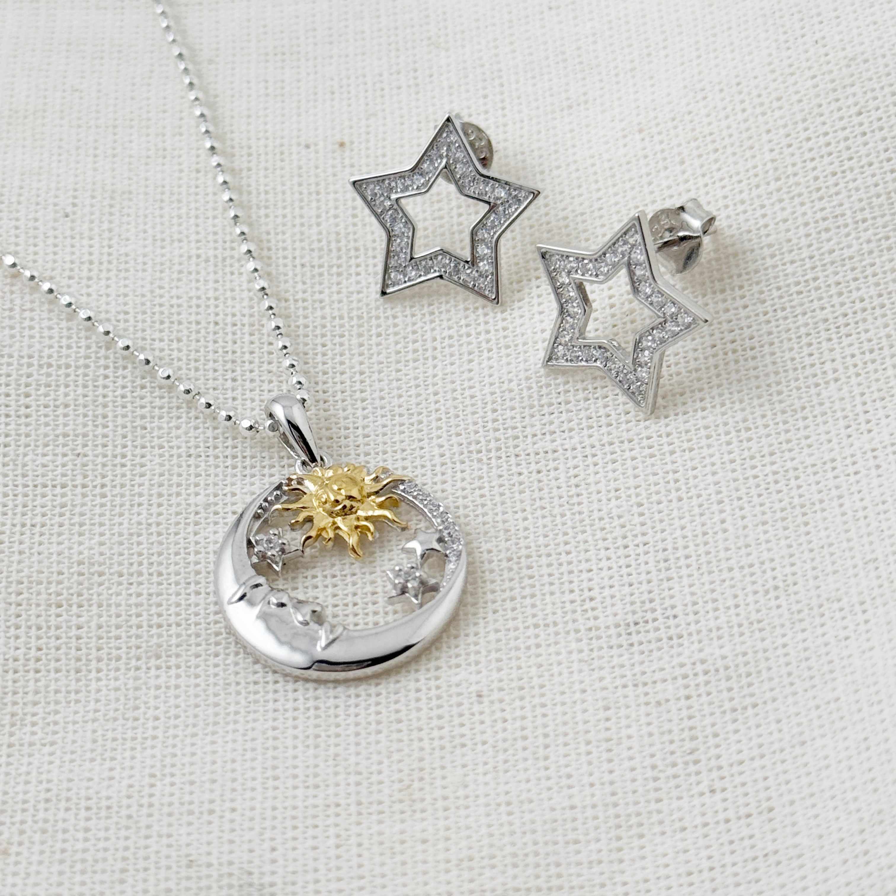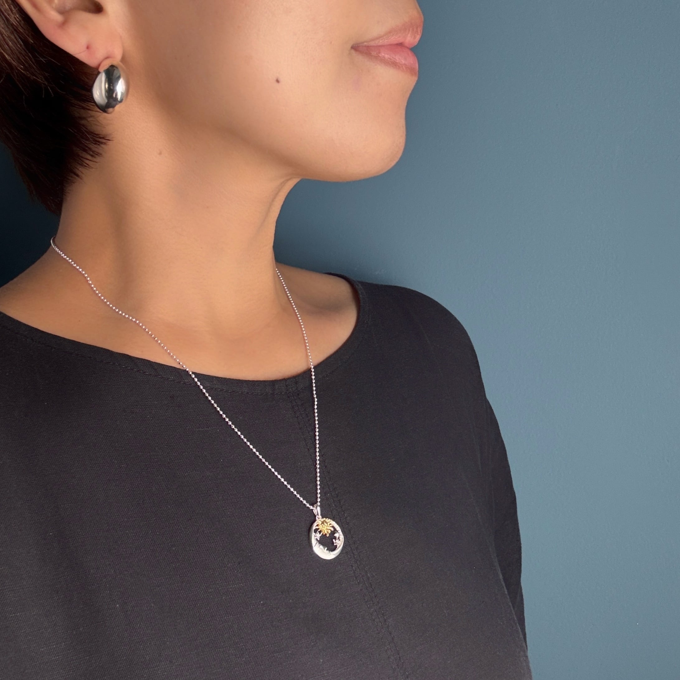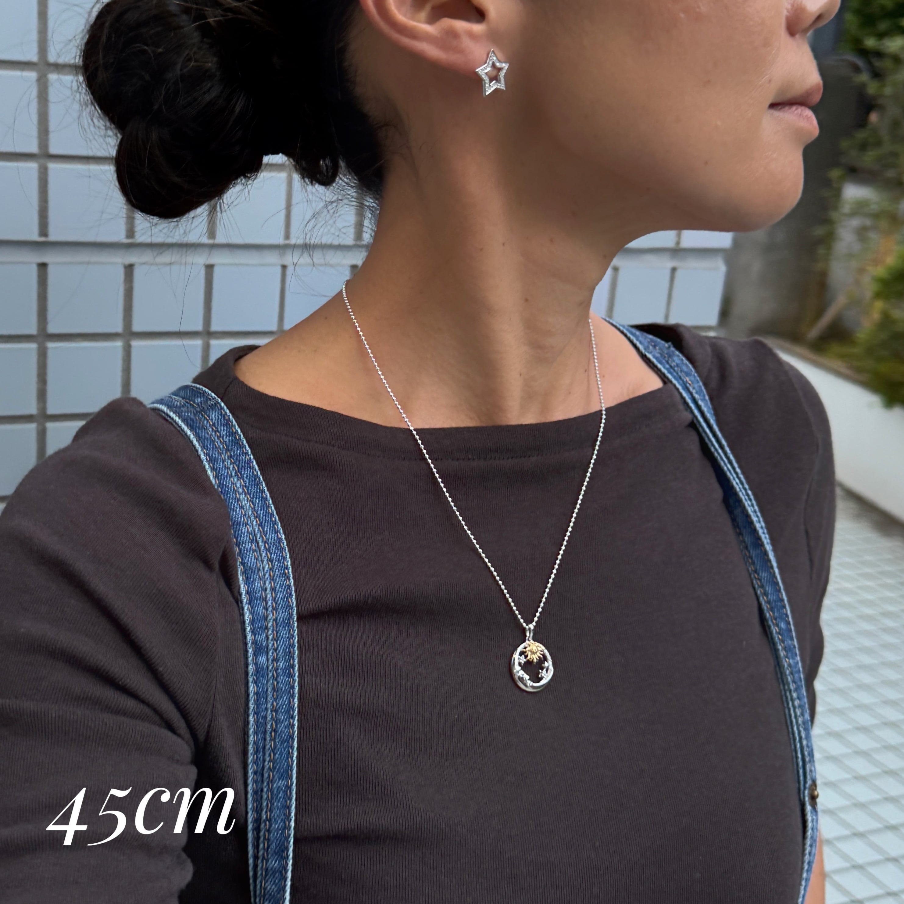 New Sun and Moon ゴールド & シルバー mix ペンダント ネックレス 月星