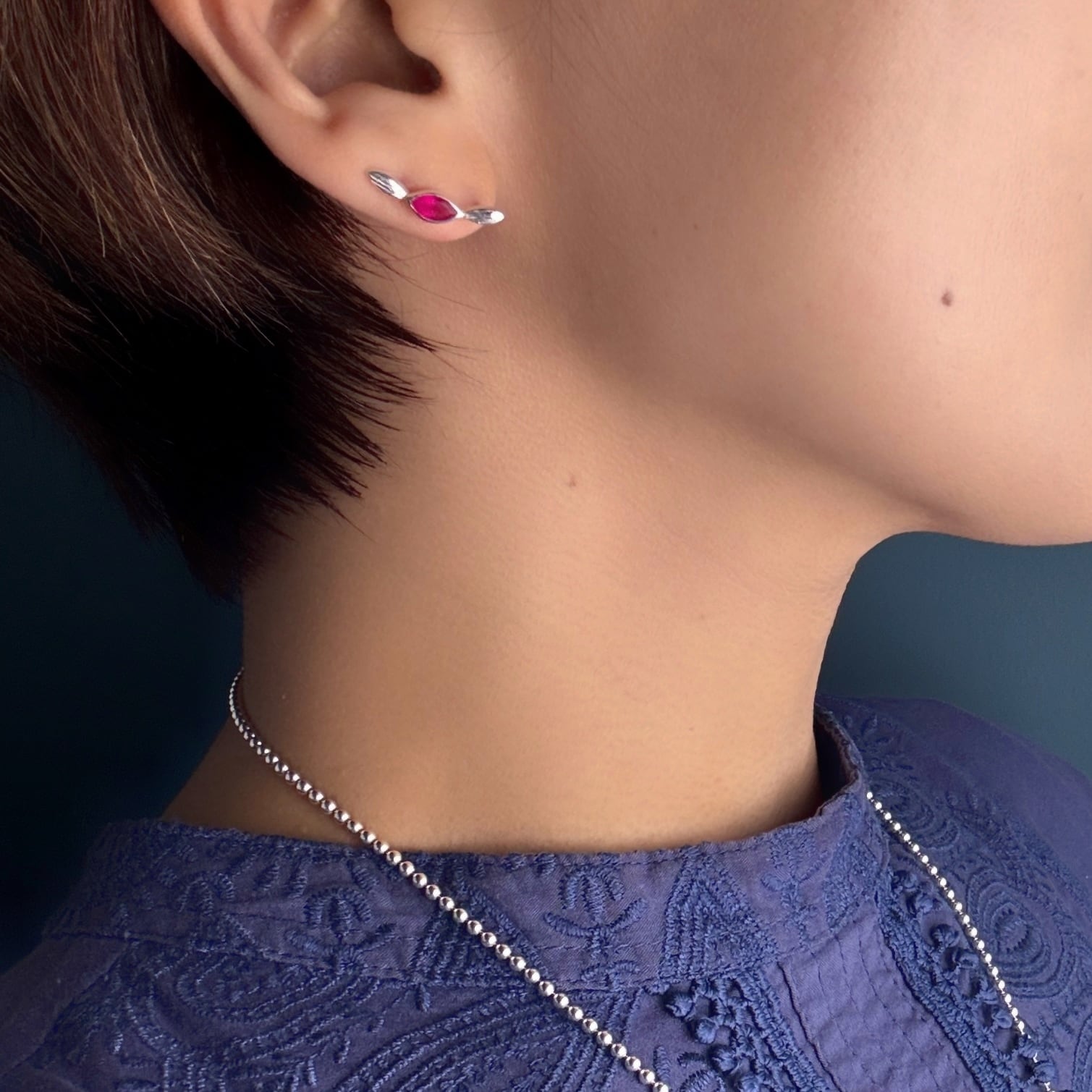 ピアスホールから上に向けて沿わせたり、
