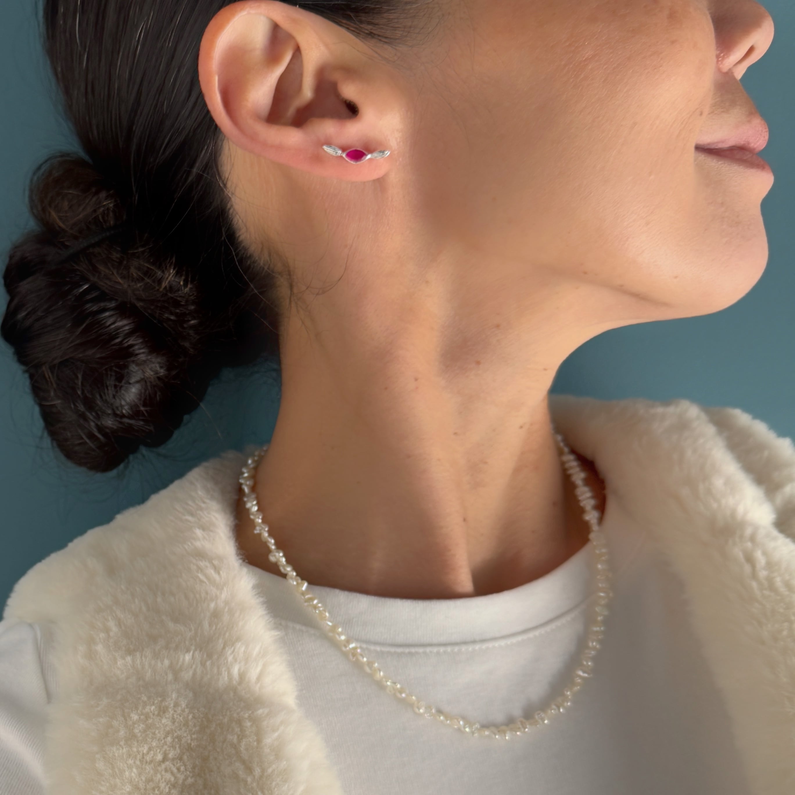 そのピアスを耳たぶに沿うようにスライドさせて使用します。新しい使い方ですよね!