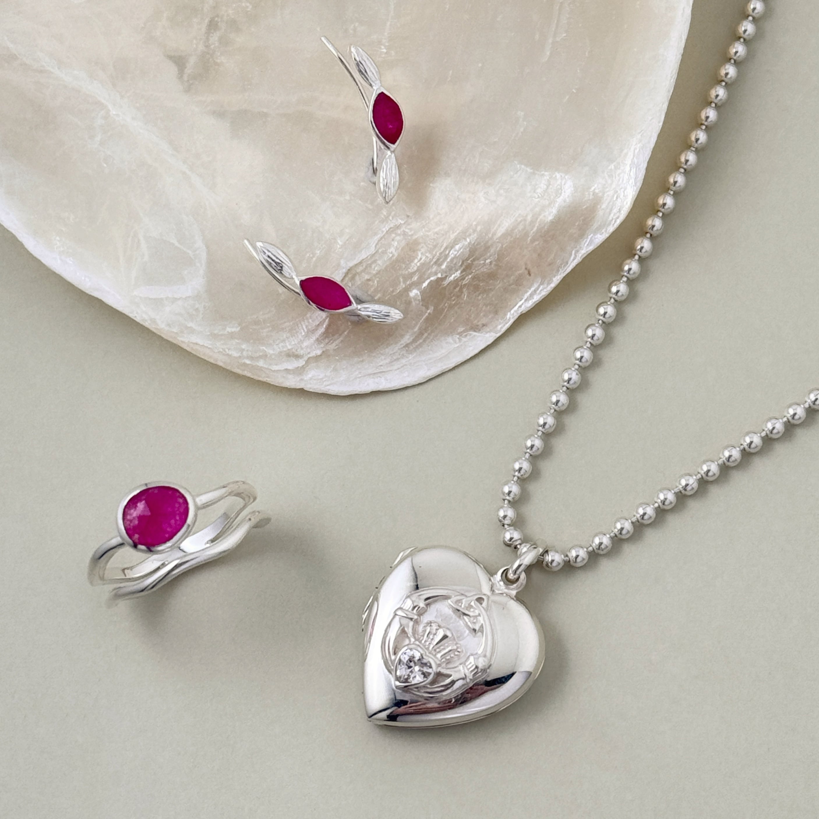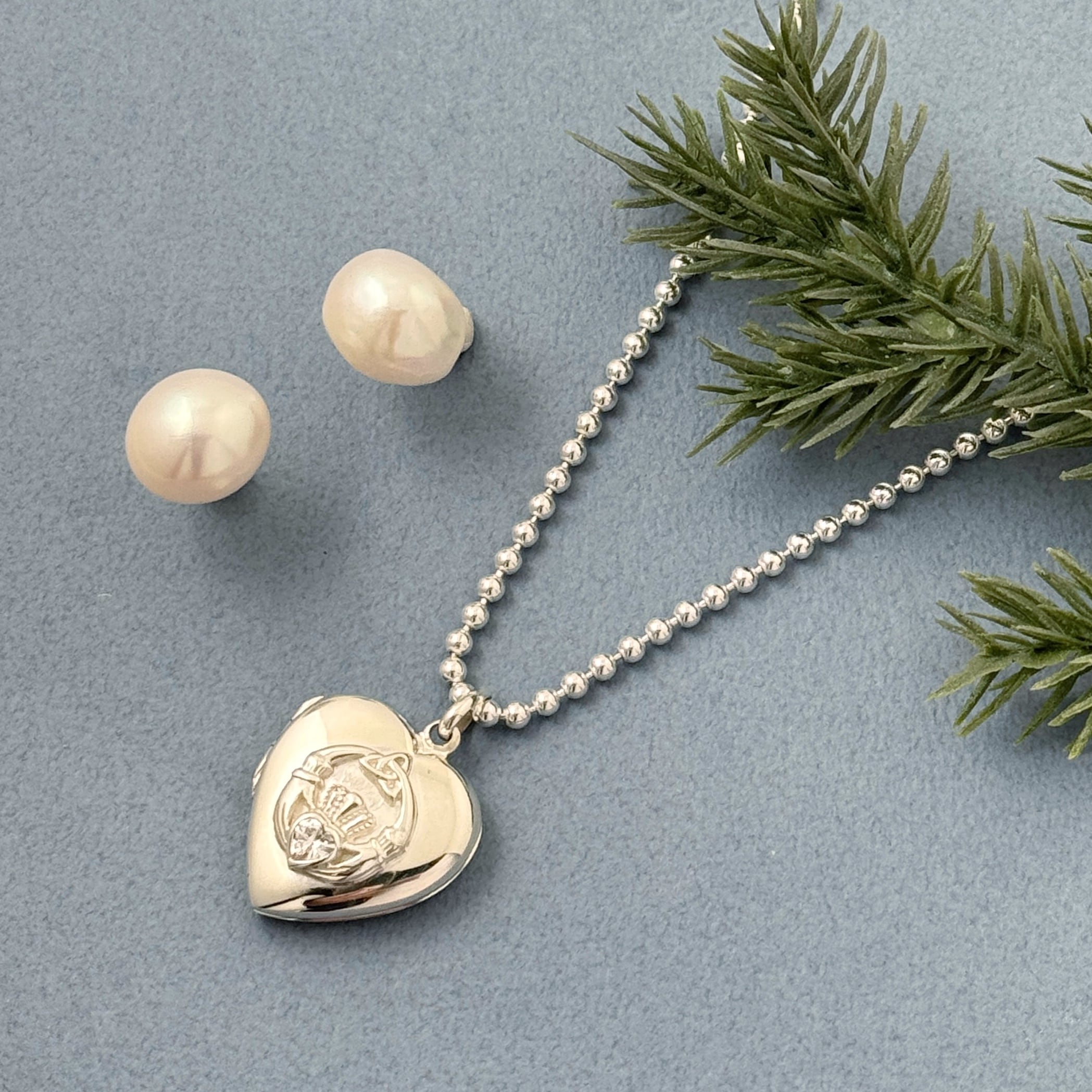 ハートにクラダモチーフが施されているロケットペンダントです。