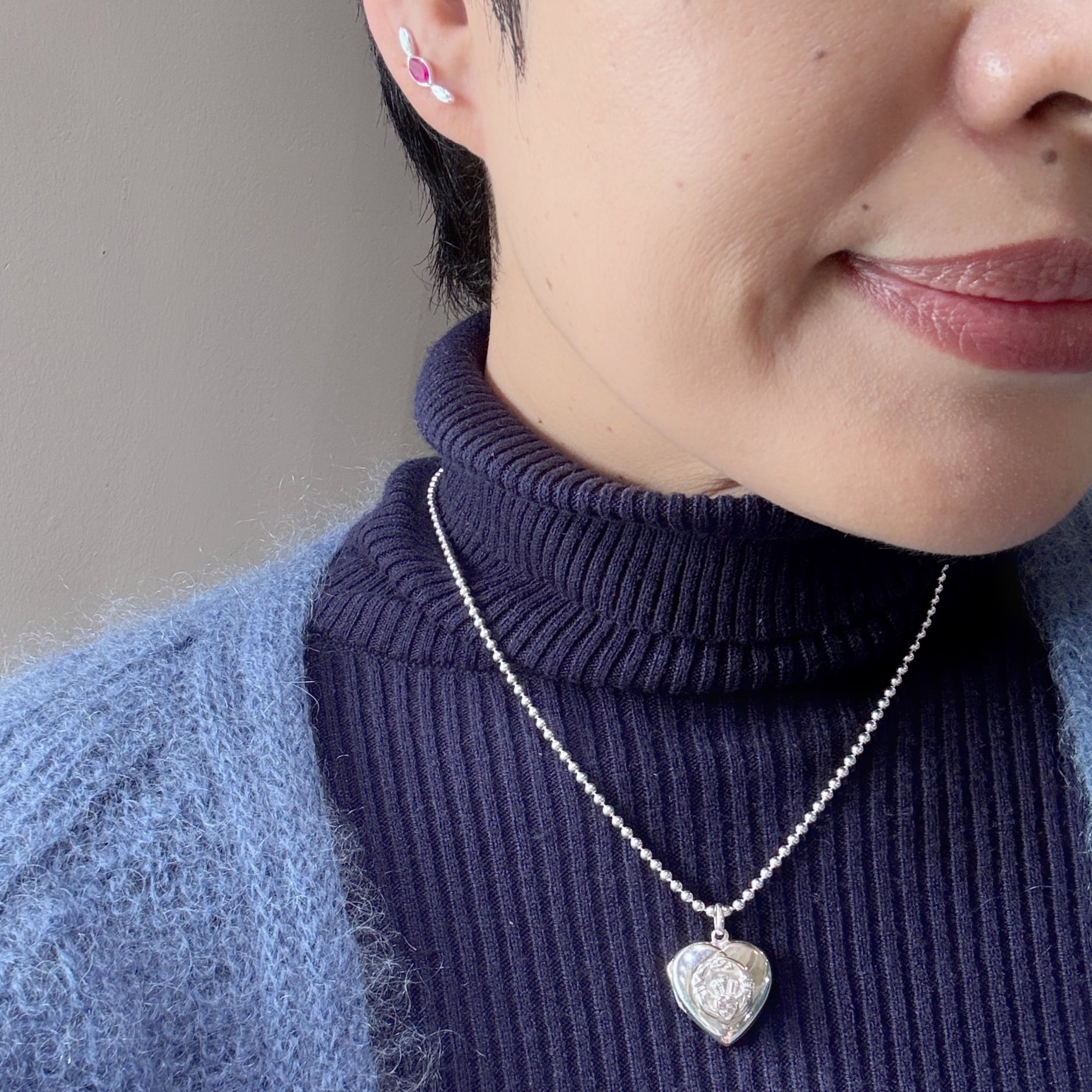 ハート型のロケットに写真や香り、お薬を入れて頂けます。