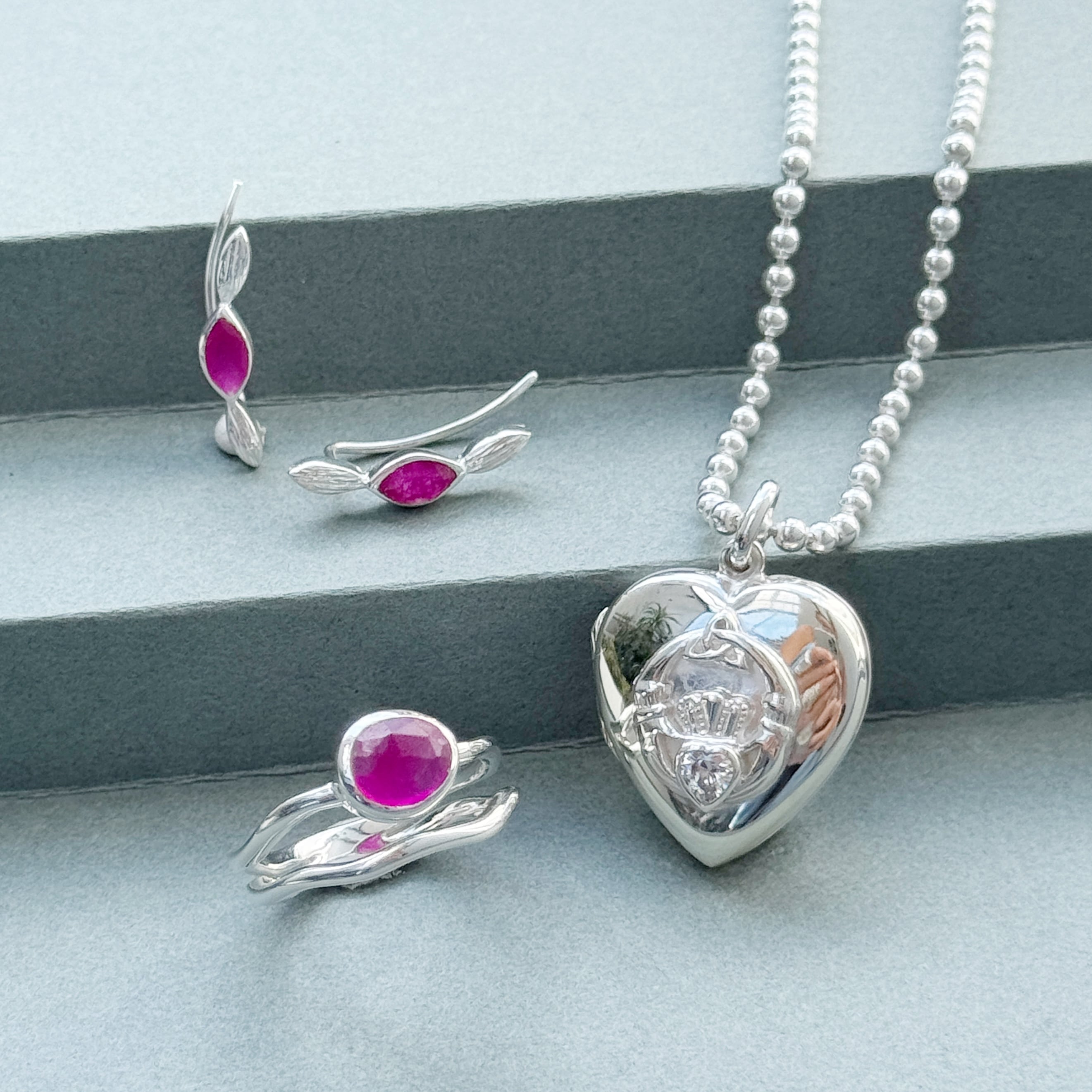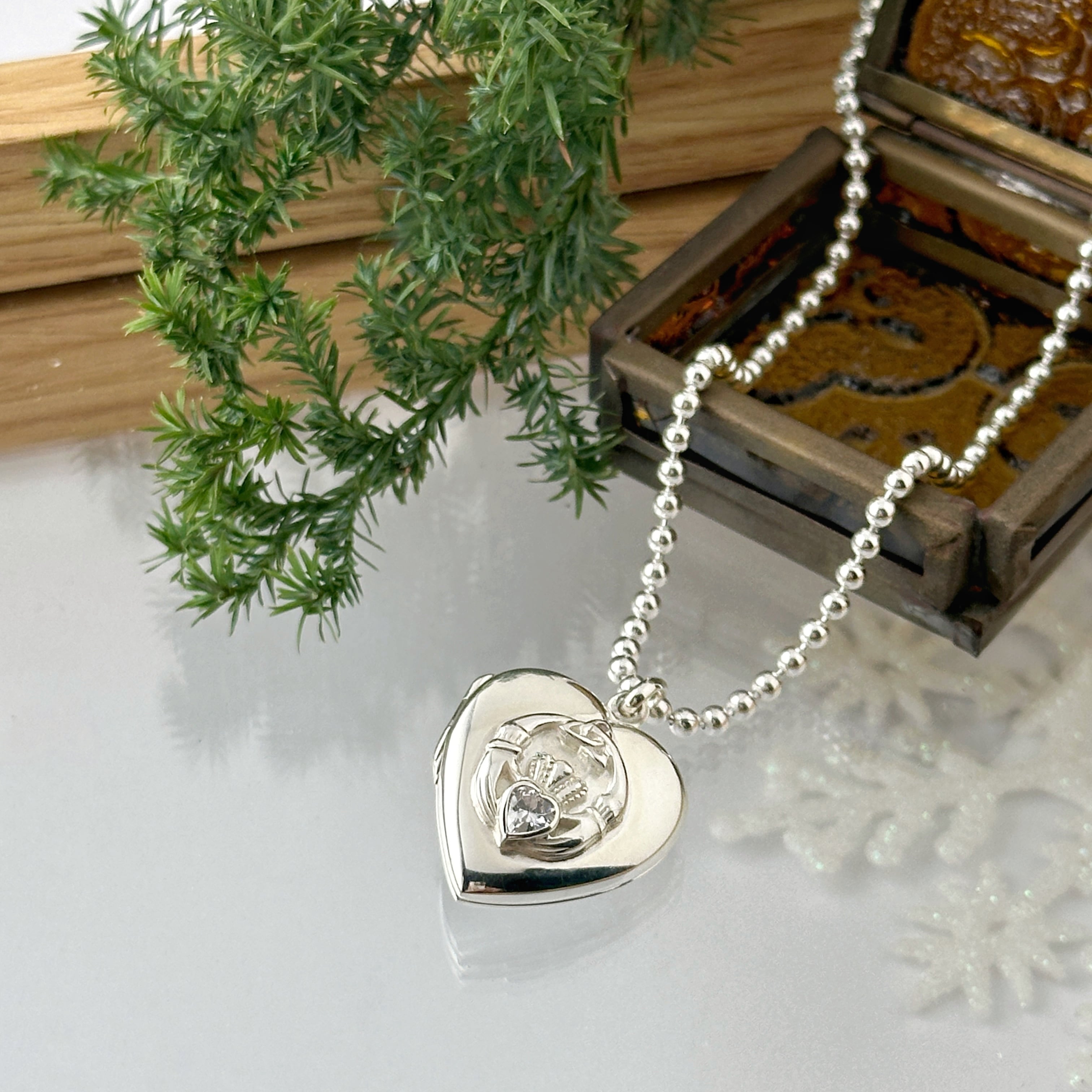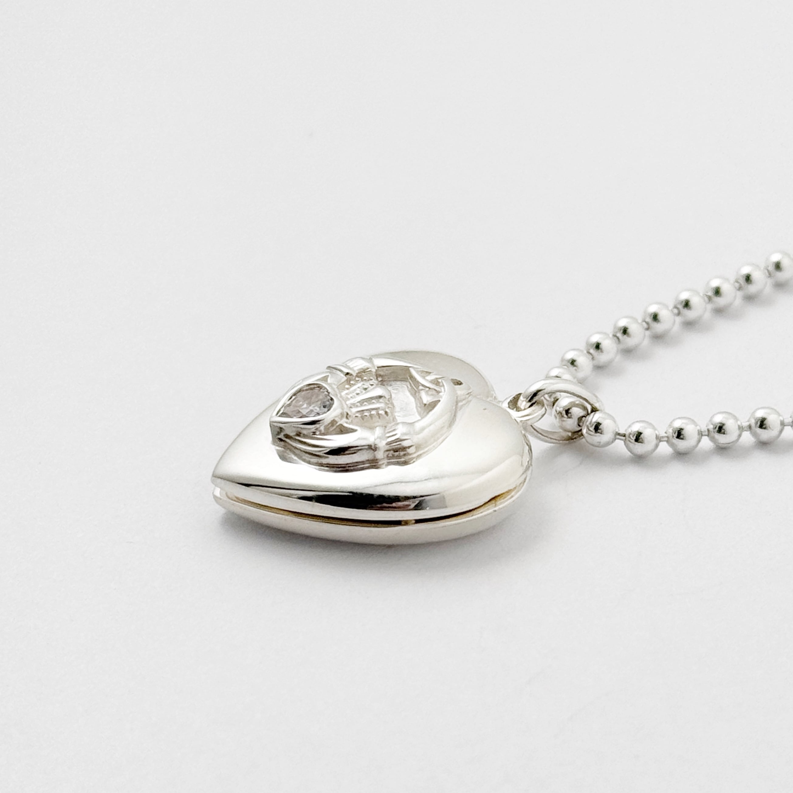 ジルコニア クラダ ハート ロケット ペンダント (チェーンオプション)