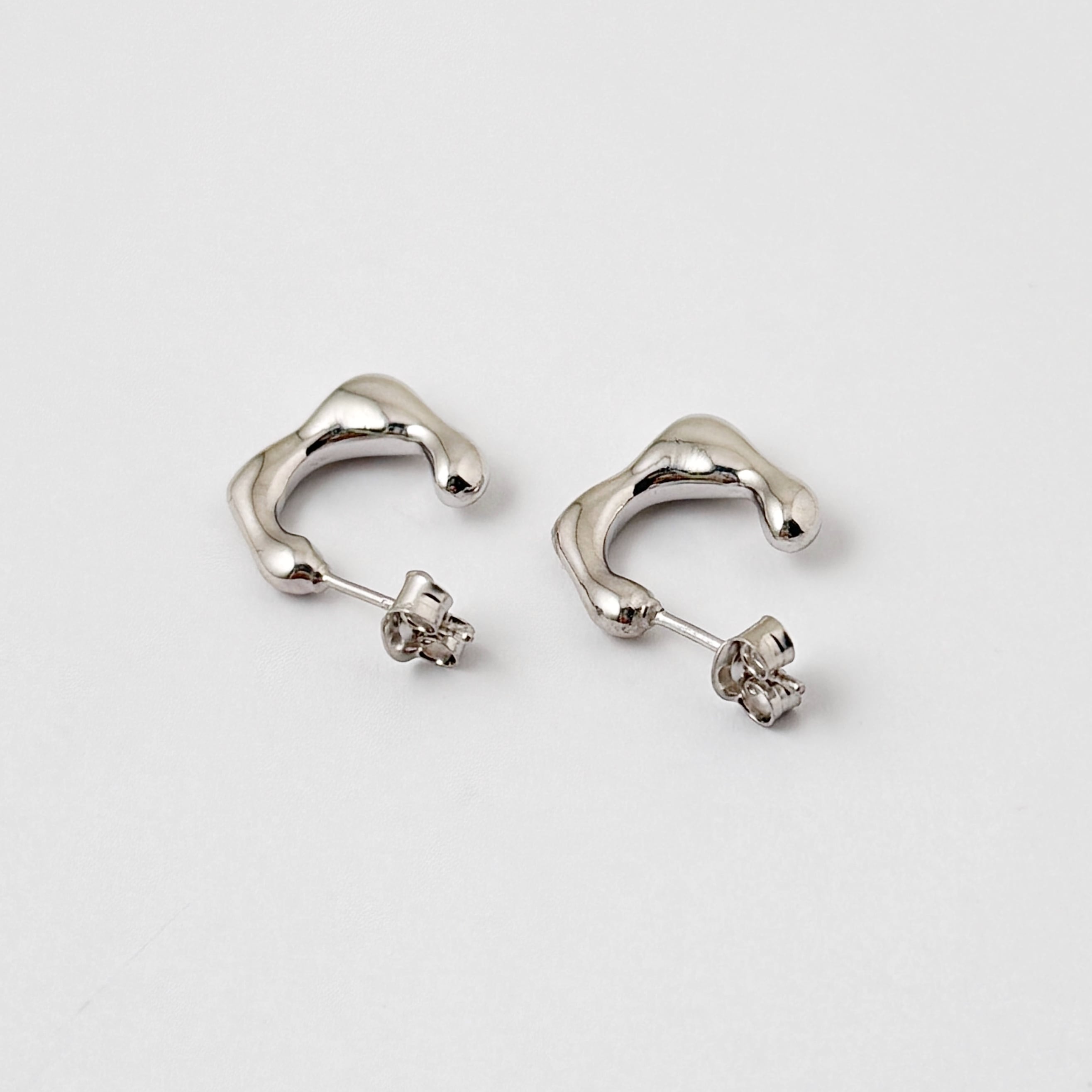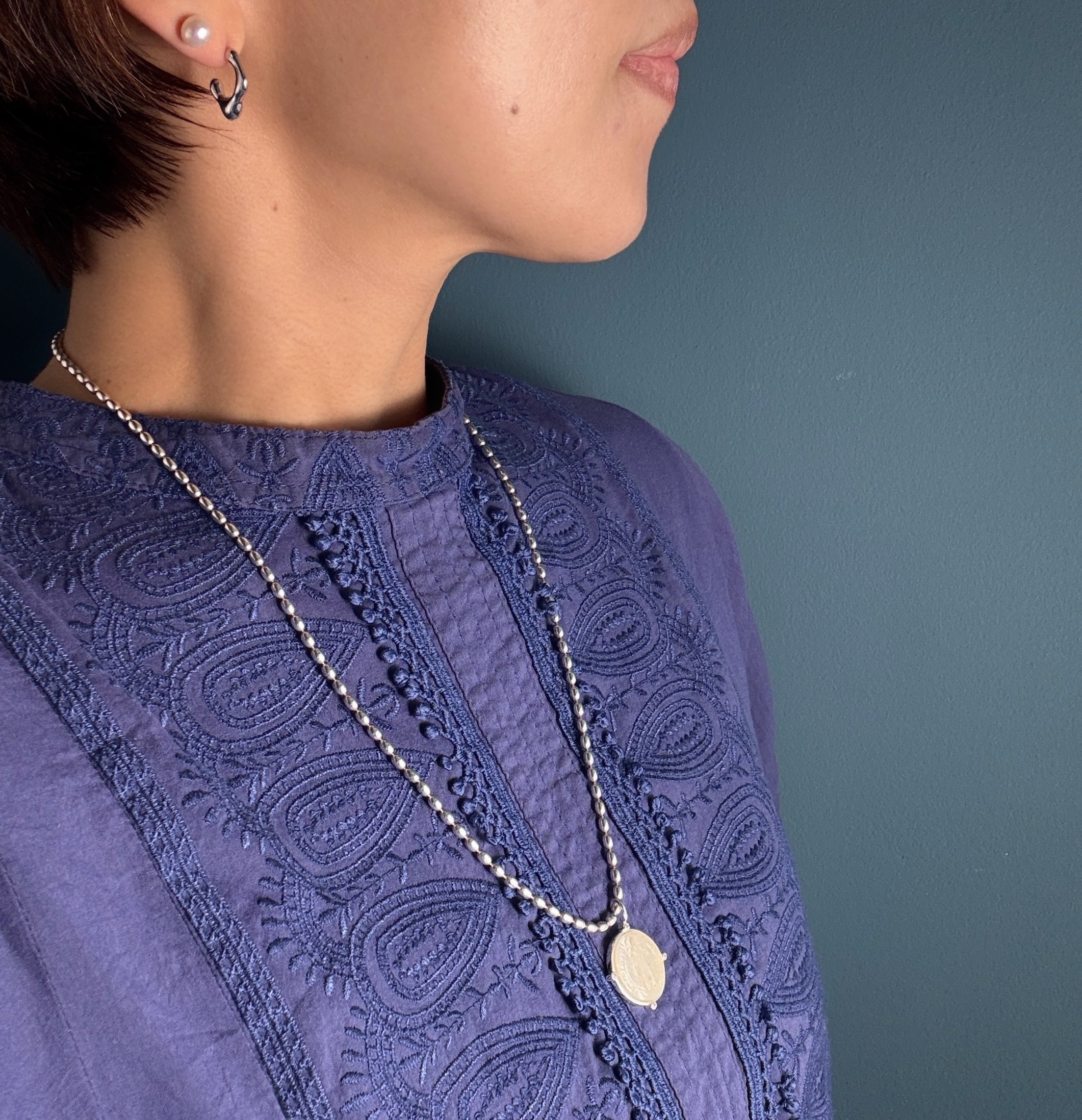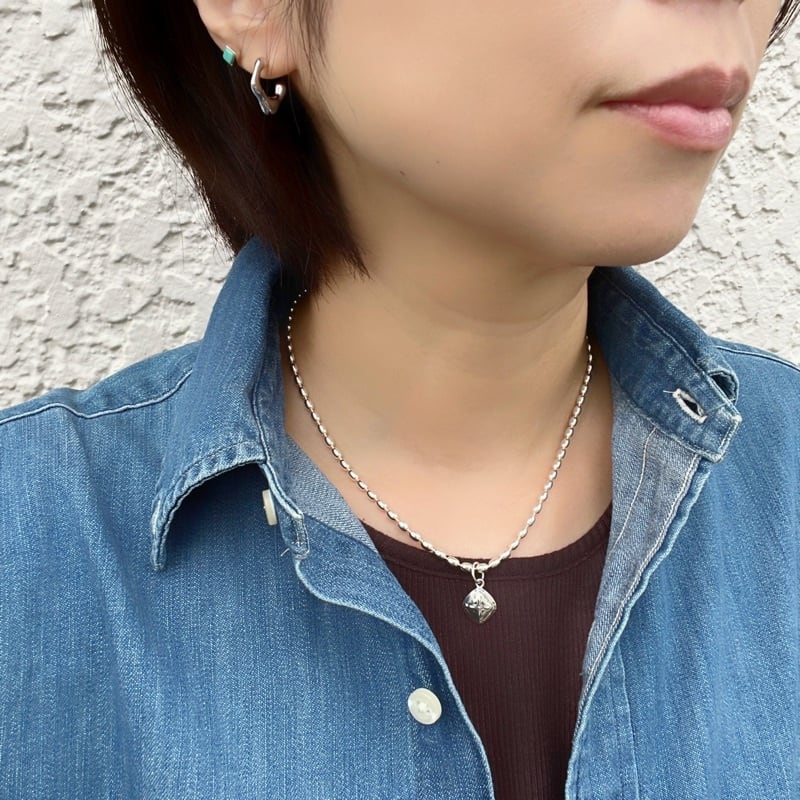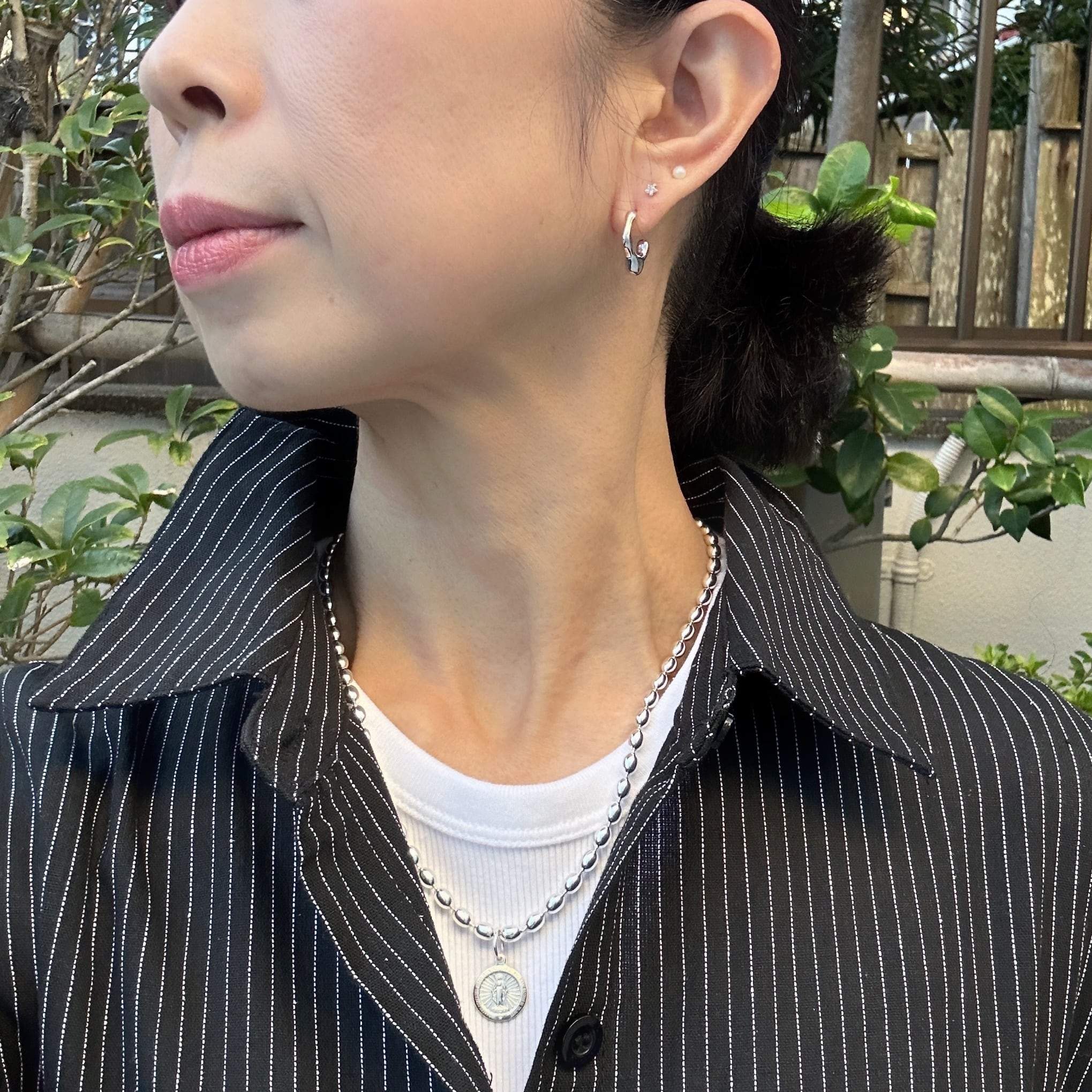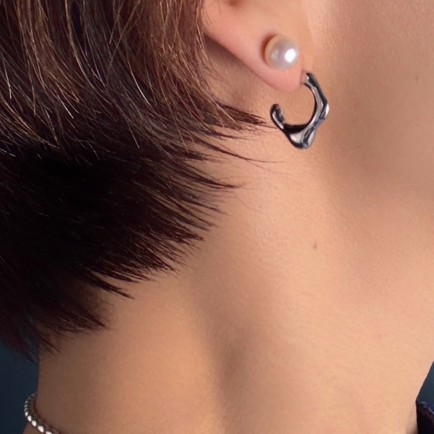 形としては変化球のある独特な形で、このサイズ感でシンプルかつ個性的なピアスです。