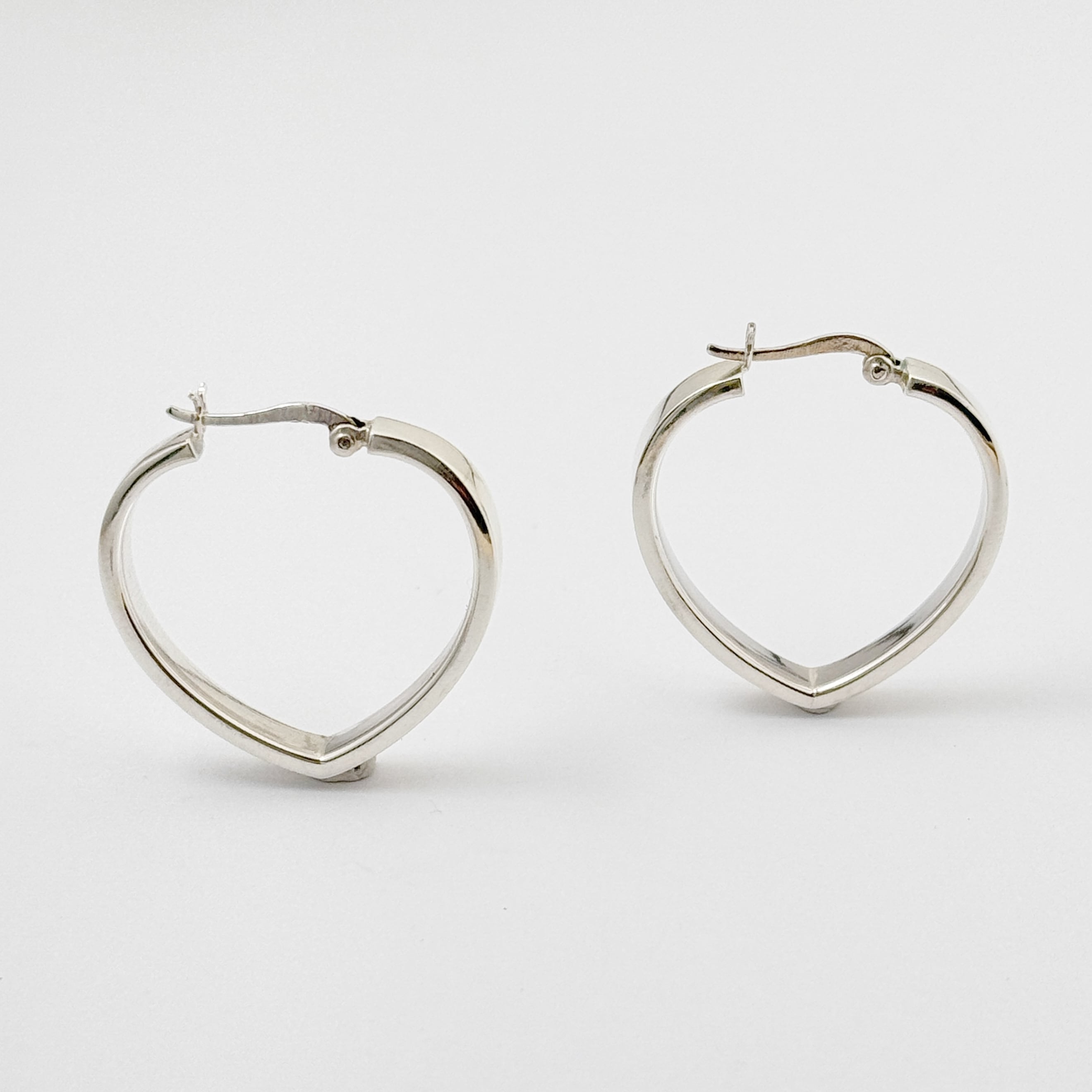 ボリュームのある太さの、やんわーりハート型のフープピアスです。