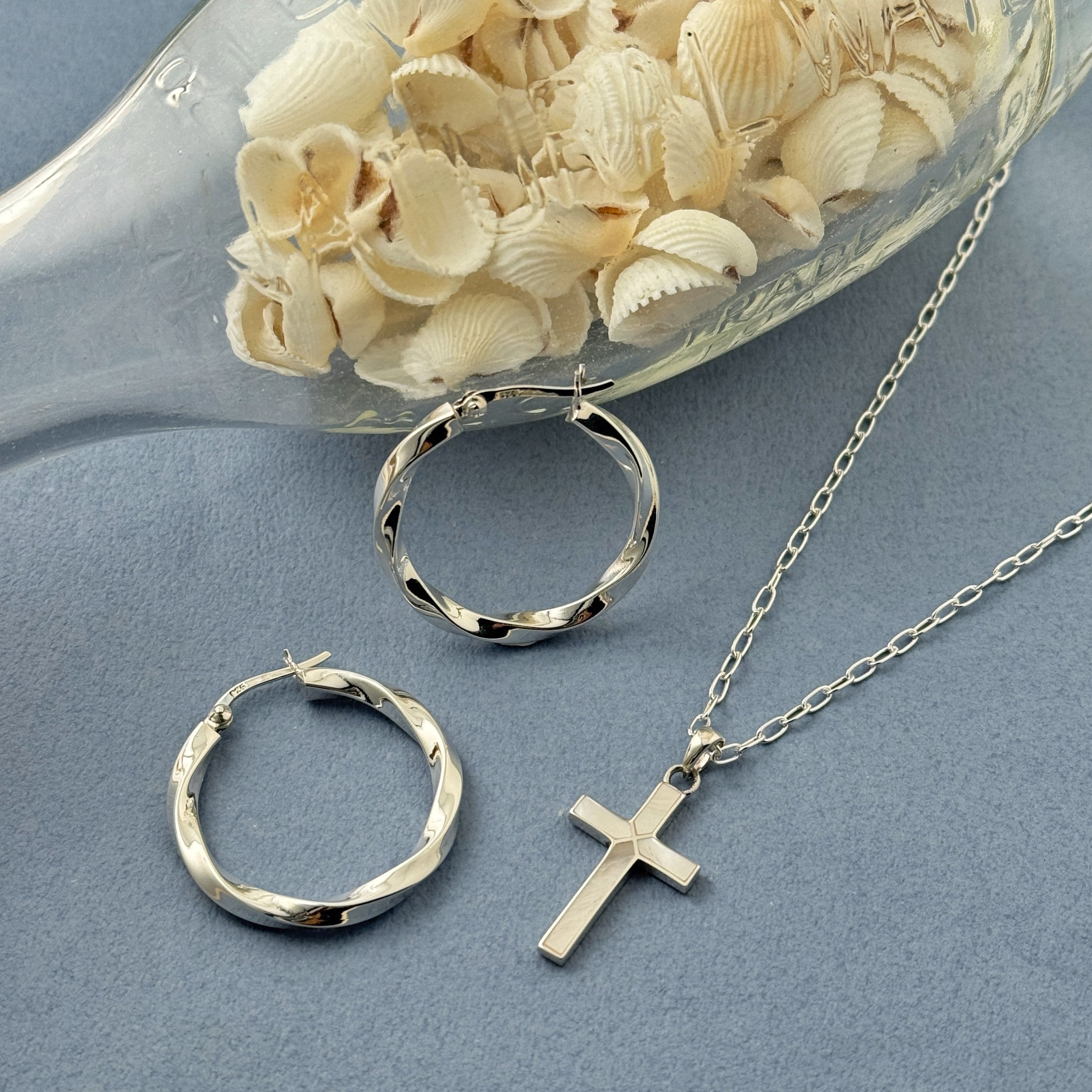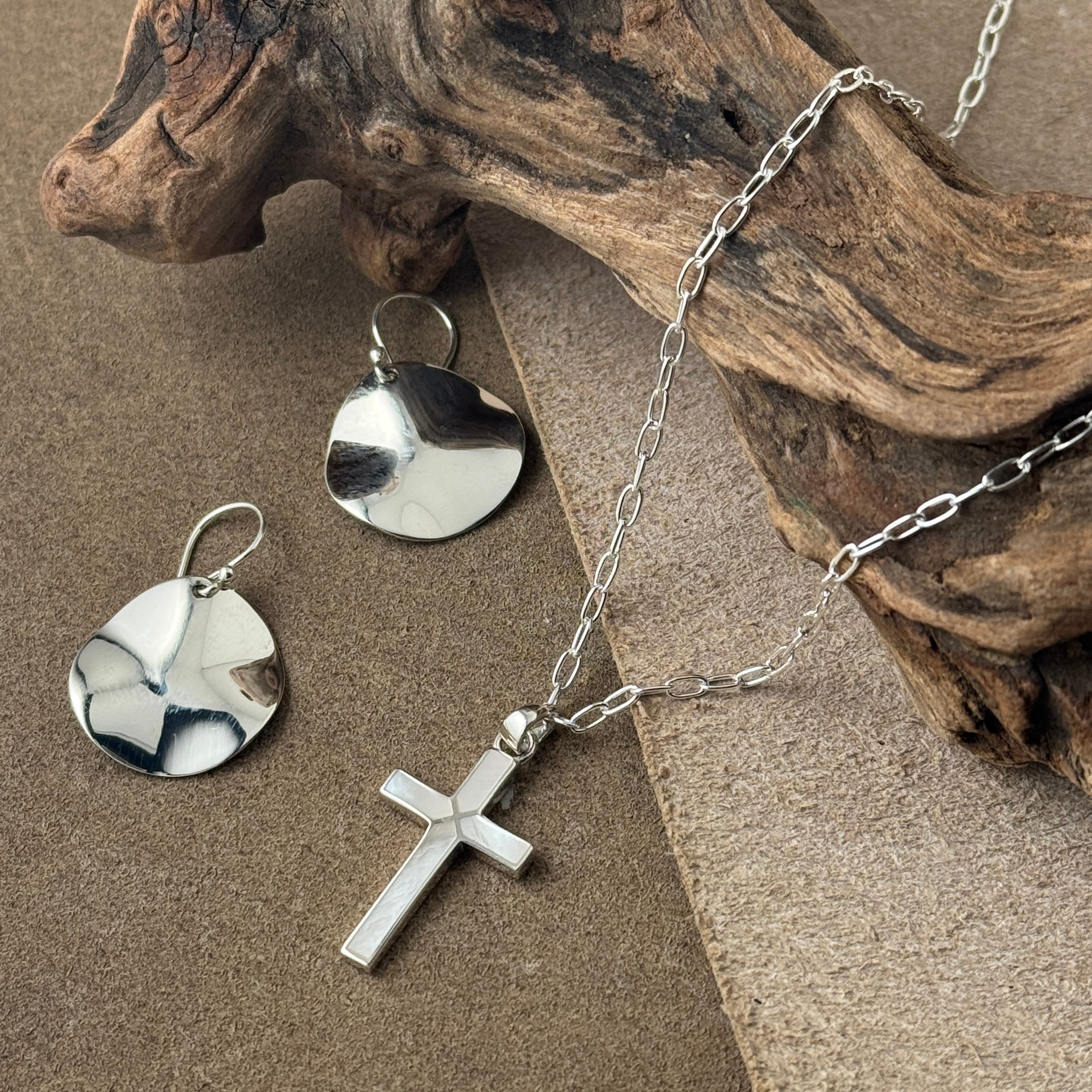 こちらは白蝶貝を贅沢に使用したクロスペンダント。