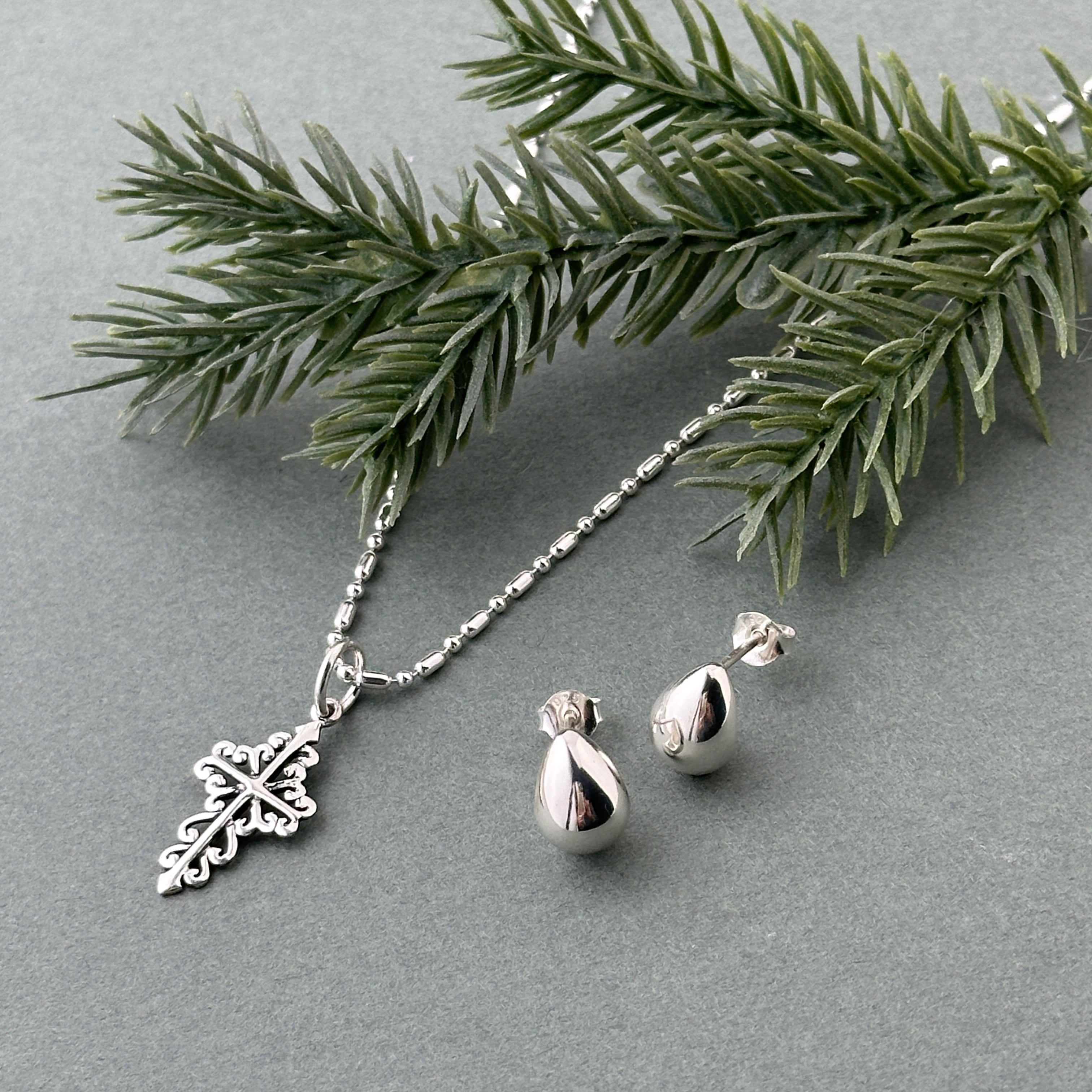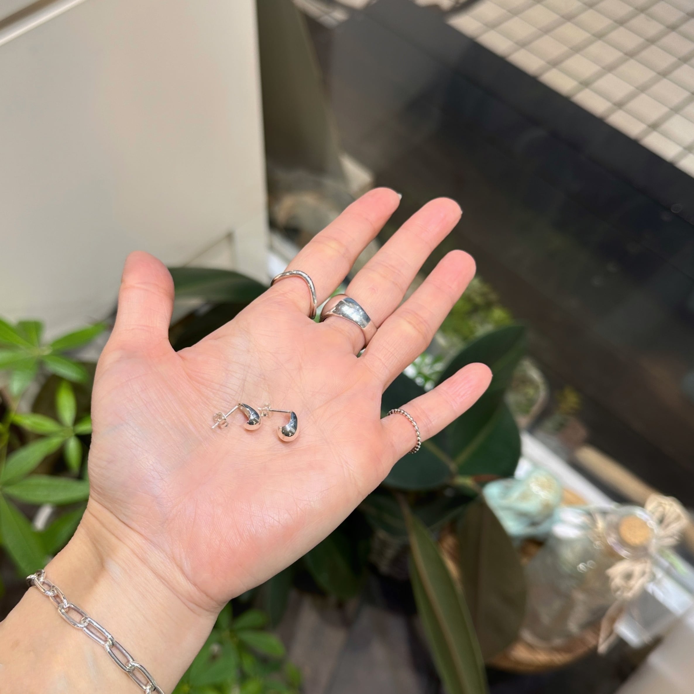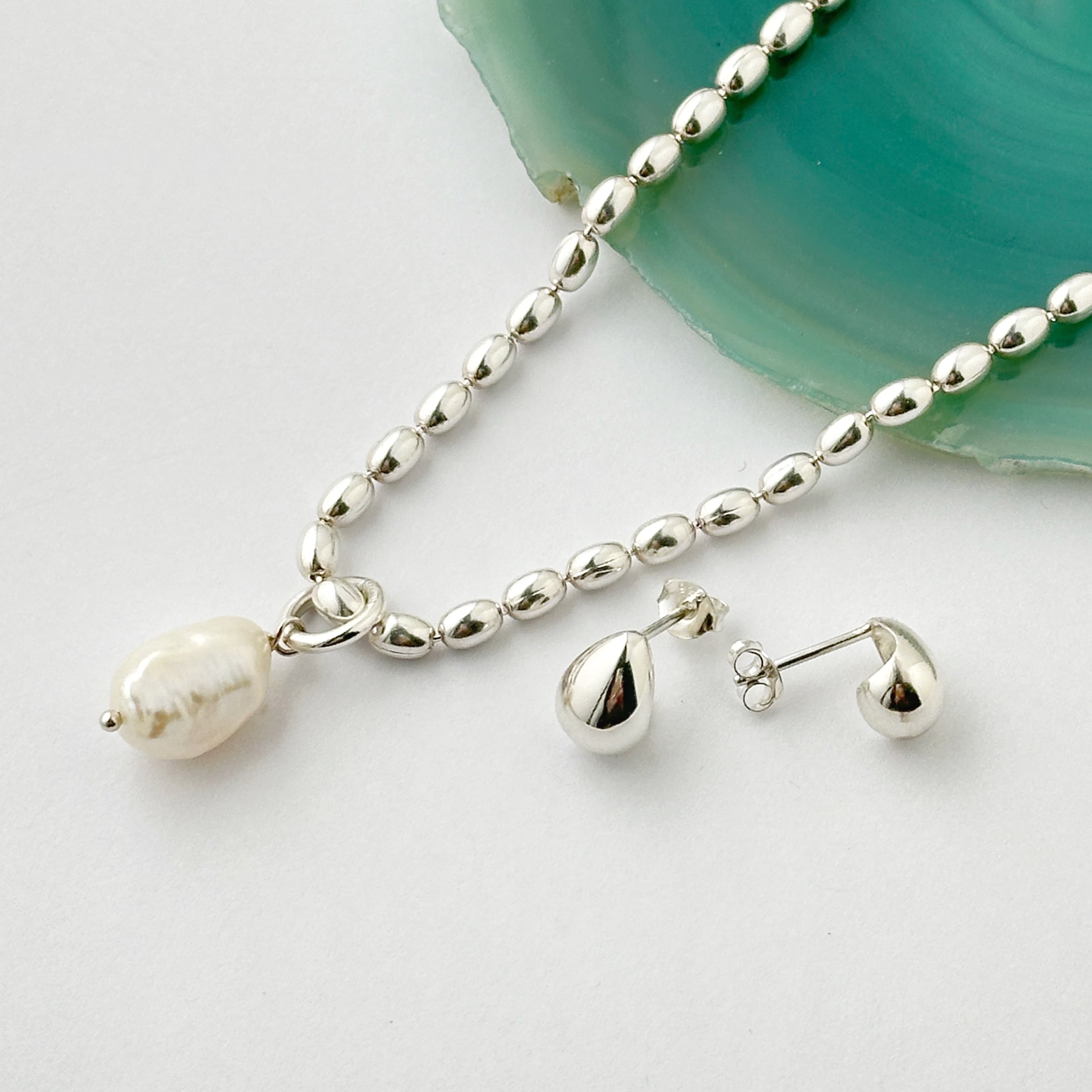 シルバーと天然石の組み合わせですっきりとした印象に、