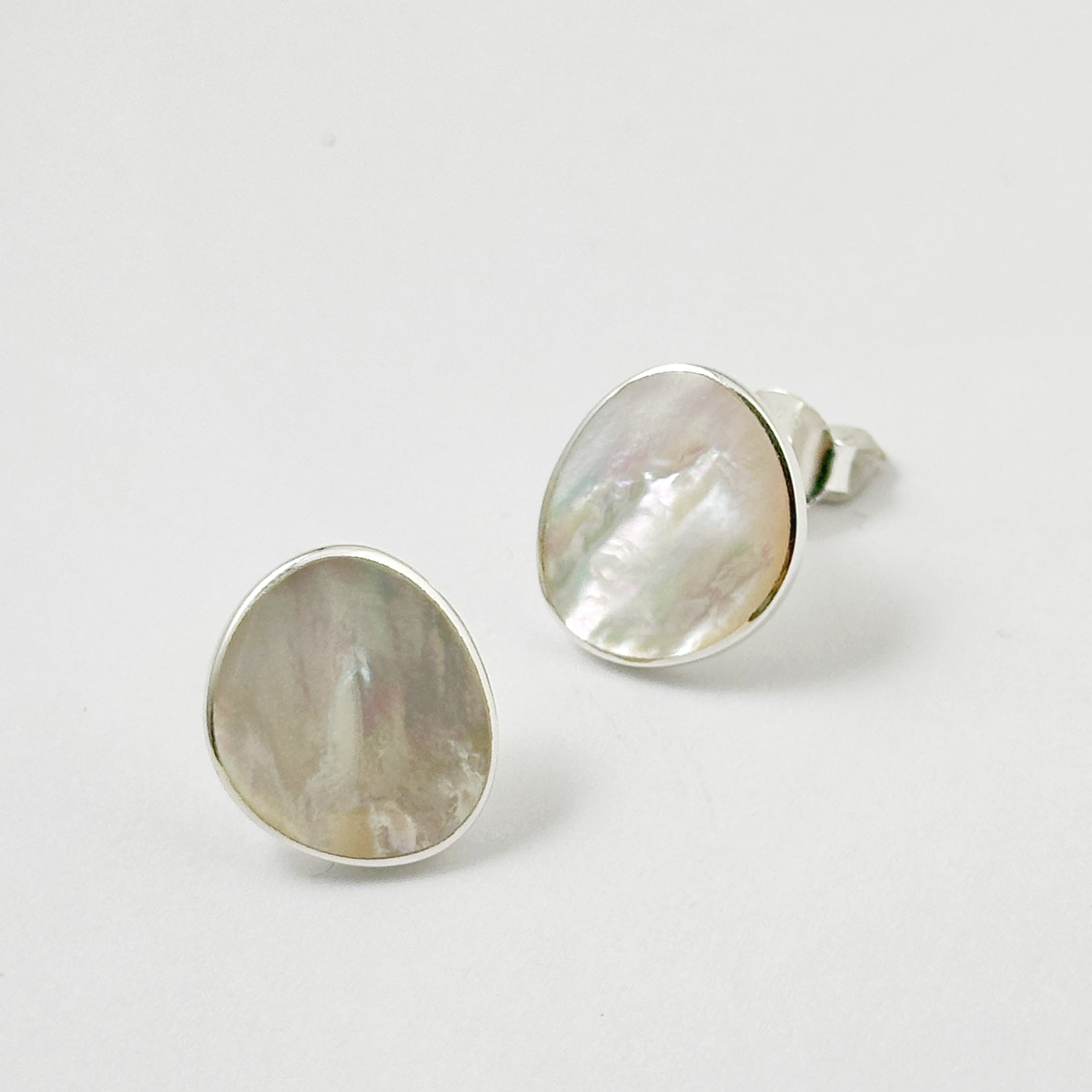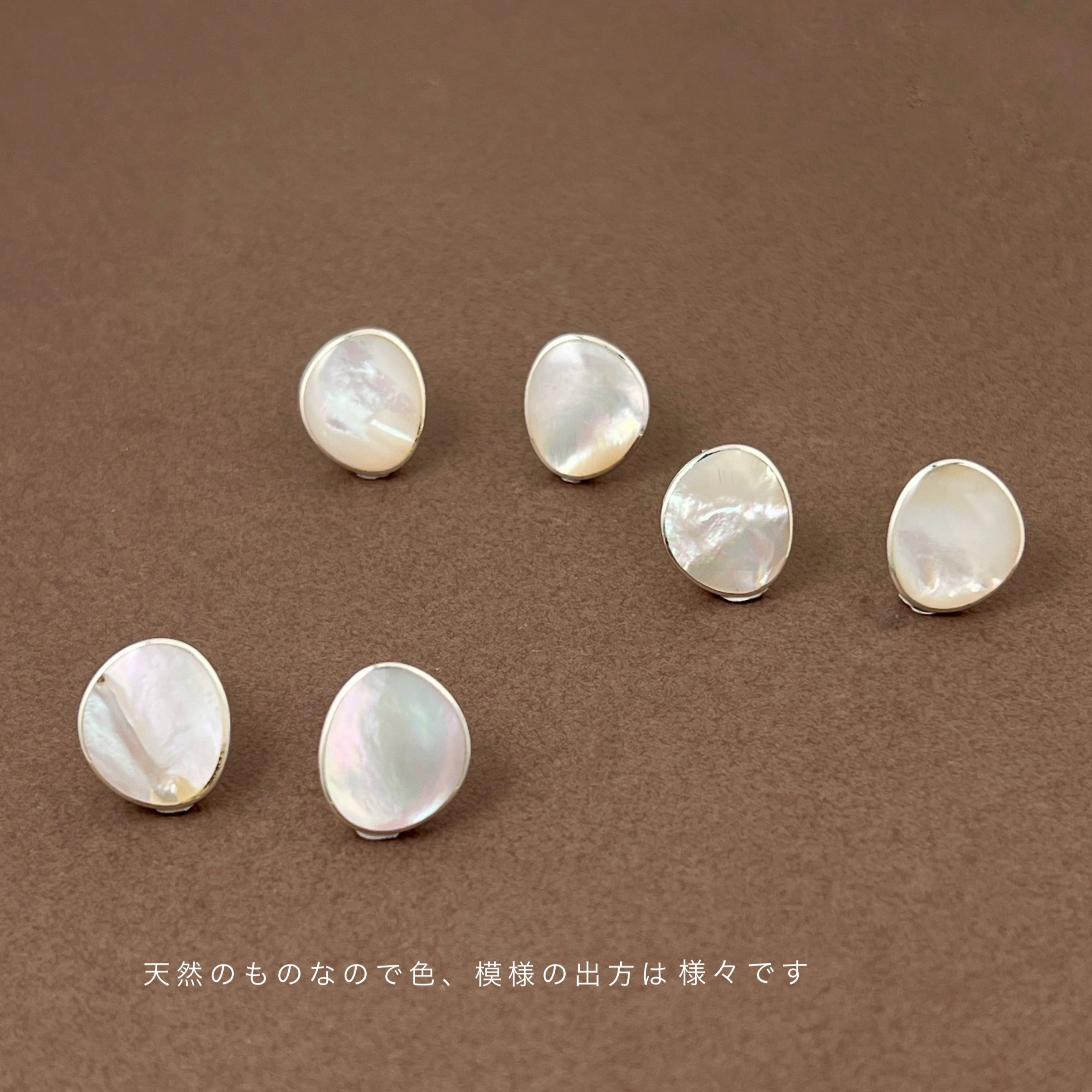 白蝶貝のいびつなオーバル型スタッドピアスです。