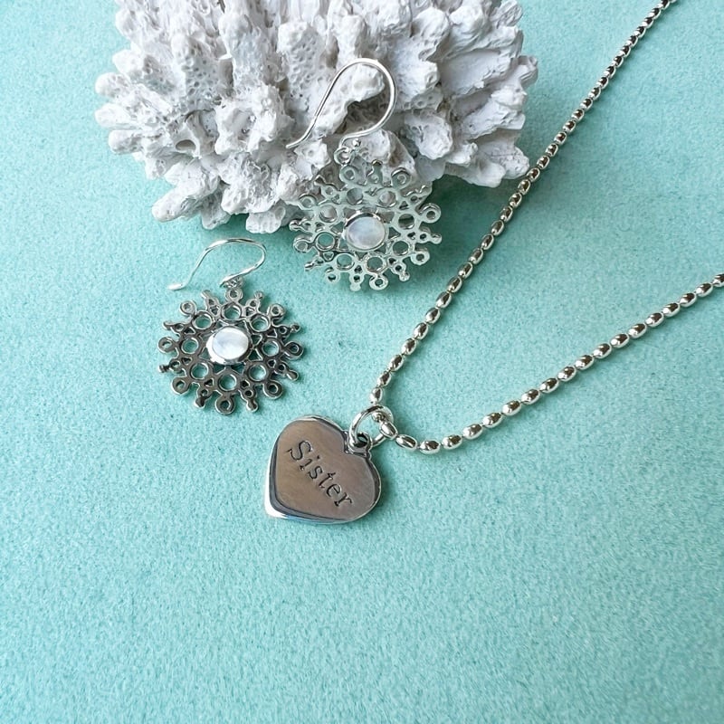 中央の白蝶貝はとても表情豊かです。さりげない輝きがシルバーの存在感を引き立てます。