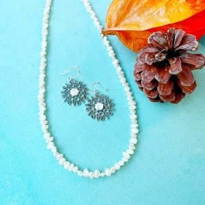 個性的なデザインをしたピアス!人気のある白蝶貝を使用しています。