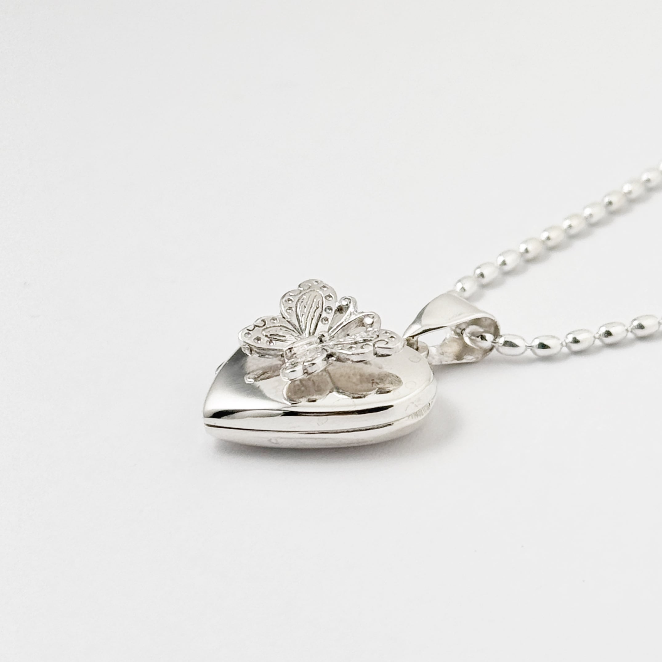 ハート前面に立体のバタフライがちょこんと乗っているハート型ロケットペンダントTOPです。