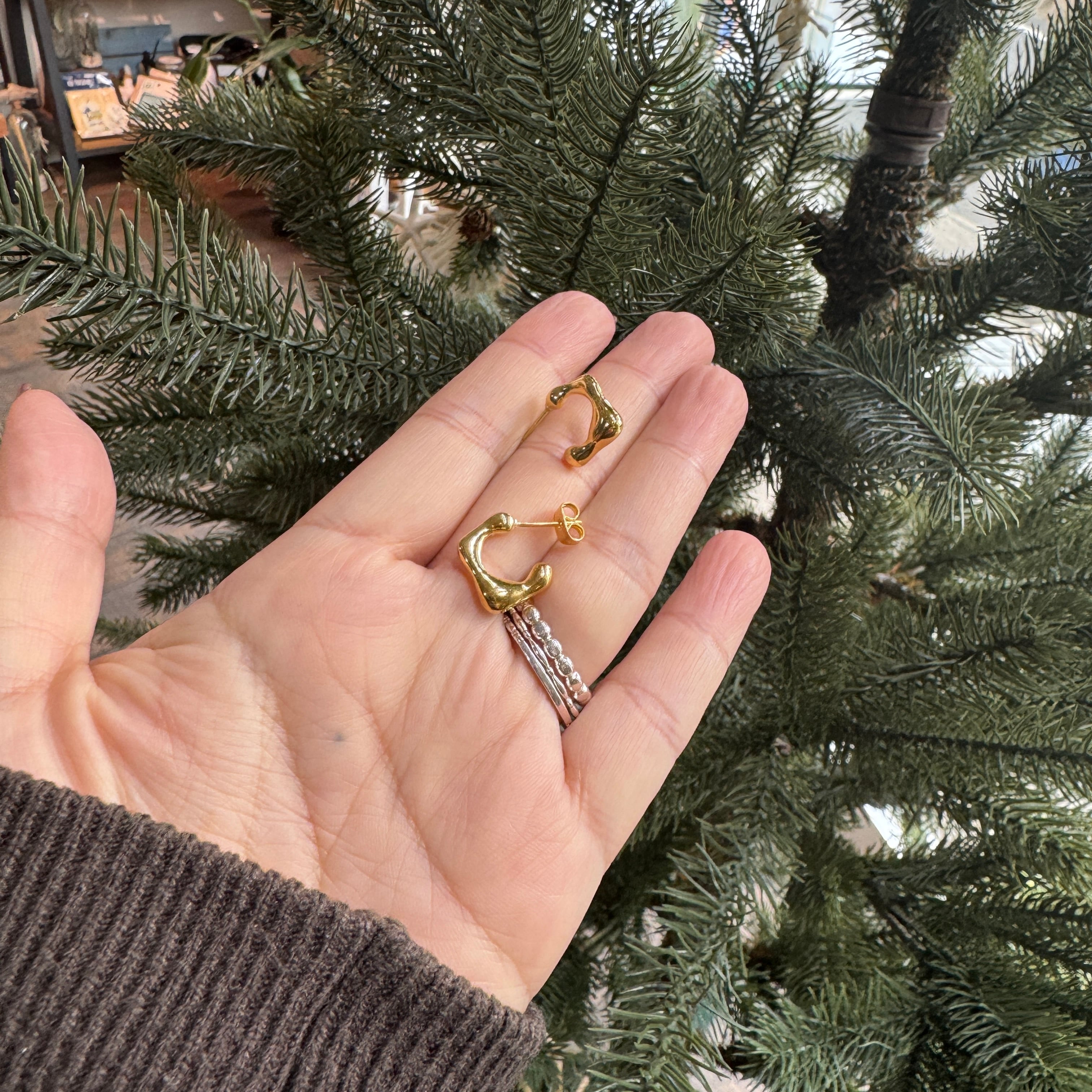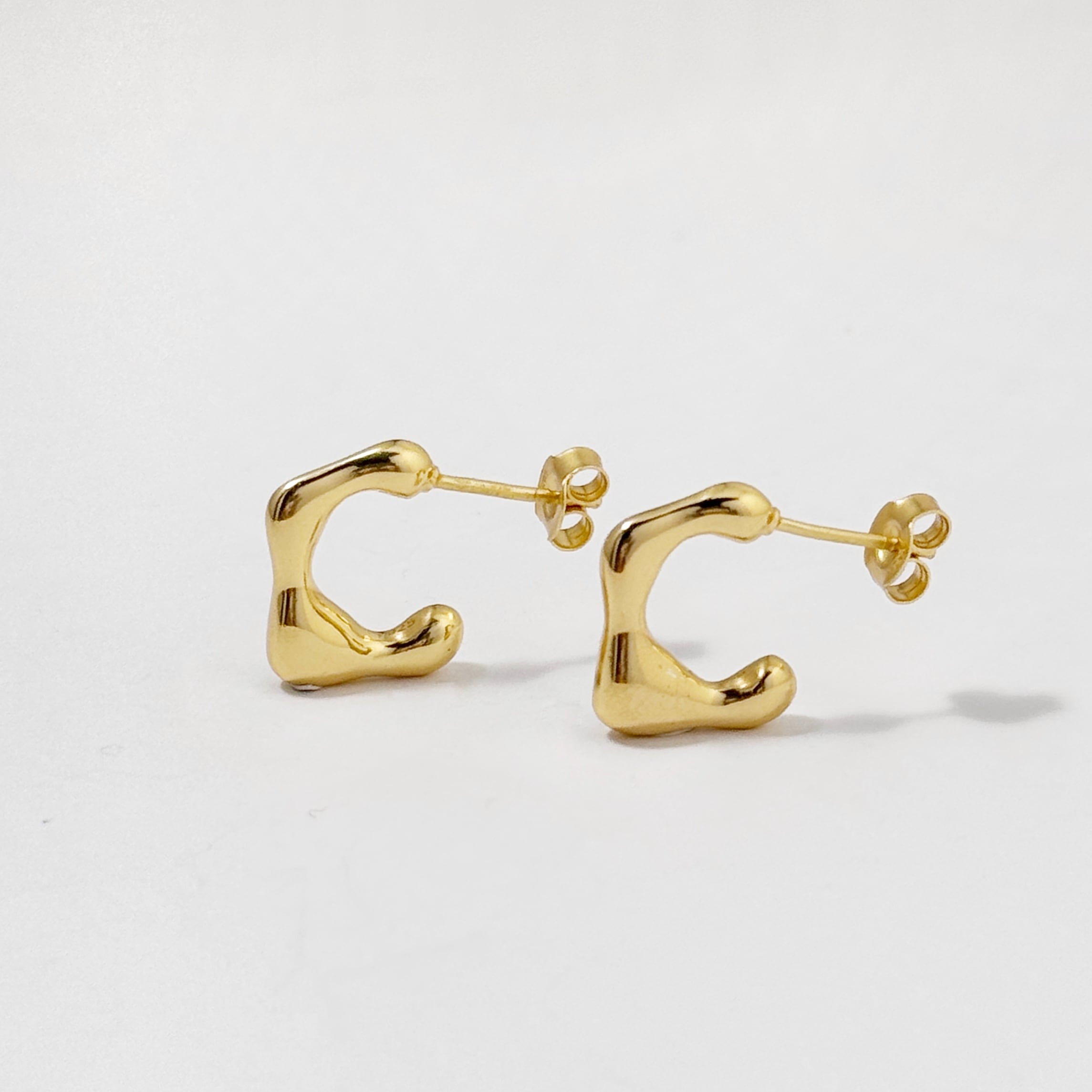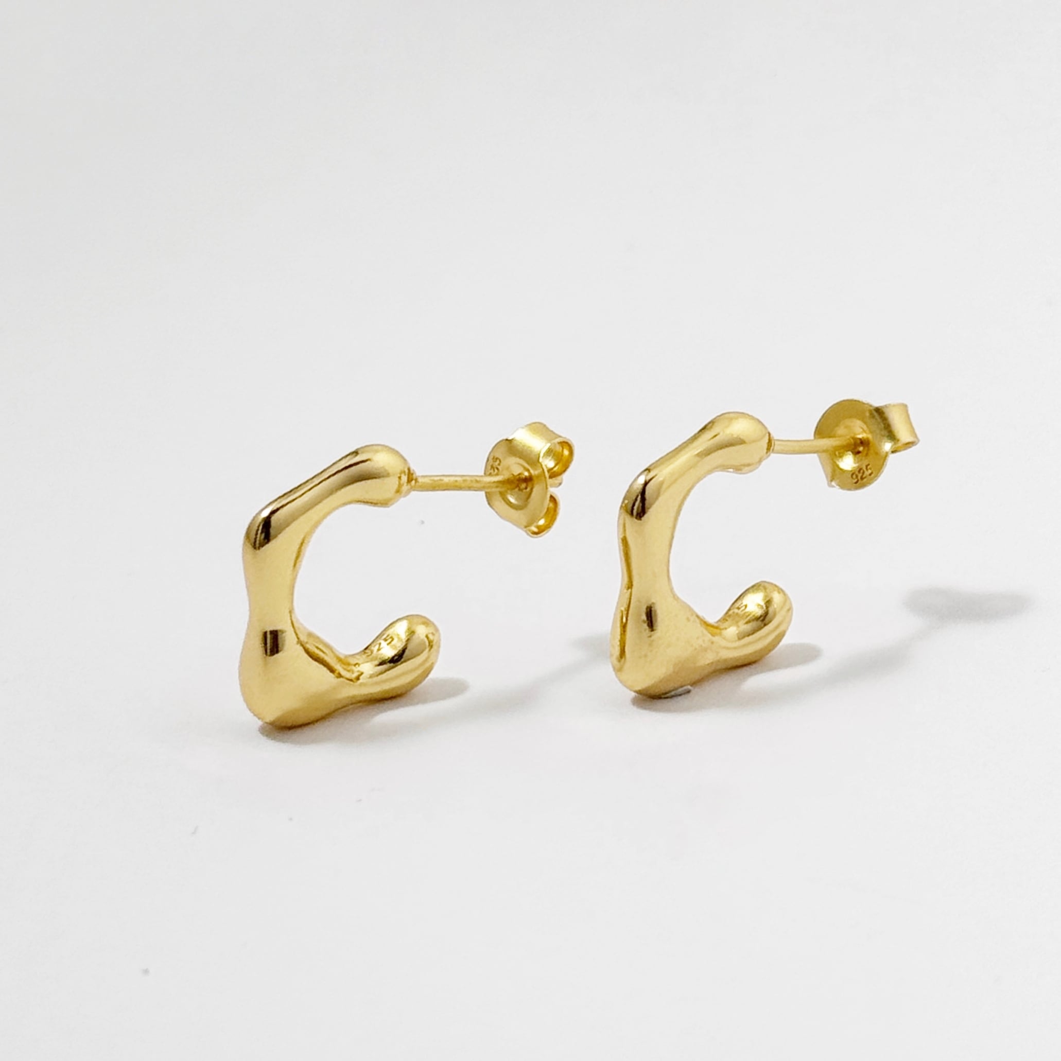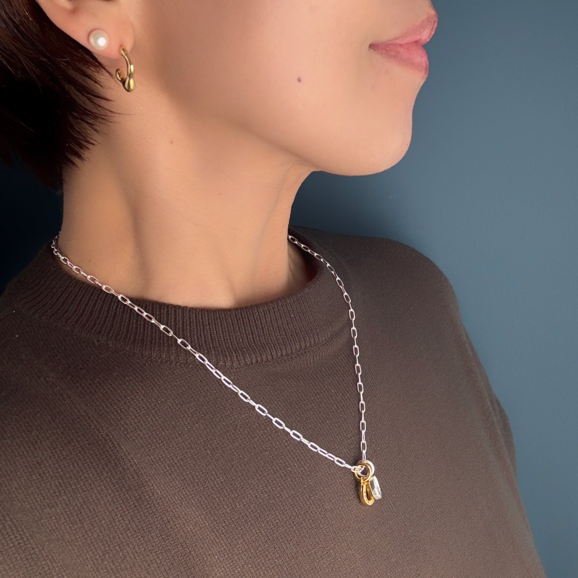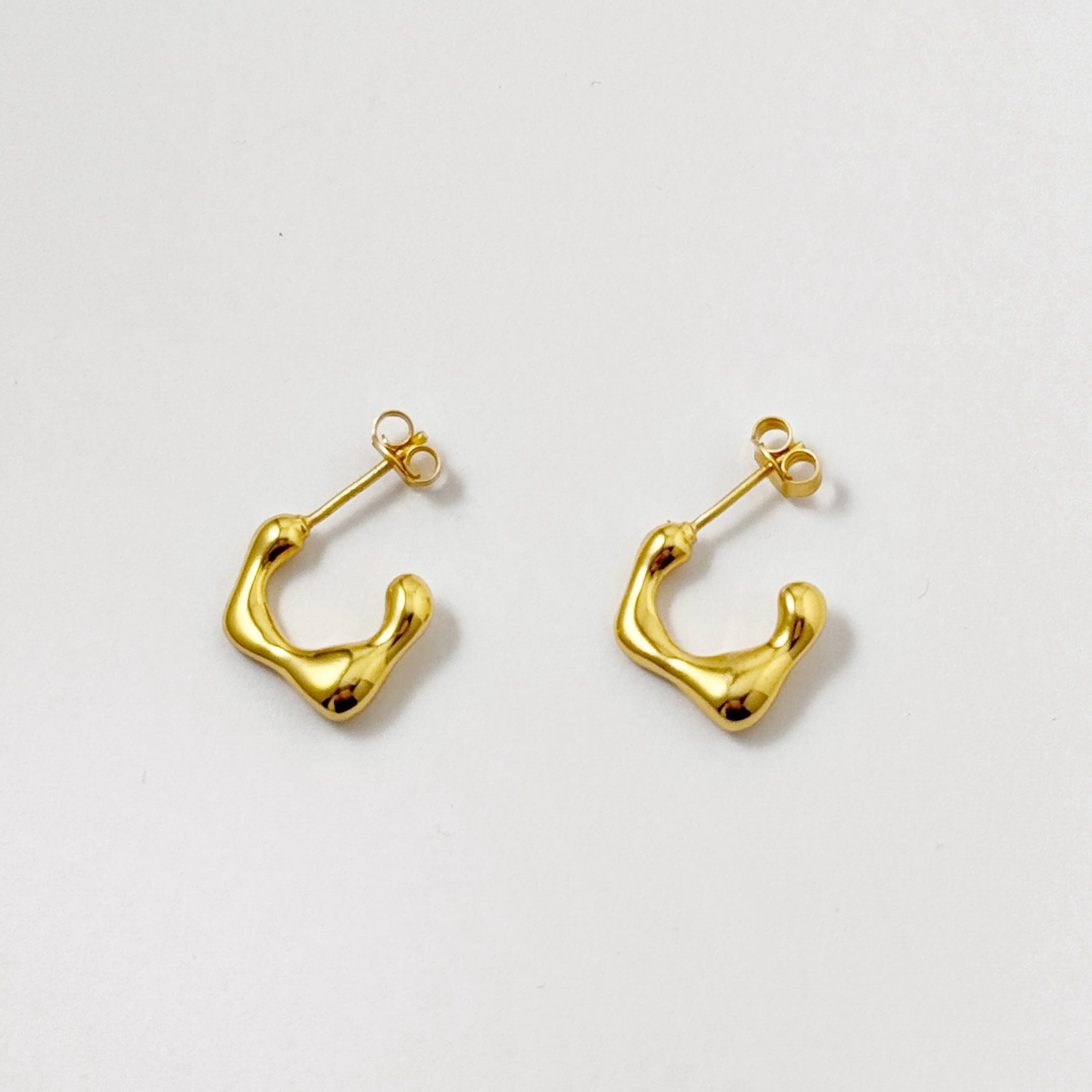 形としては変化球のある独特な形で、このサイズ感でシンプルかつ個性的なピアスです。