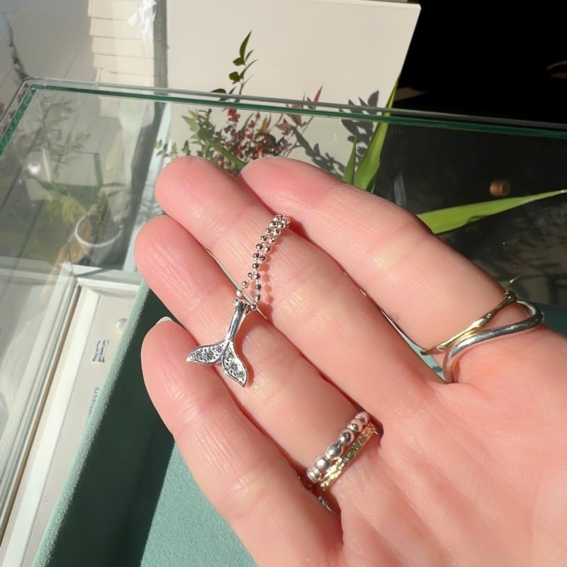 綺麗な曲線で造形されたホエールテイルに6粒のジルコニアが輝きます。