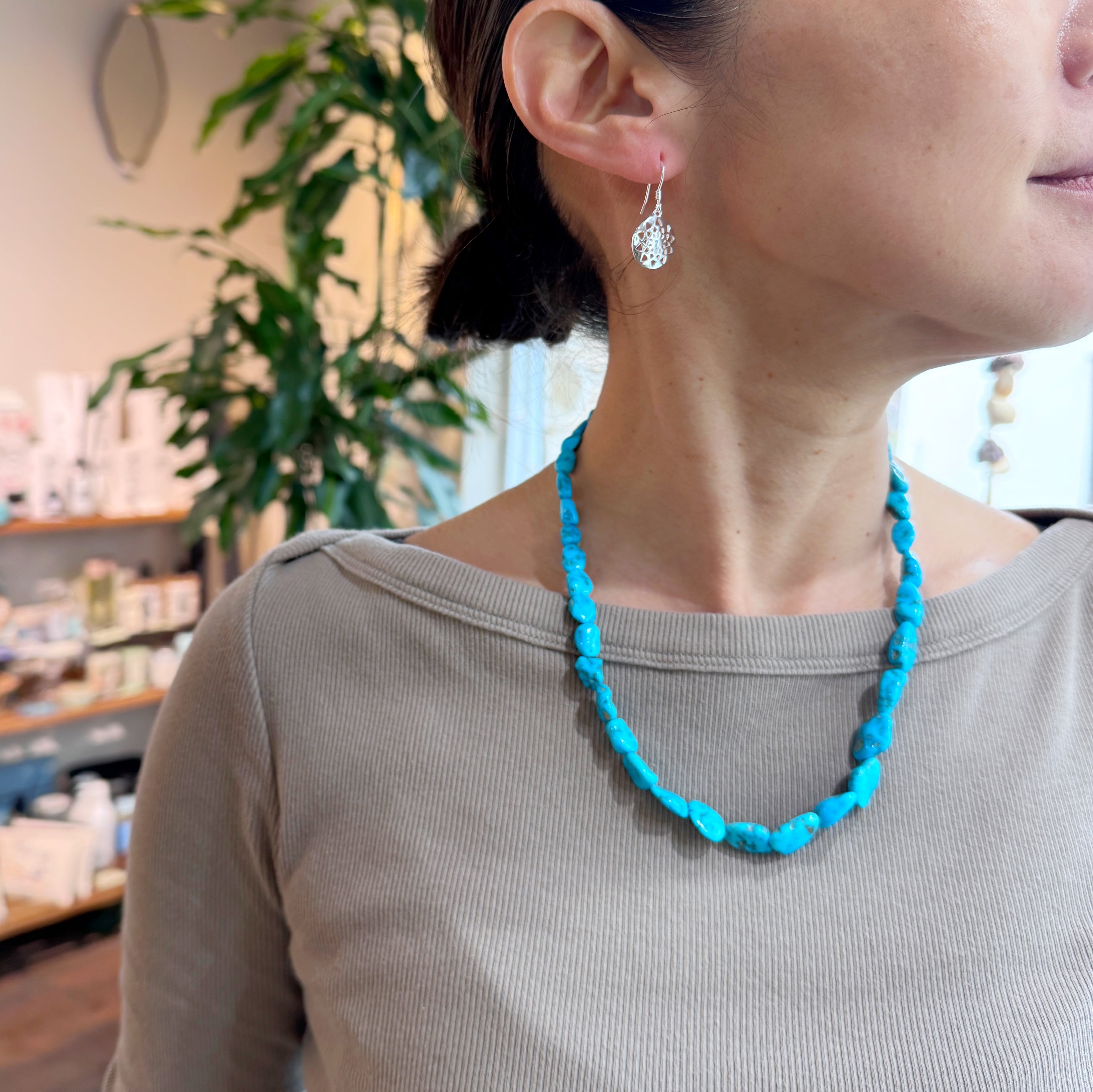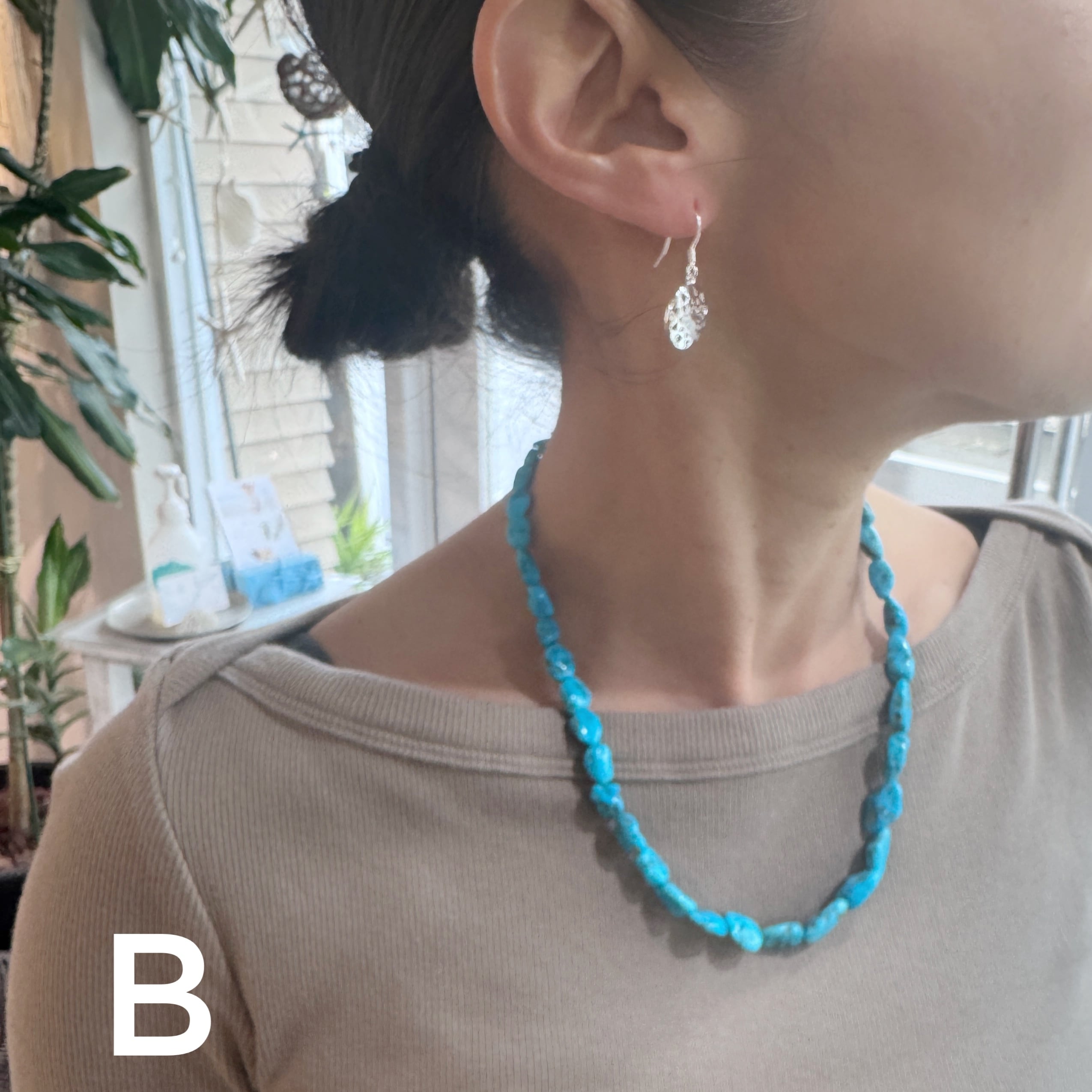 なりすぎない理由は程よい大きさのナゲットターコイズ。